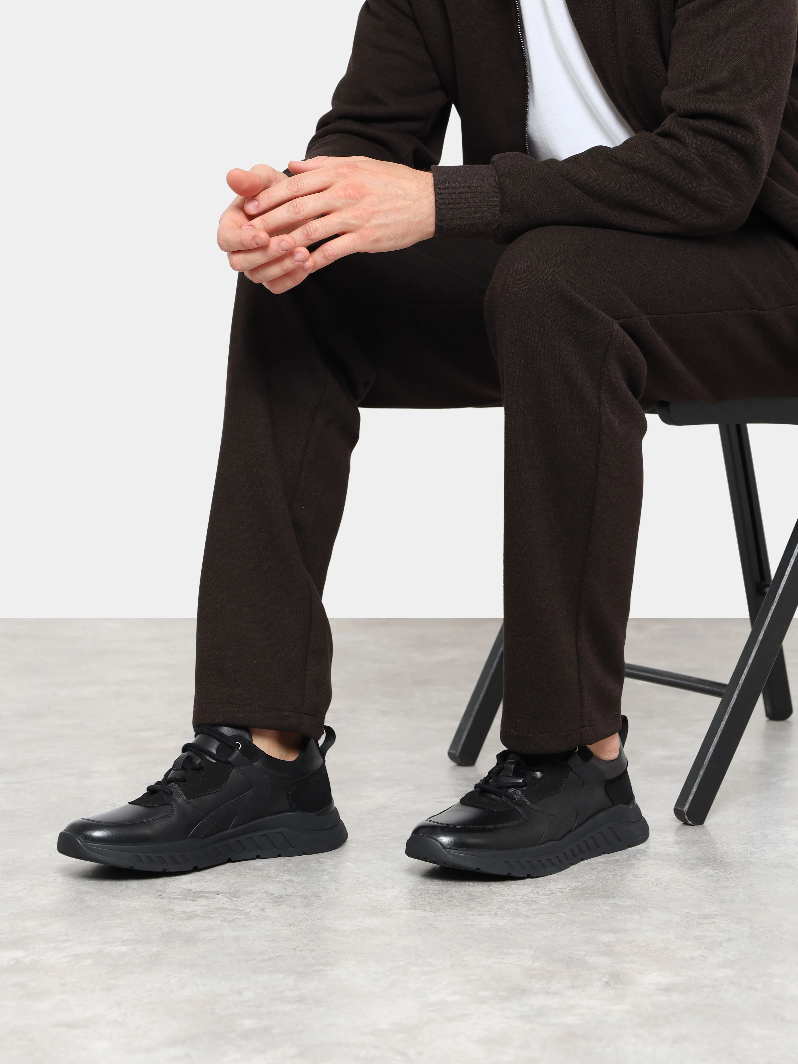 Кроссовки мужские демисезонные, цвет черный, натуральная кожа