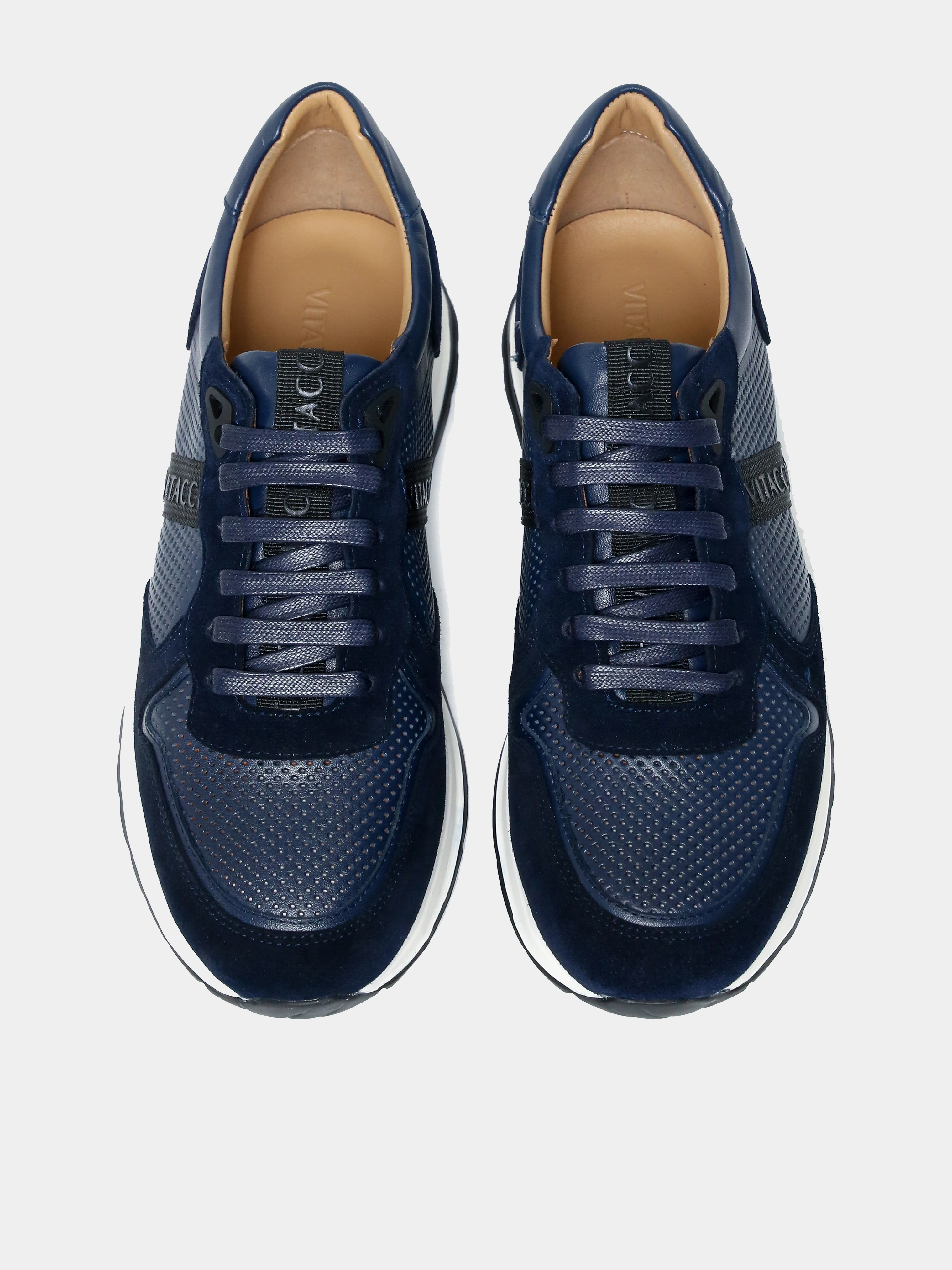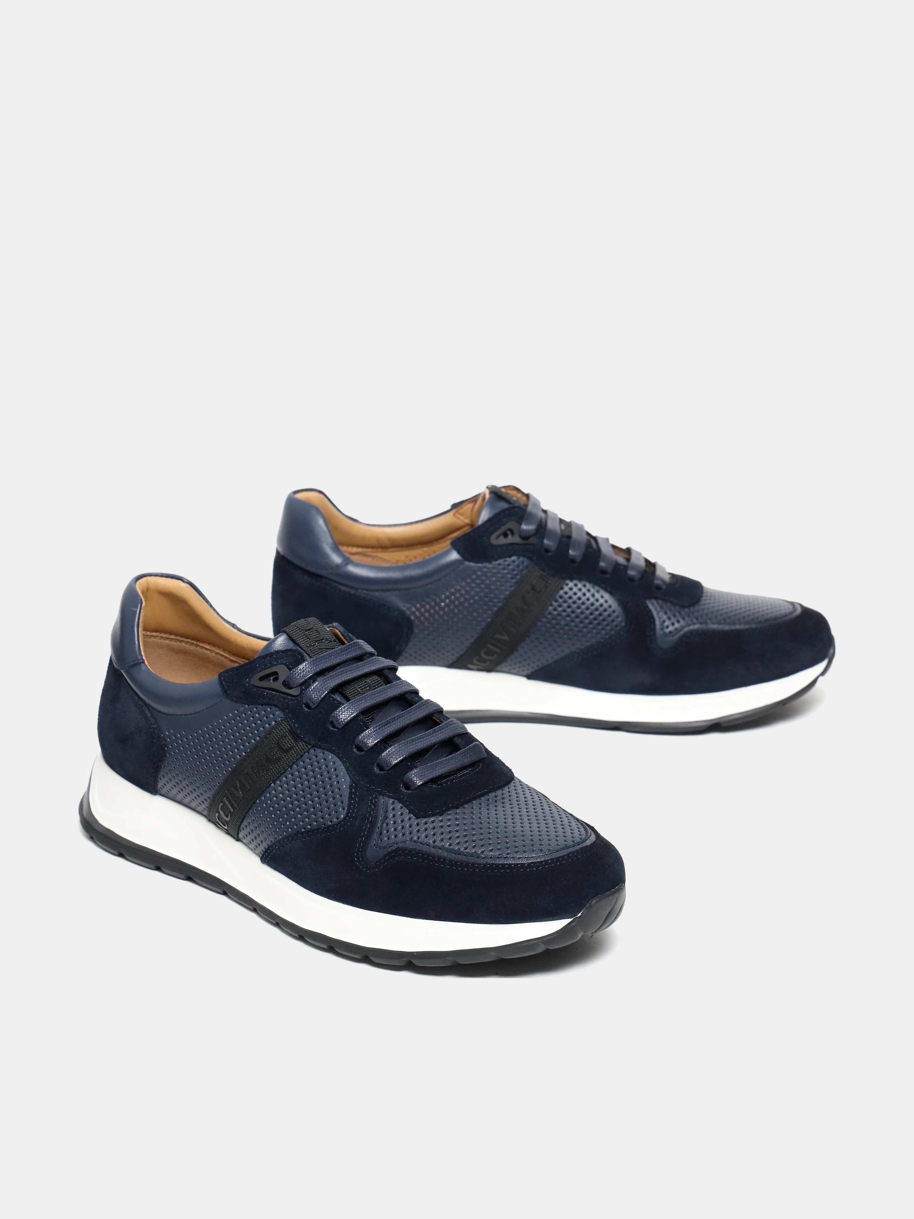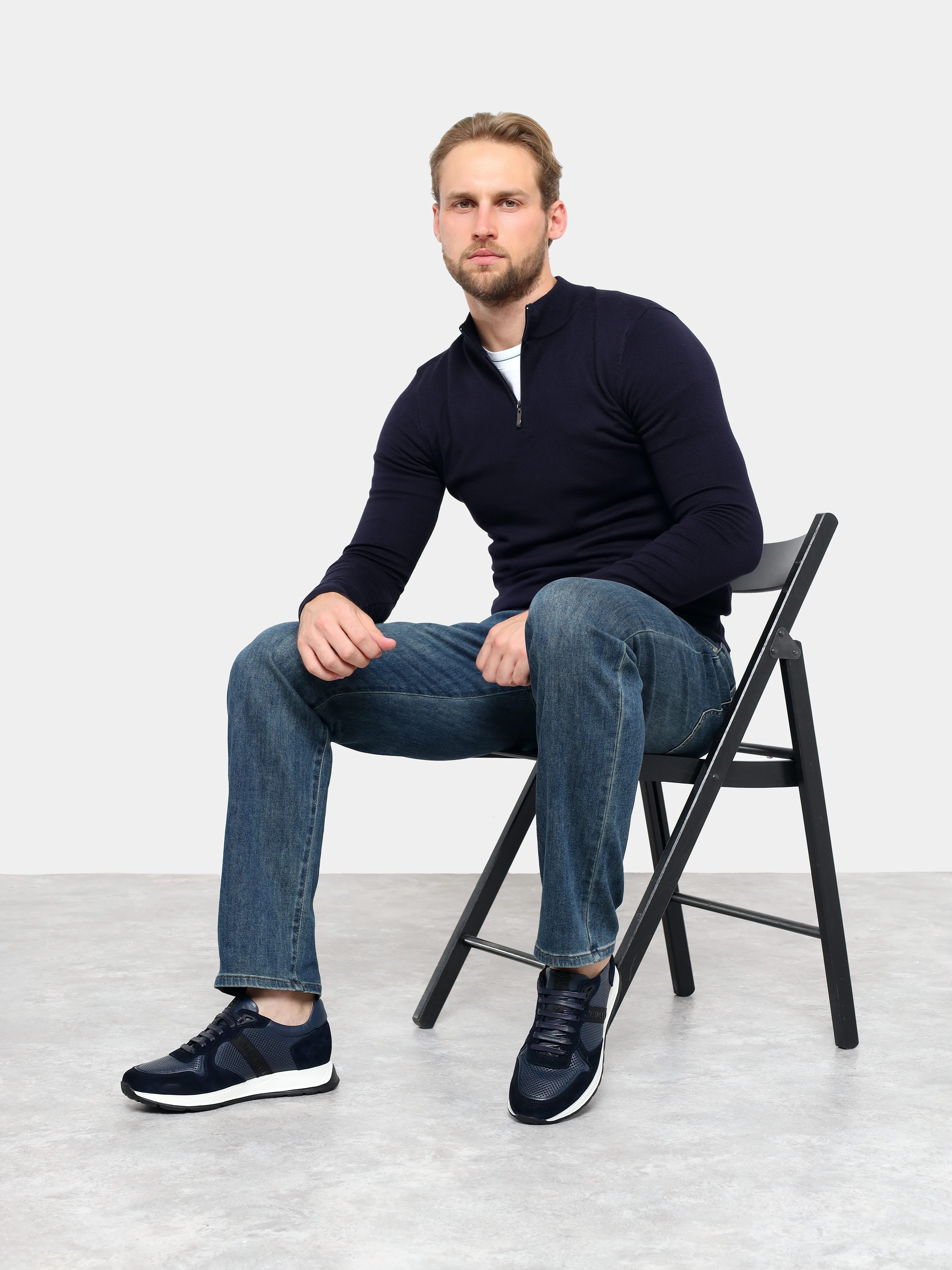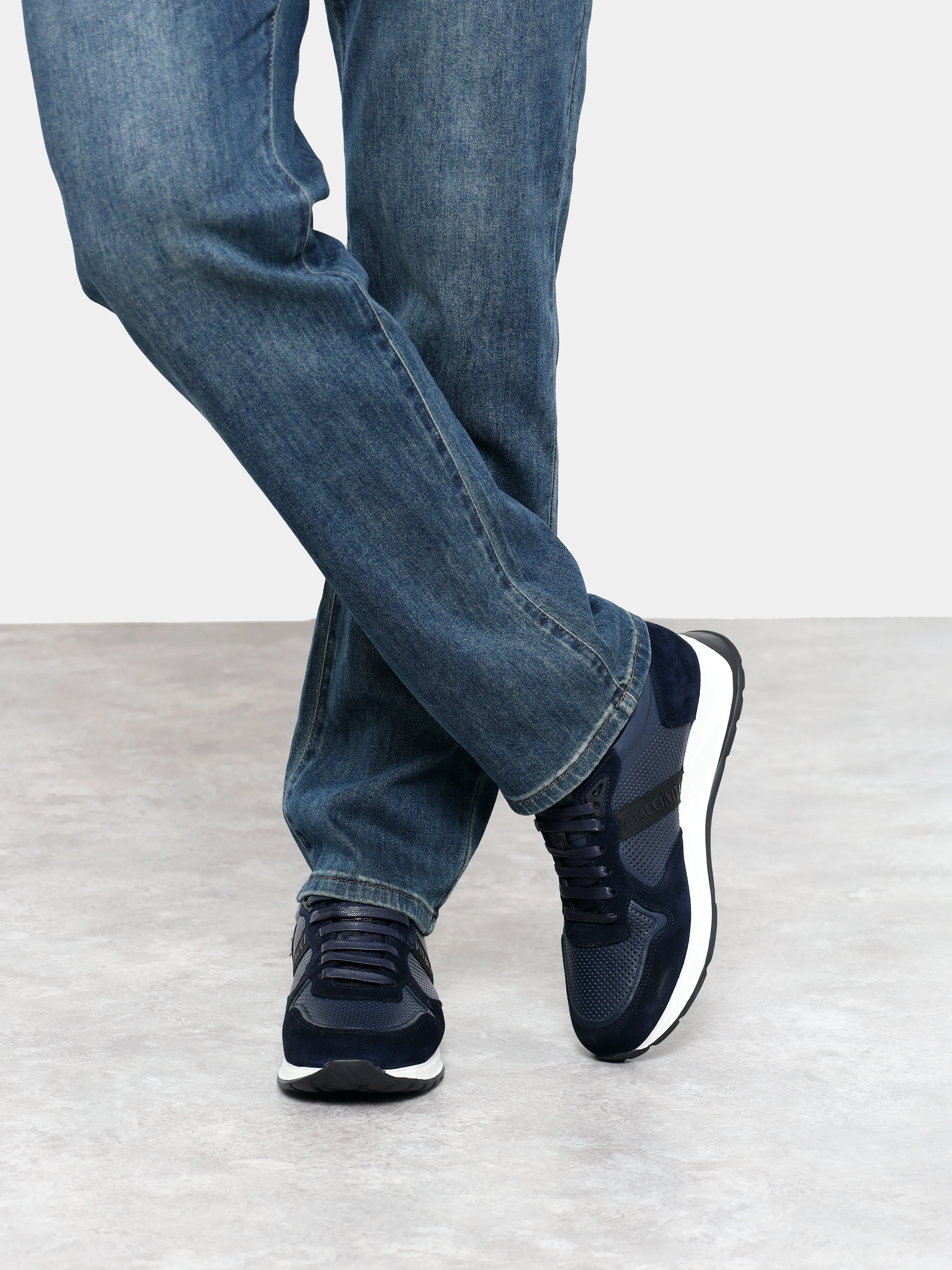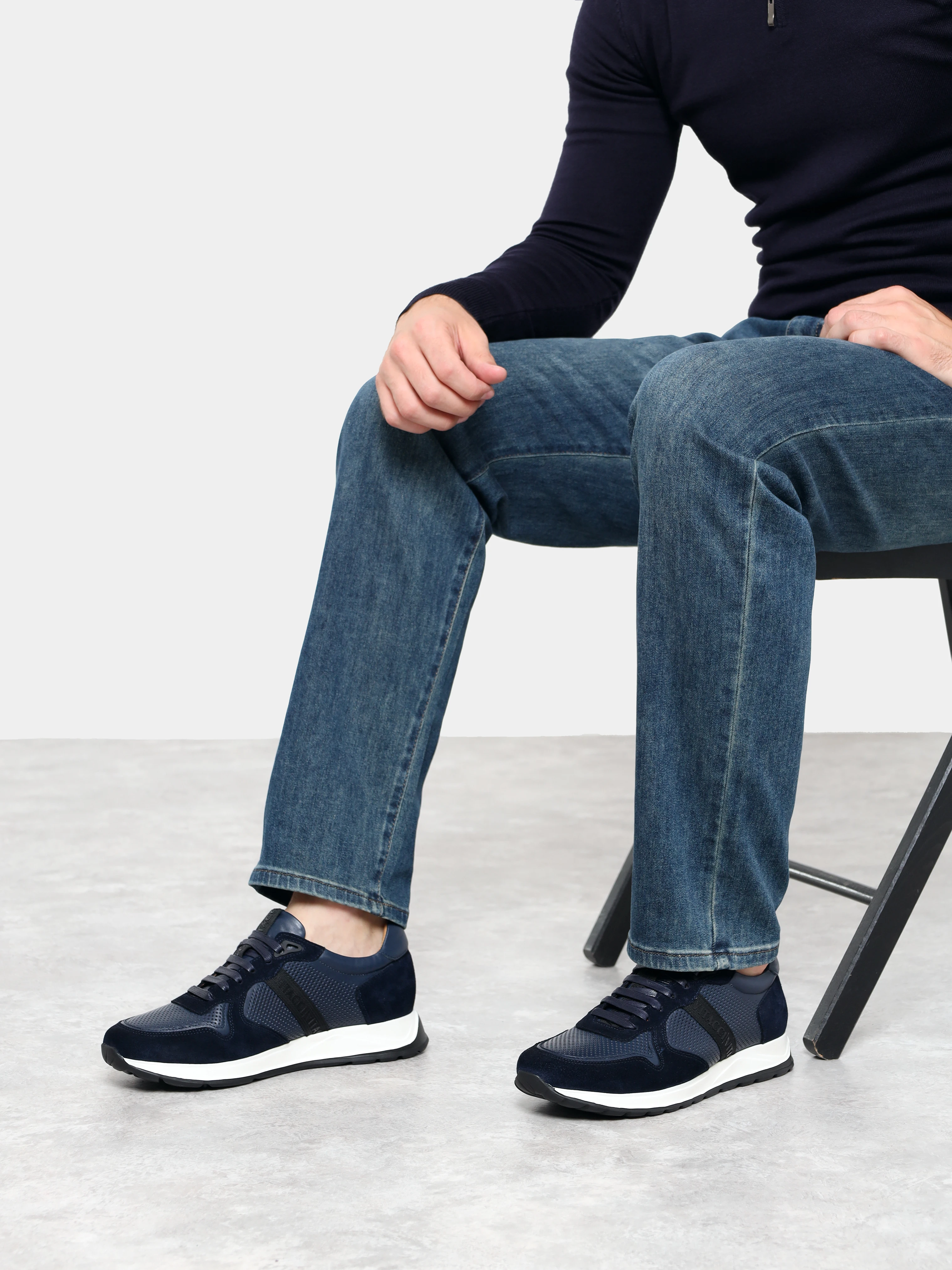 Кроссовки мужские демисезонные, цвет синий, натуральная кожа/натуральный спилок