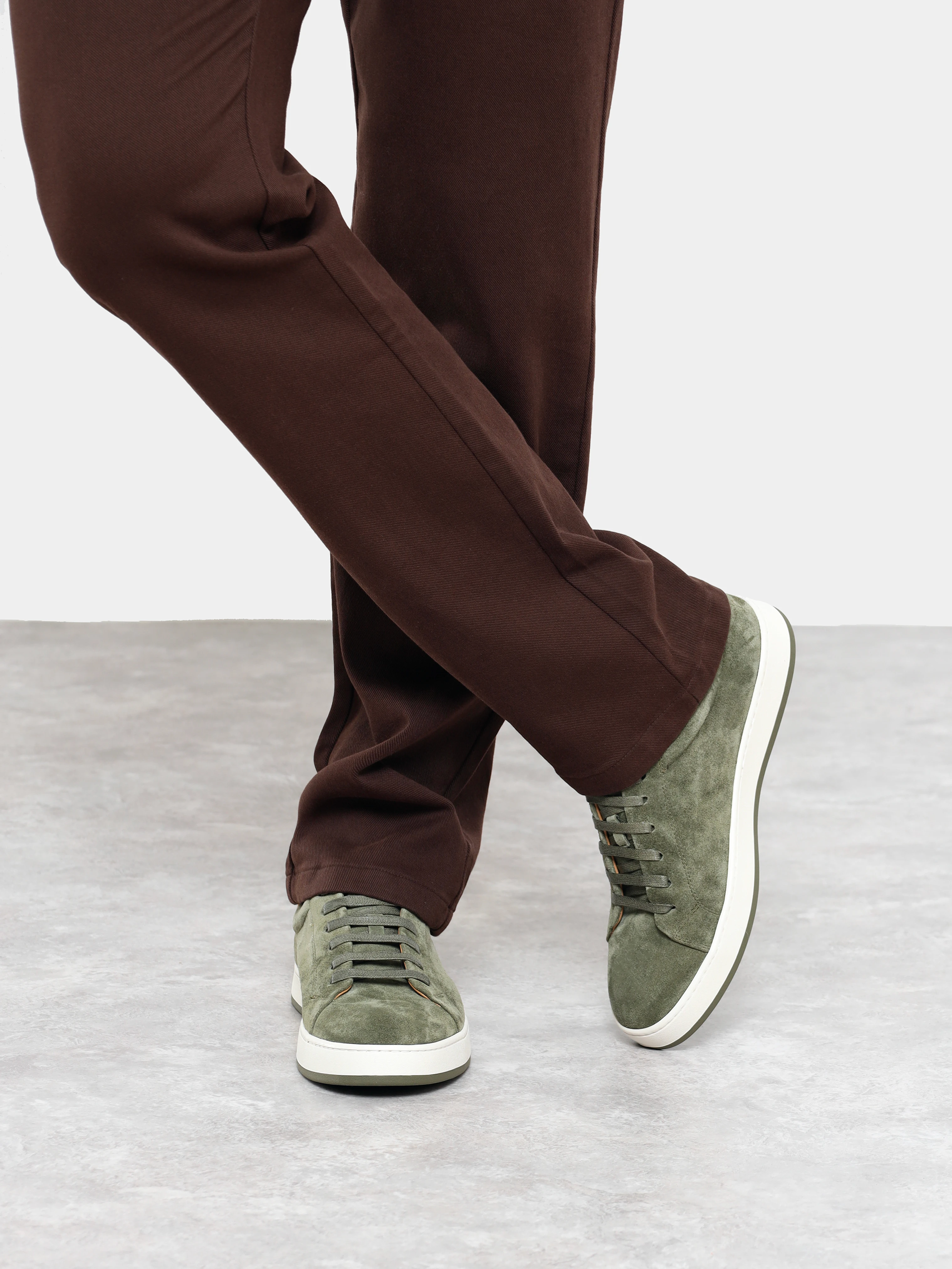 Кеды мужские демисезонные, цвет хаки, натуральный спилок/натуральная кожа