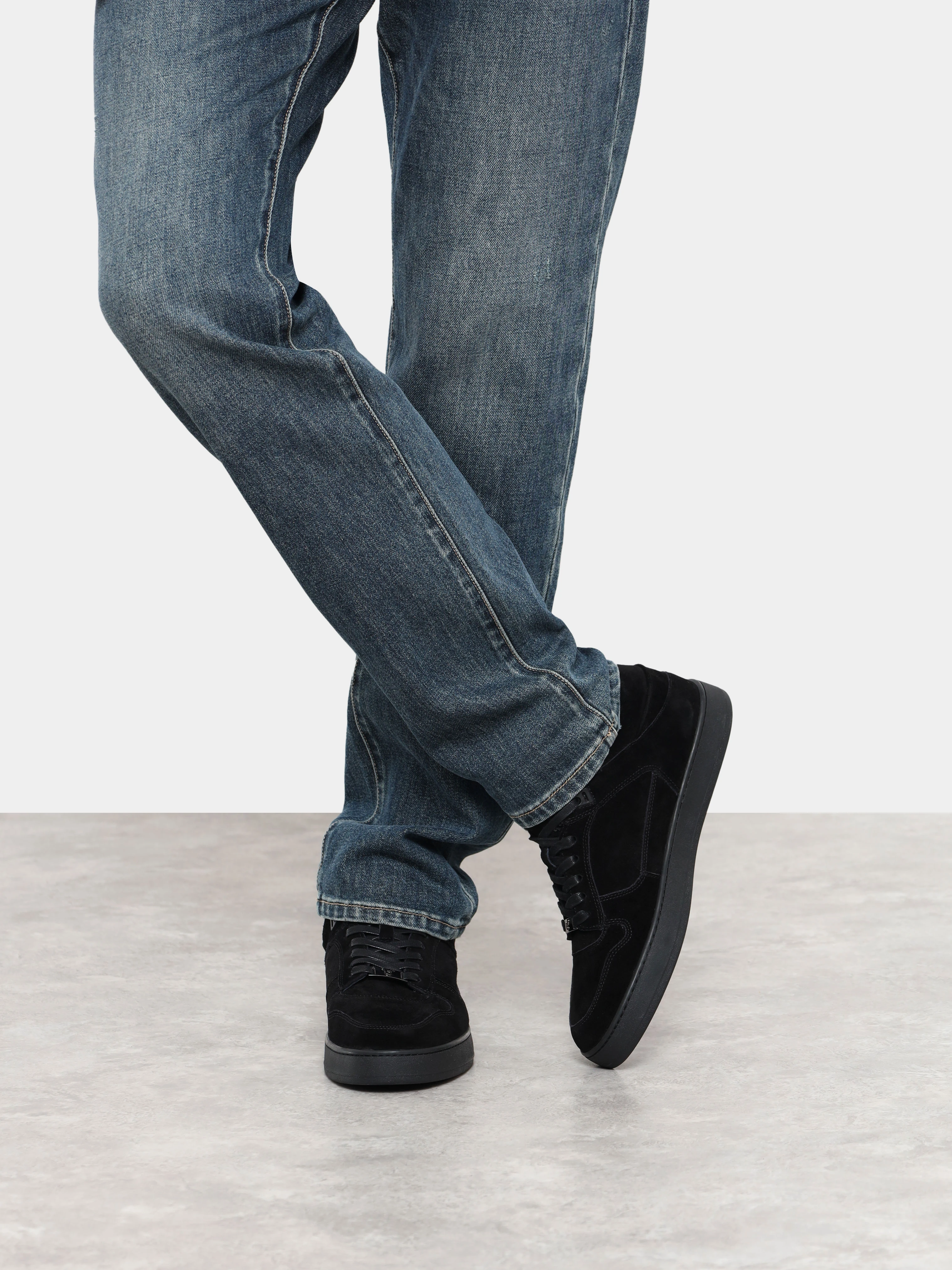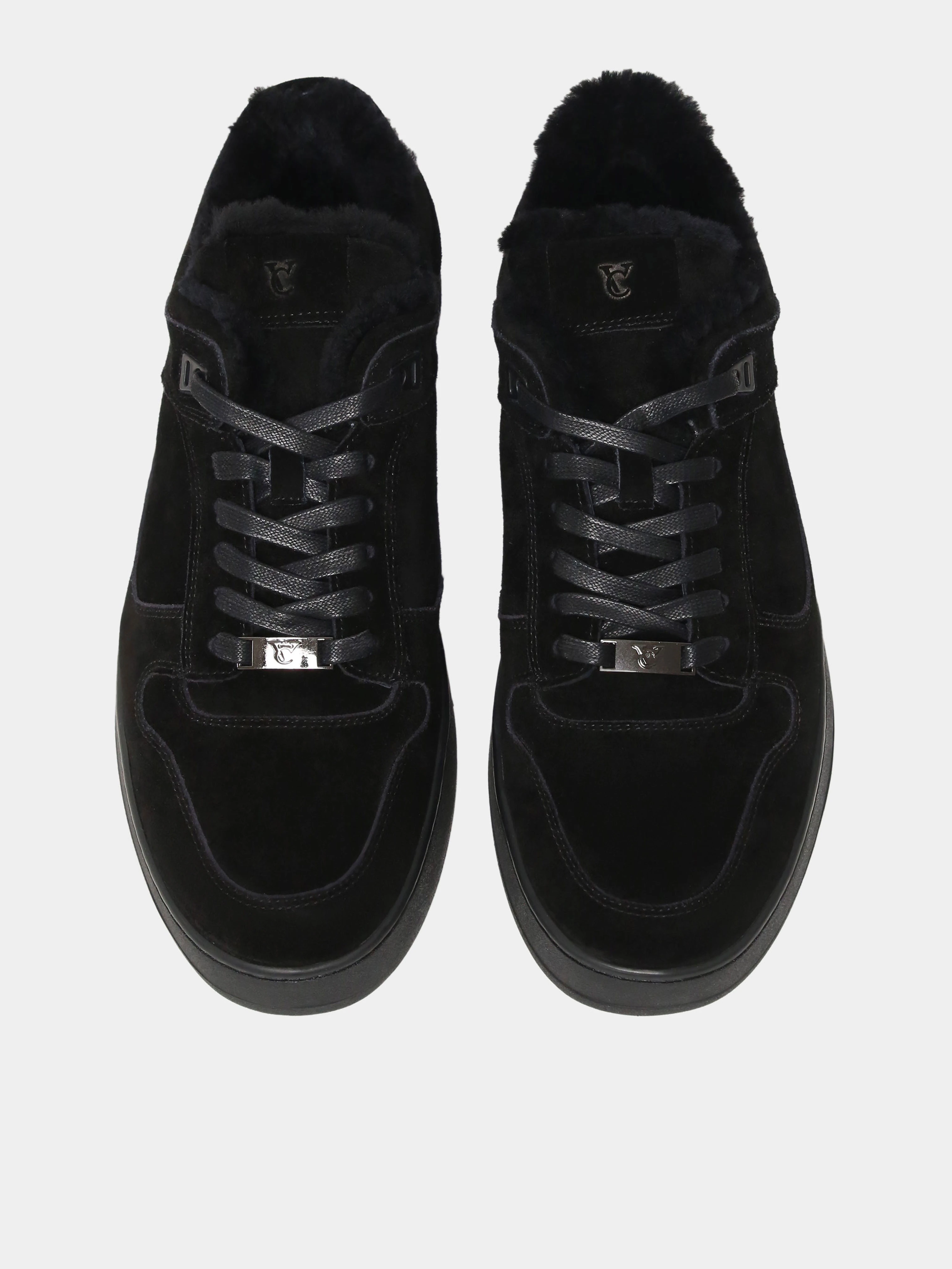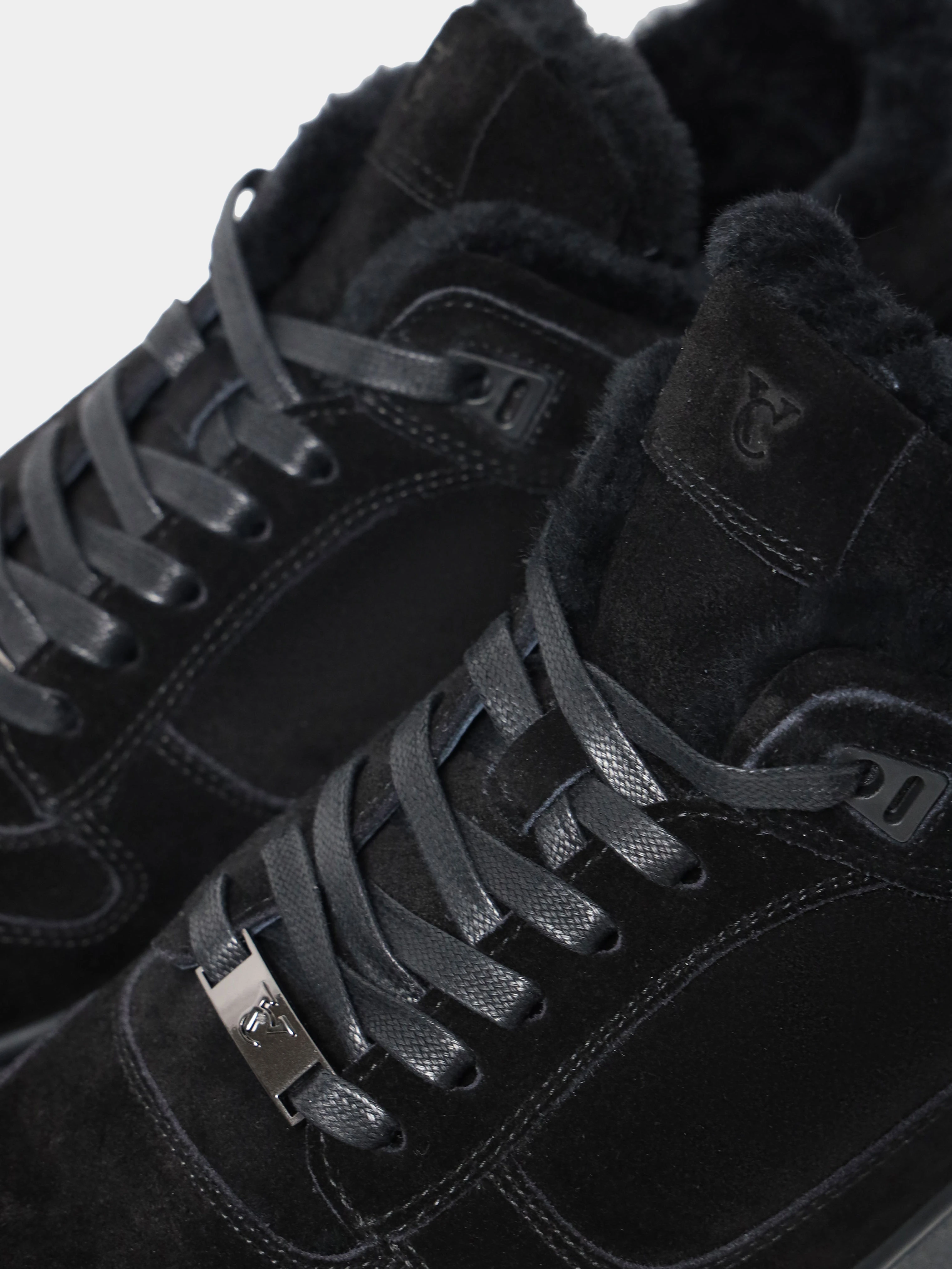 Кеды мужские зимние, цвет черный, натуральный спилок