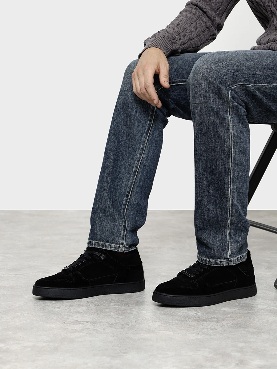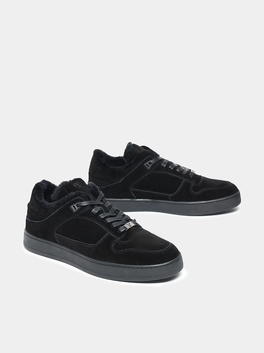 Кеды мужские зимние, цвет черный, натуральный спилок