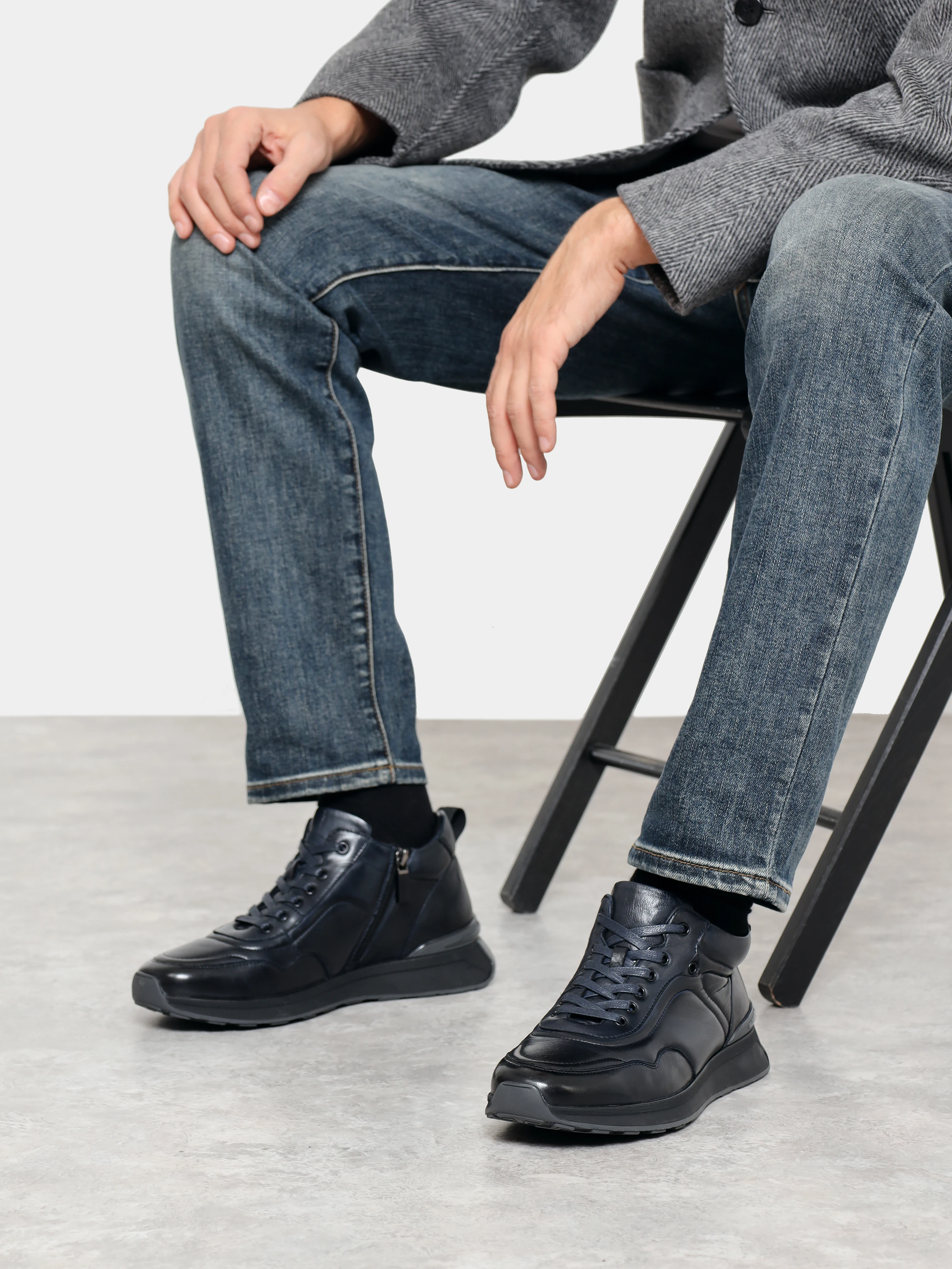 Кроссовки мужские демисезонные, цвет синий, натуральная кожа