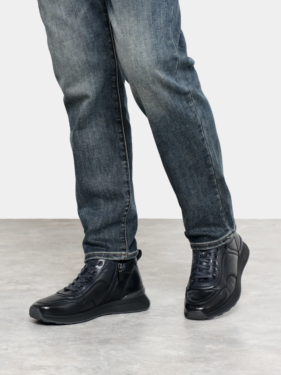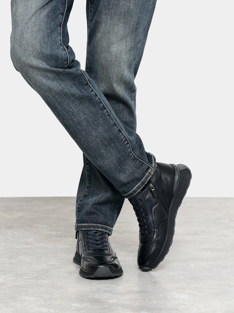 Кроссовки мужские зимние, цвет синий, натуральная кожа