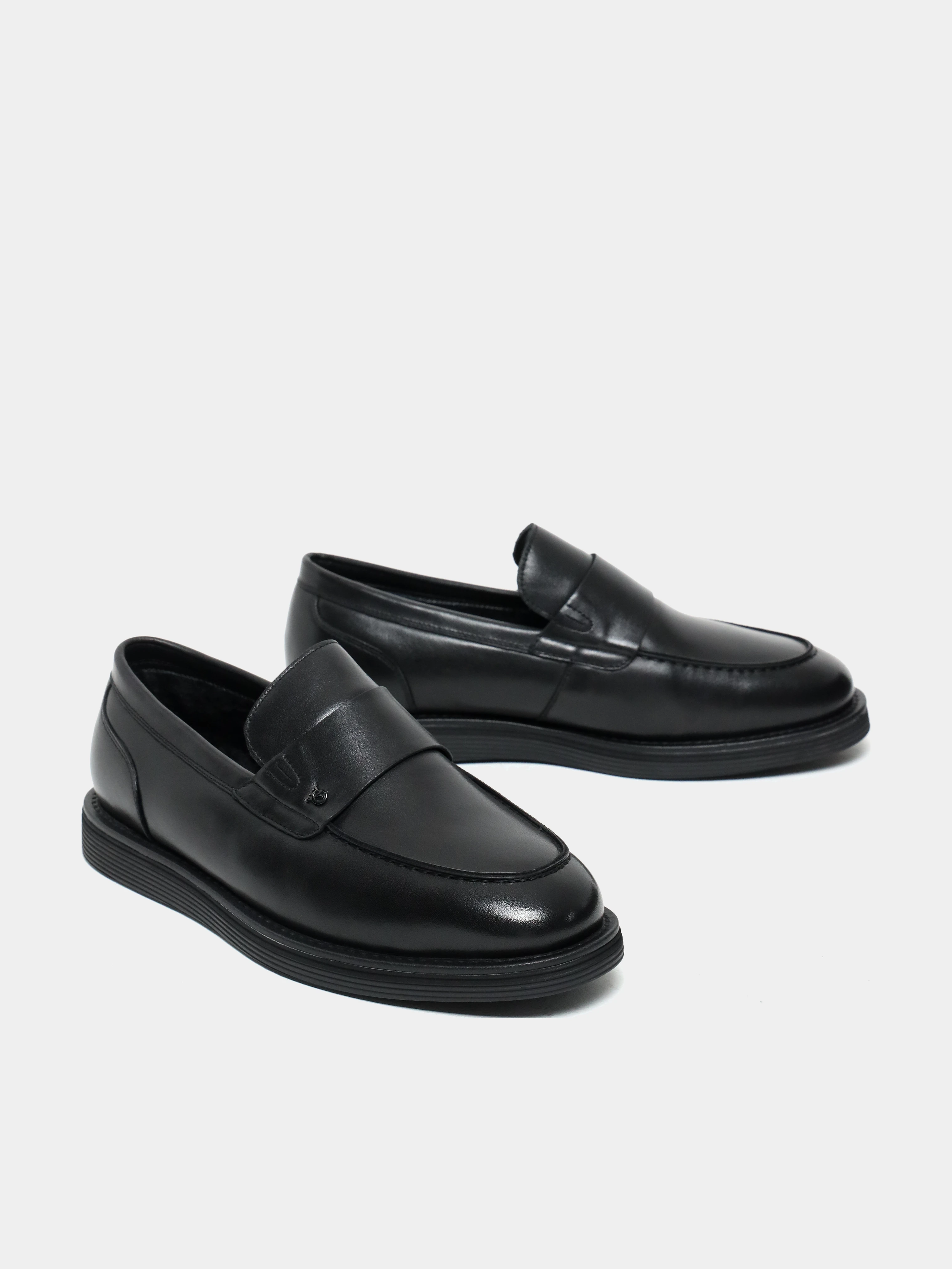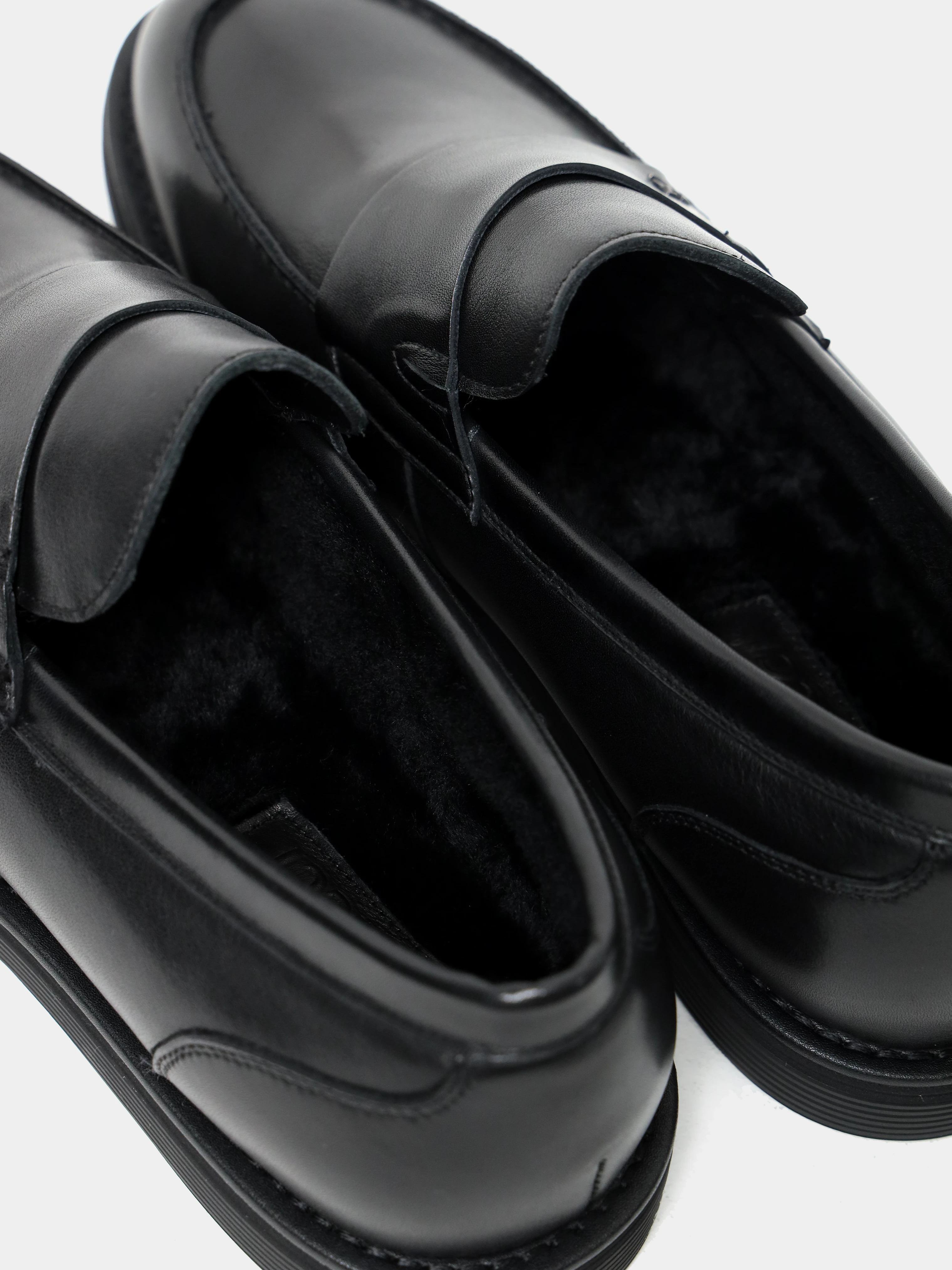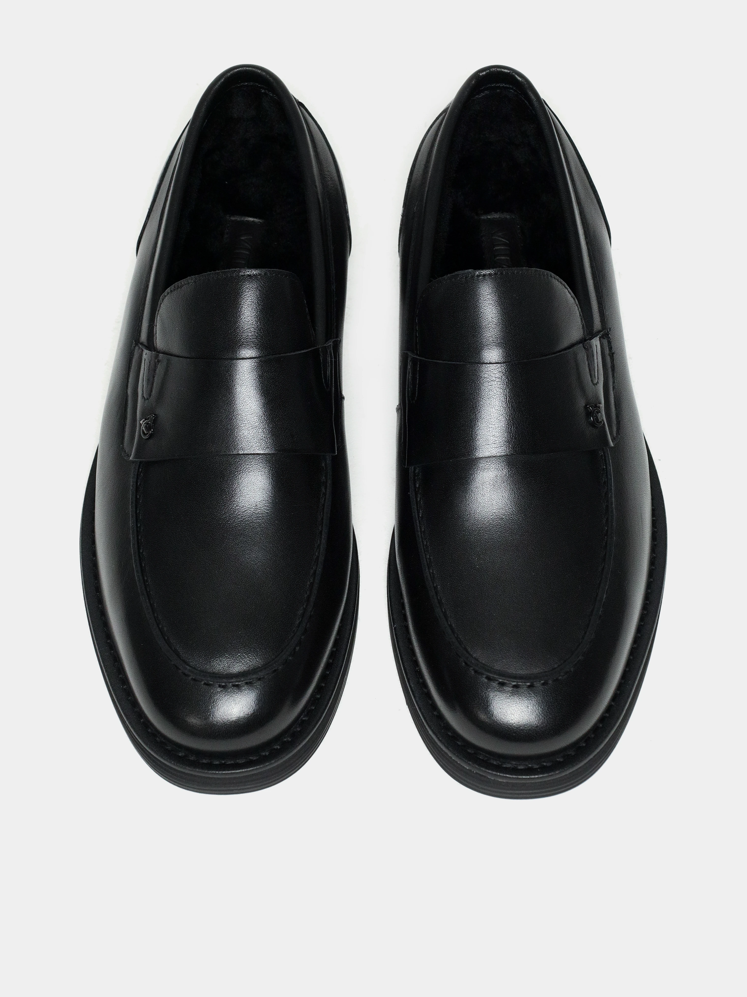 Лоферы мужские зимние, цвет черный, натуральная кожа