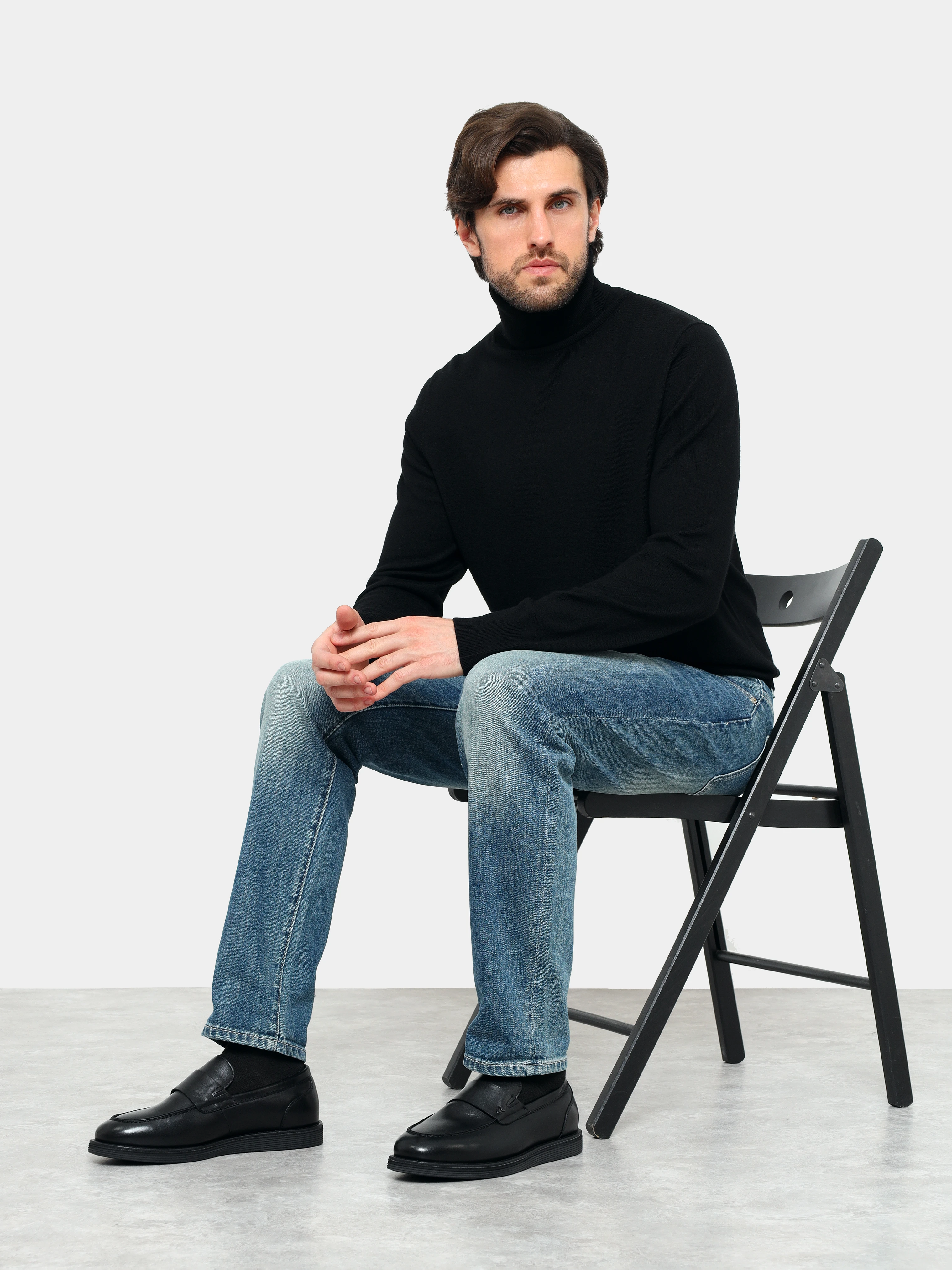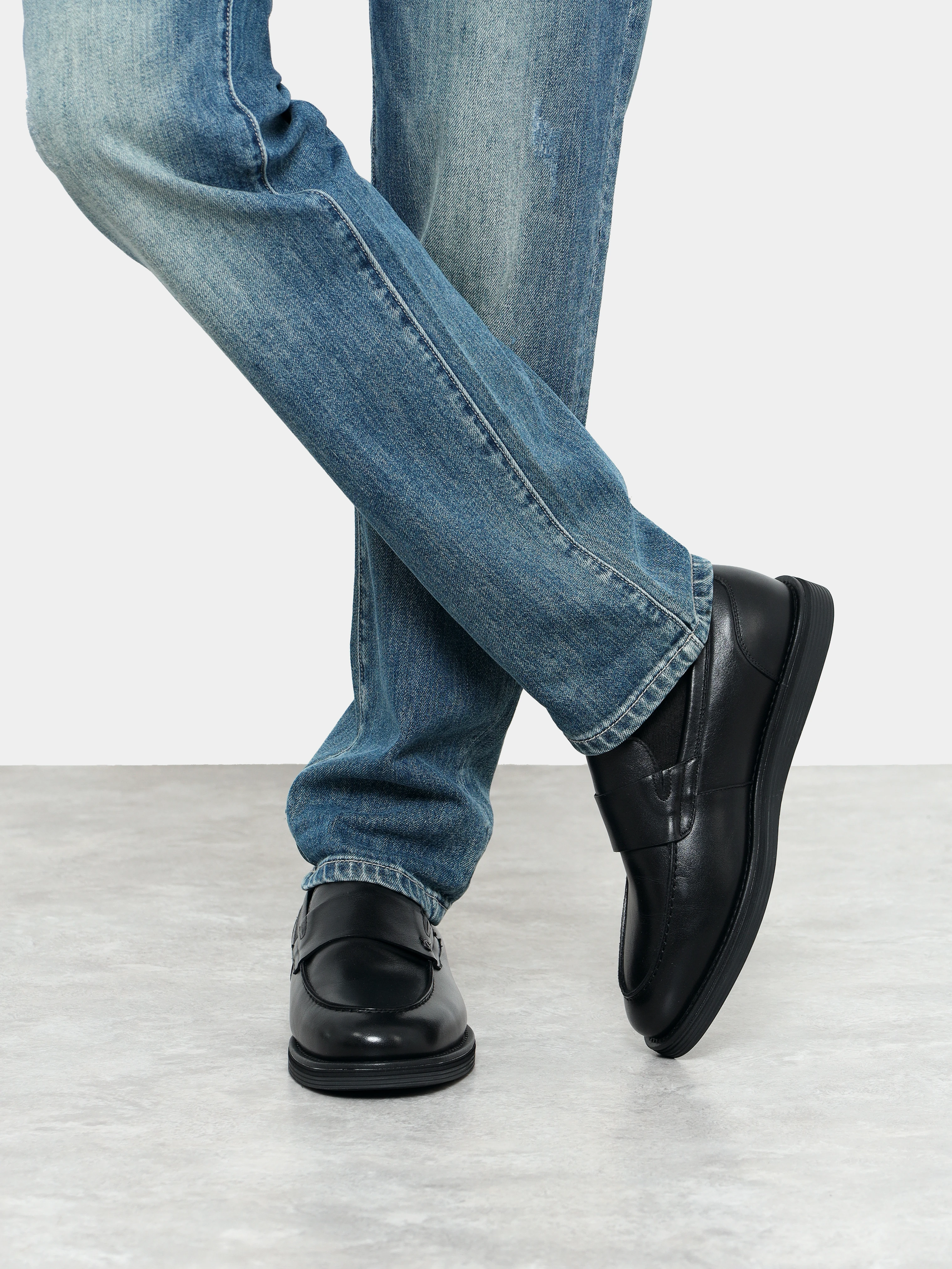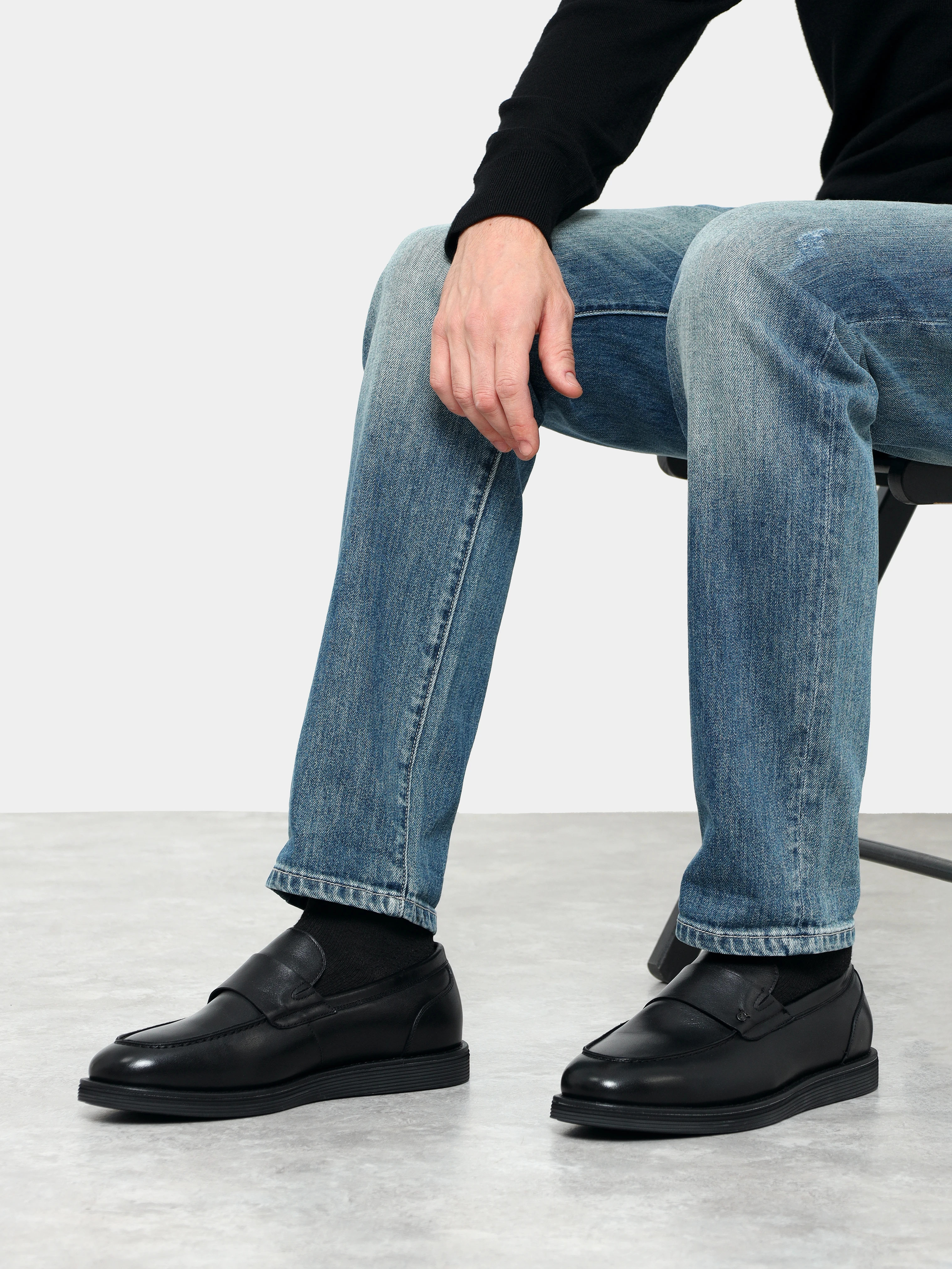 Лоферы мужские зимние, цвет черный, натуральная кожа