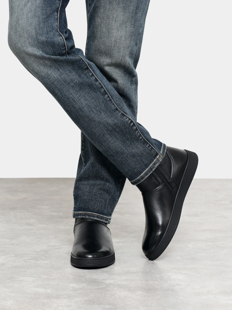 Полусапоги мужские зимние, цвет черный, натуральная кожа