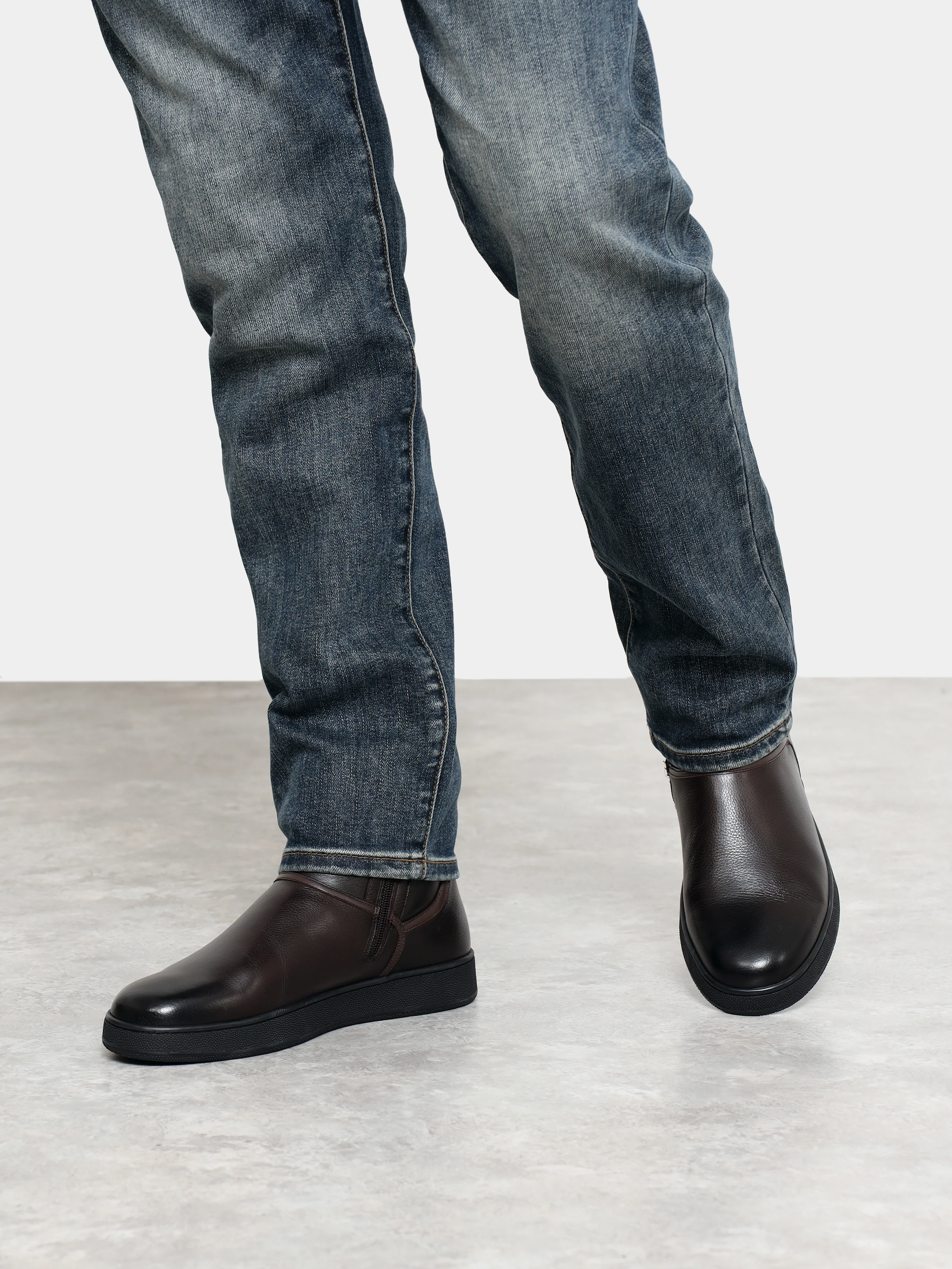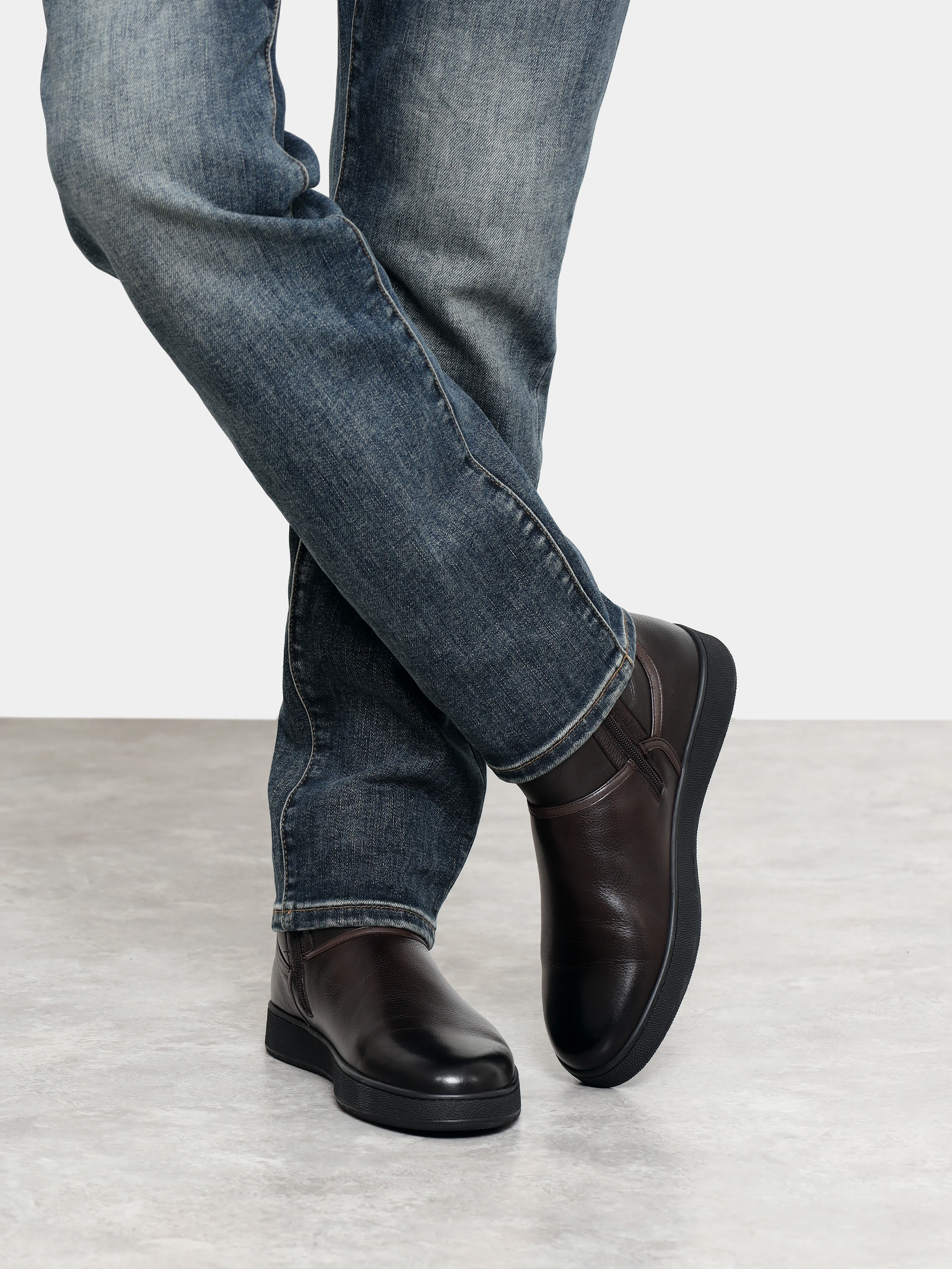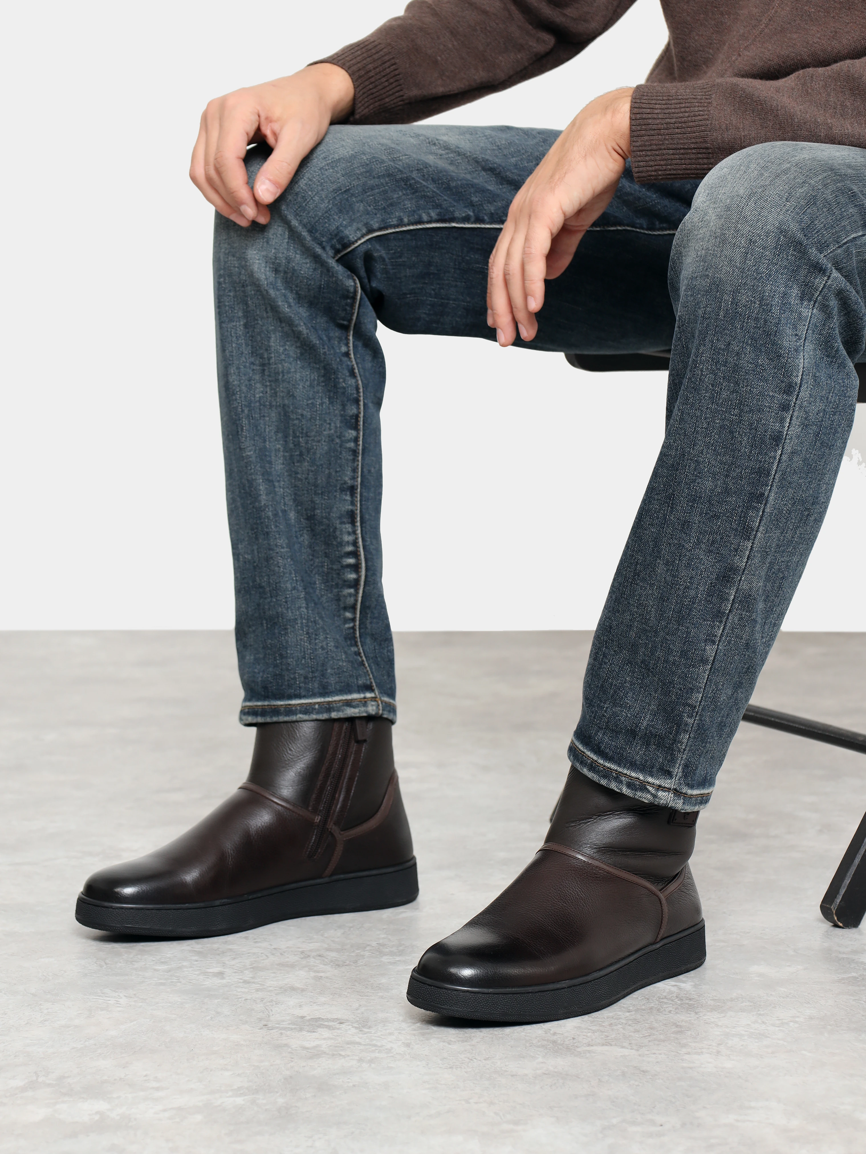 Полусапоги мужские зимние, цвет коричневый, натуральная кожа