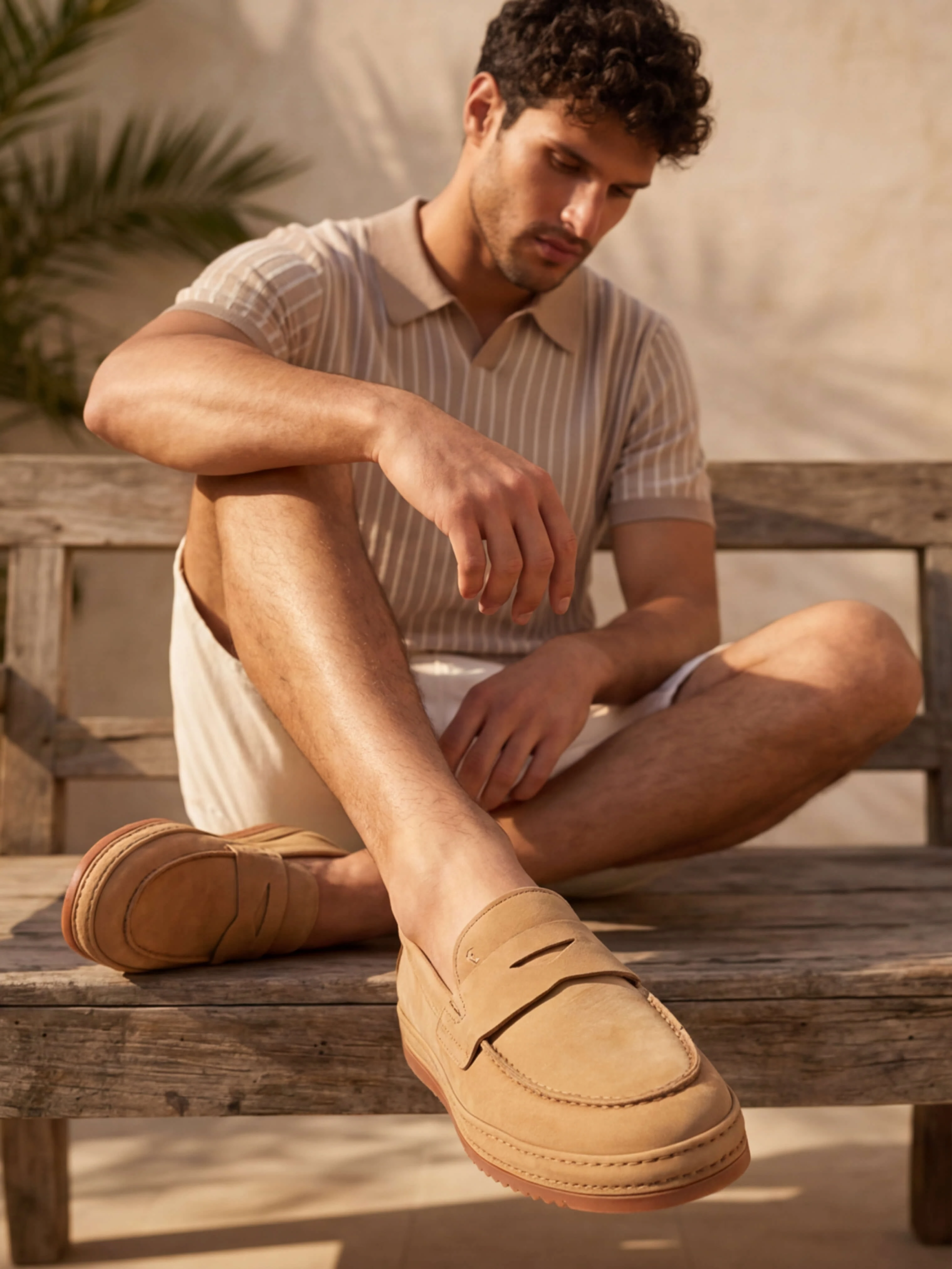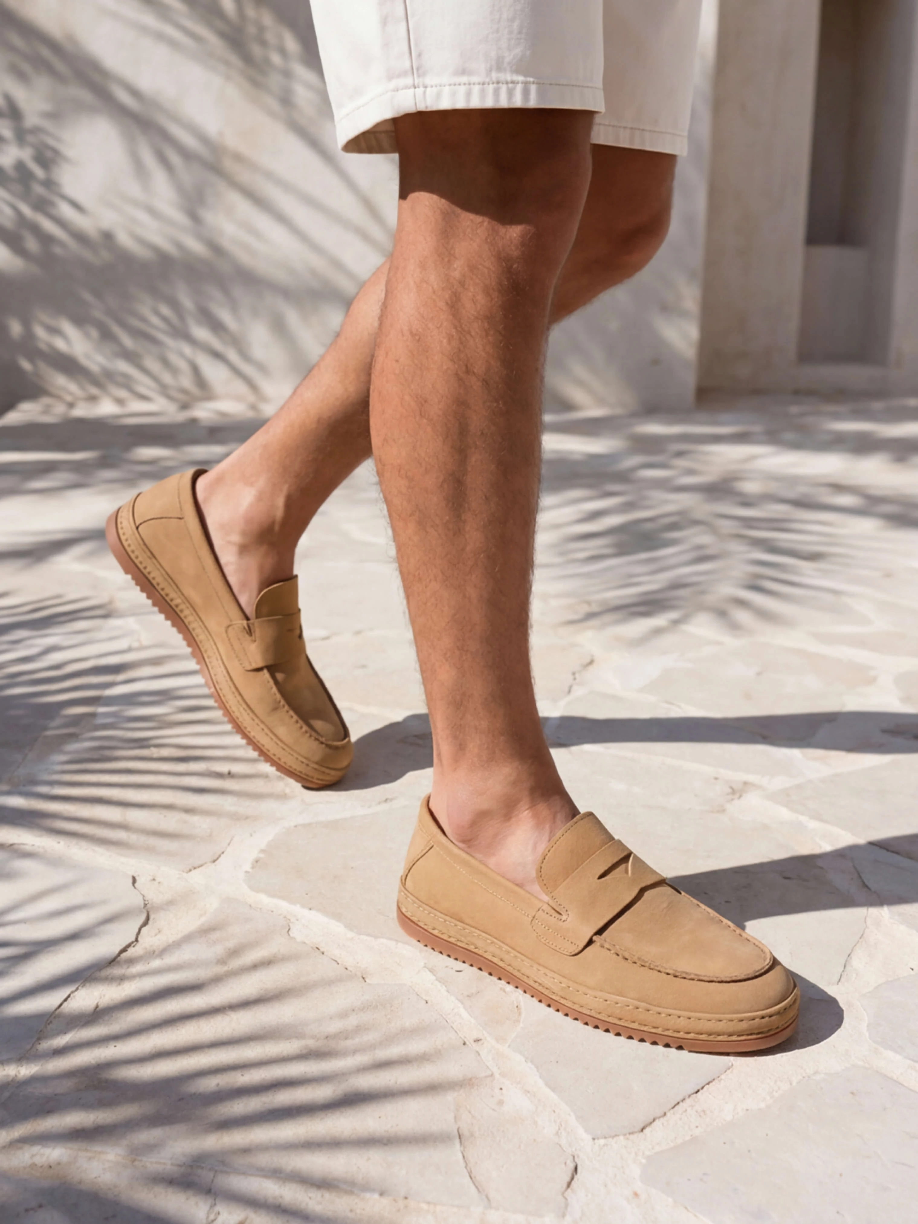 Лоферы мужские демисезон; лето;, цвет песочный, натуральный нубук