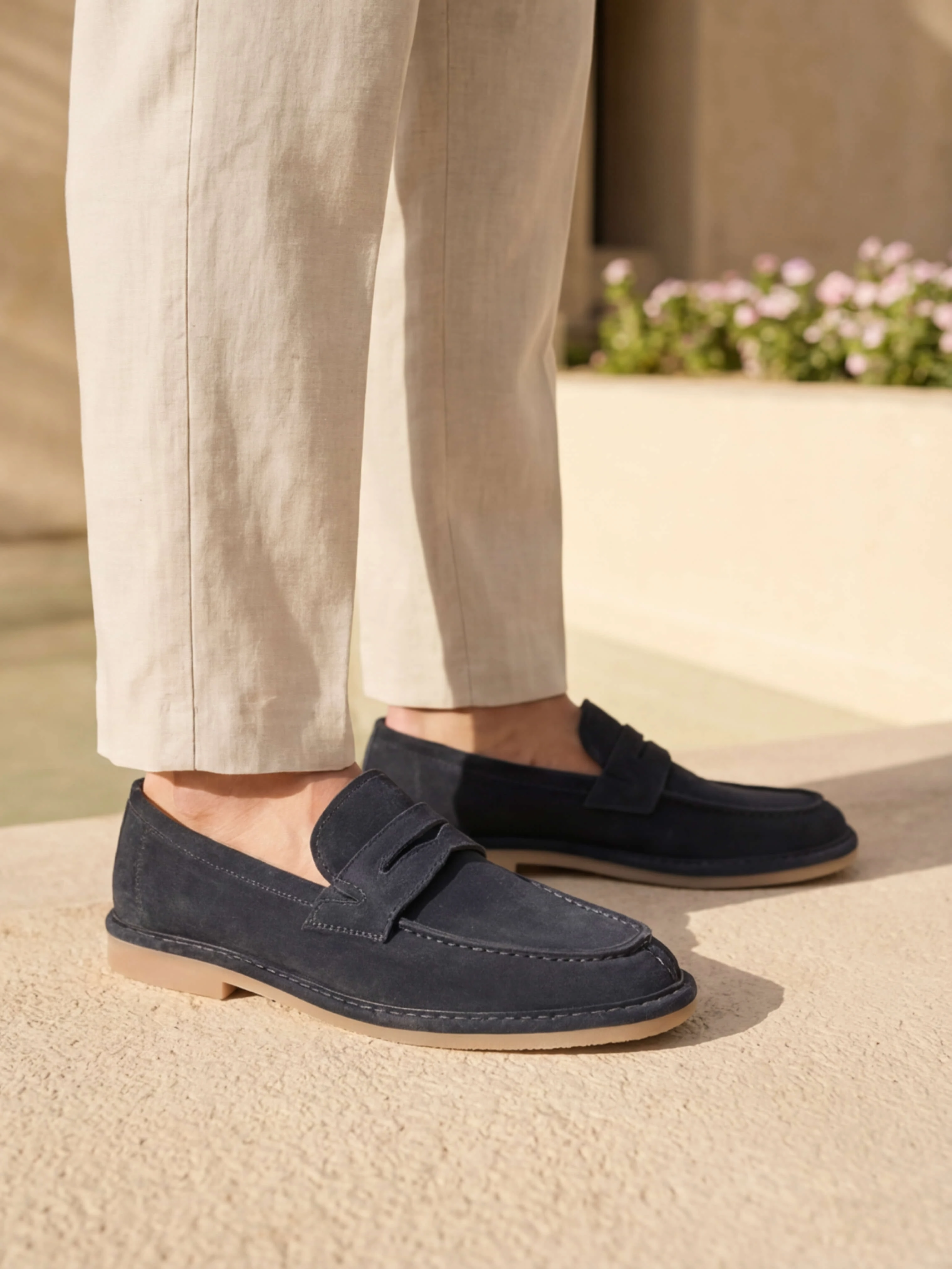 Лоферы мужские демисезон; лето;, цвет синий, натуральный спилок