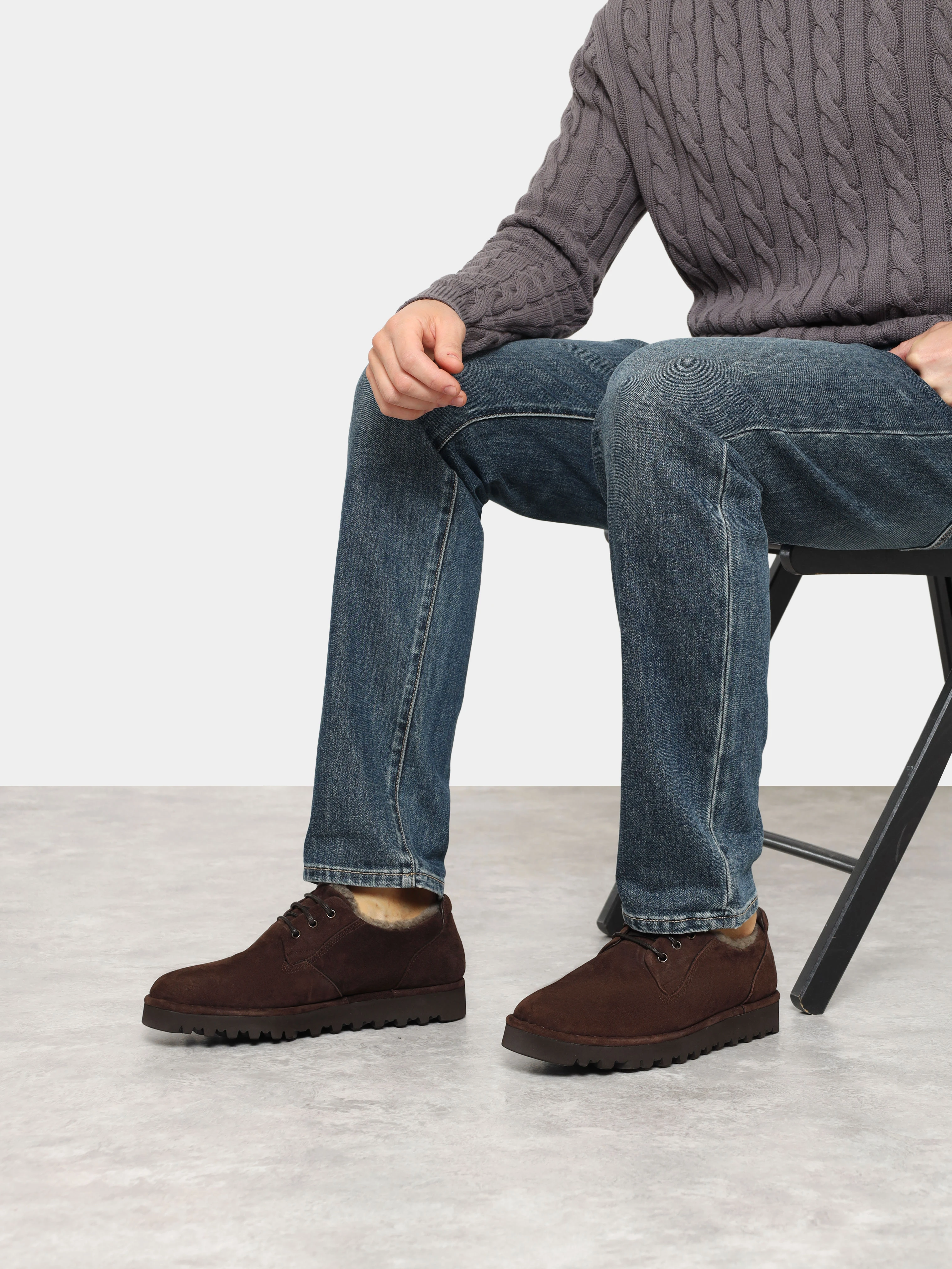 Полуботинки мужские зимние, цвет коричневый, натуральный велюр