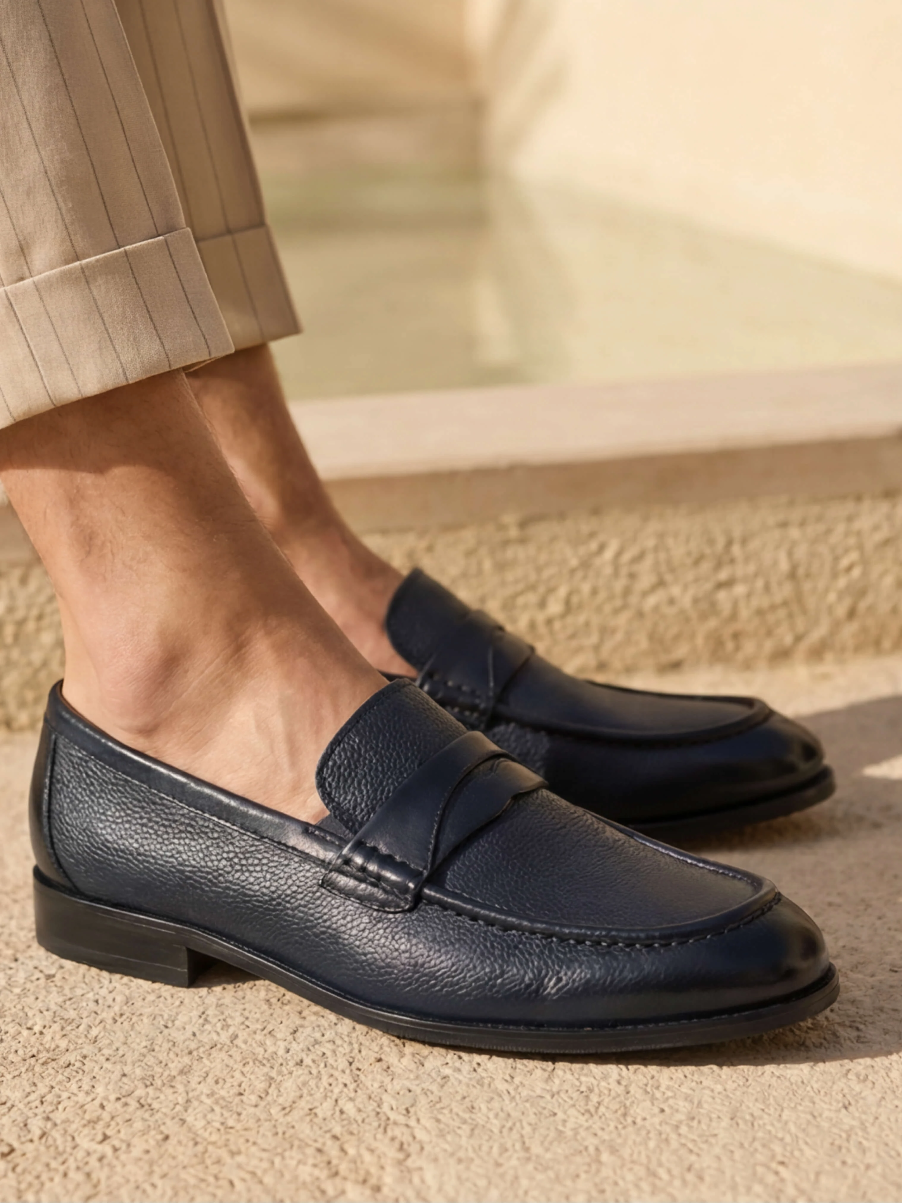 Лоферы мужские демисезон; лето;, цвет синий, натуральная кожа