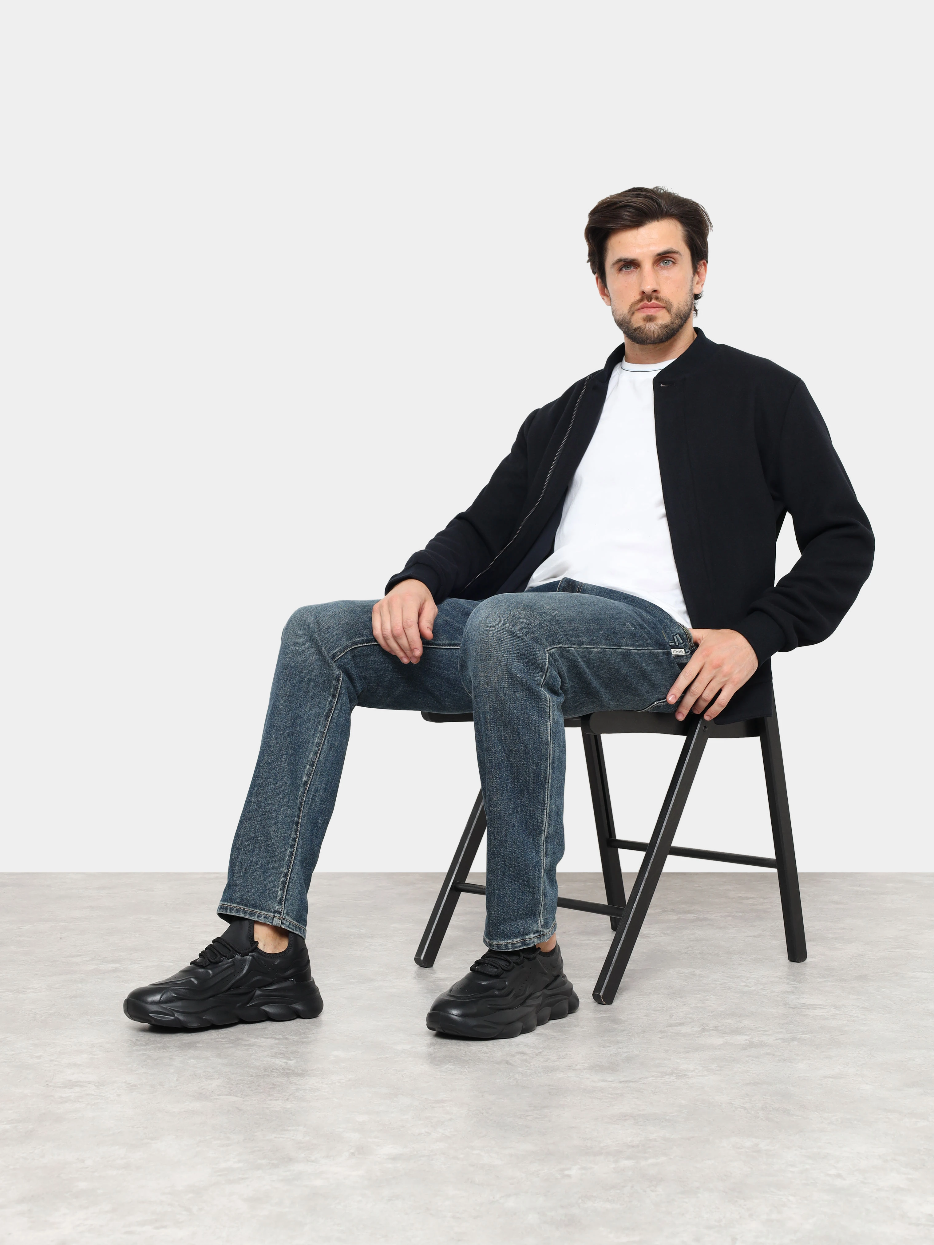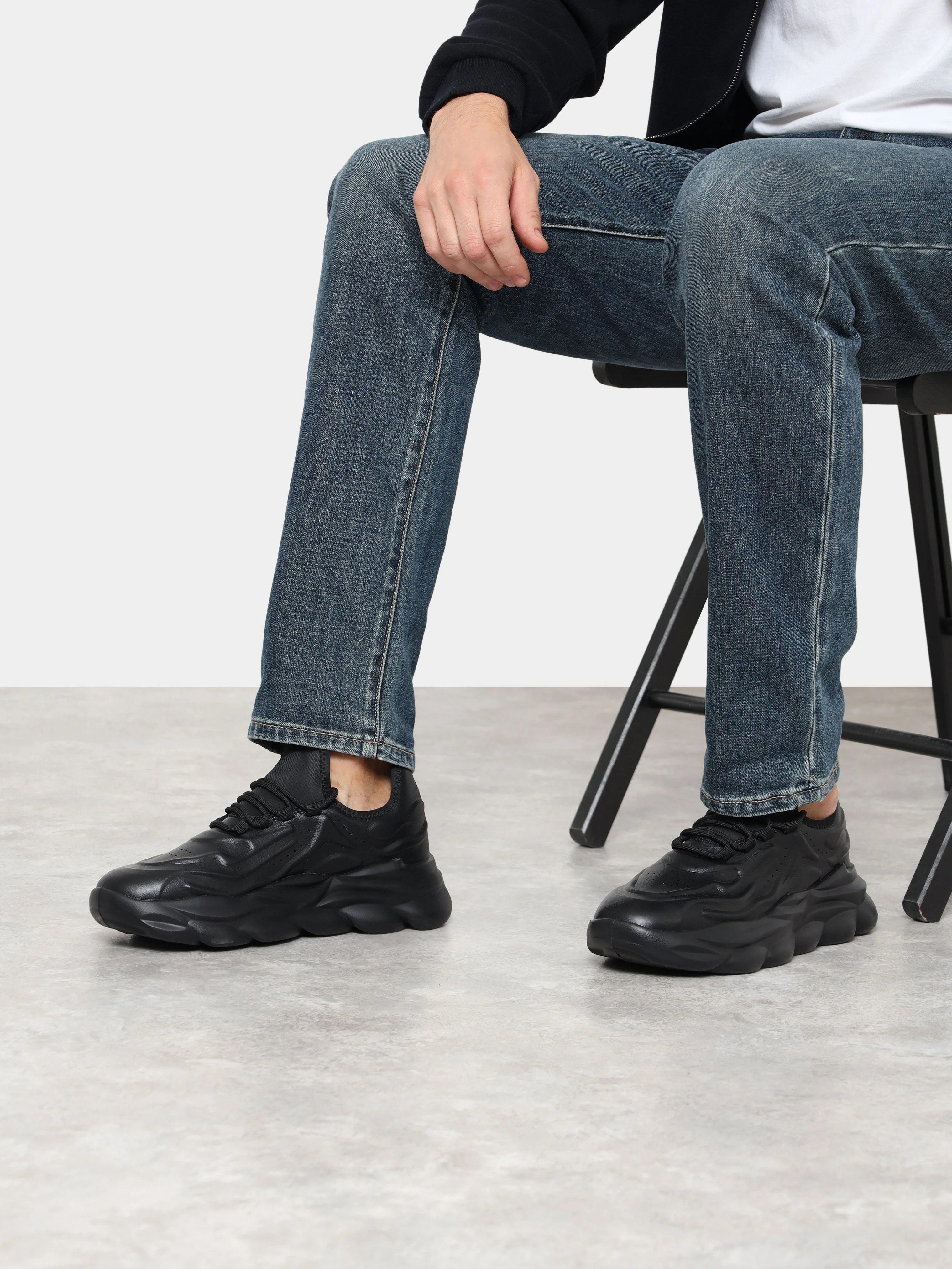 Кроссовки мужские демисезонные, цвет черный, натуральная кожа/текстиль
