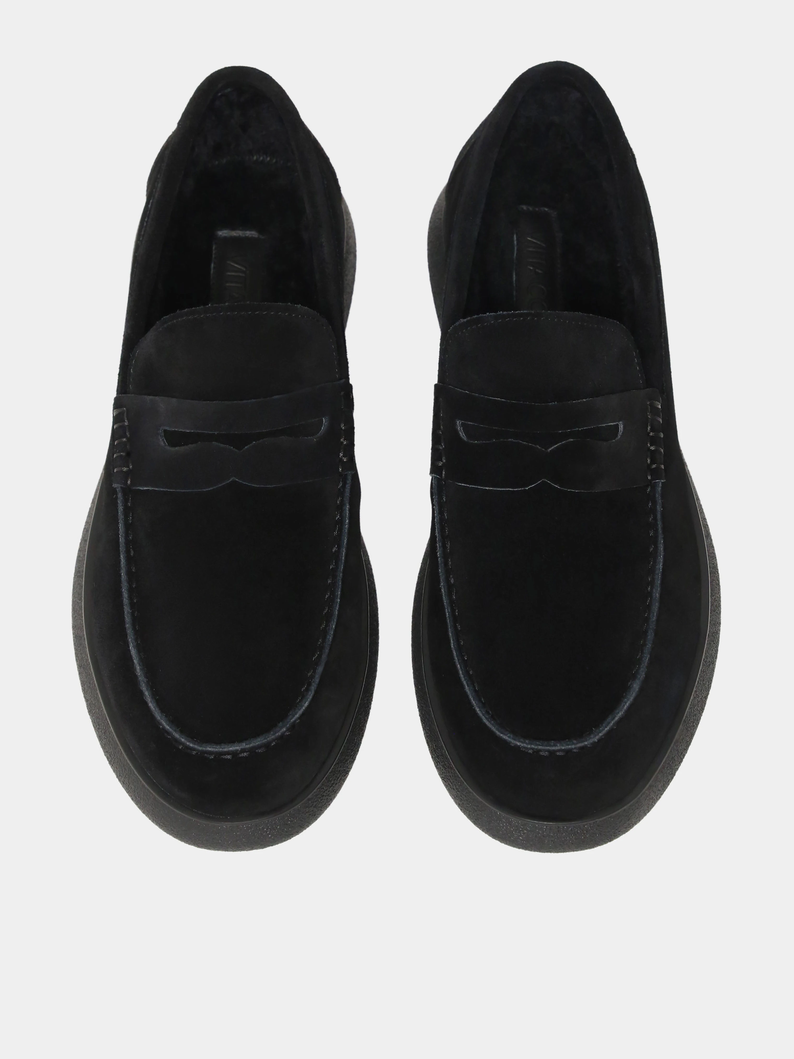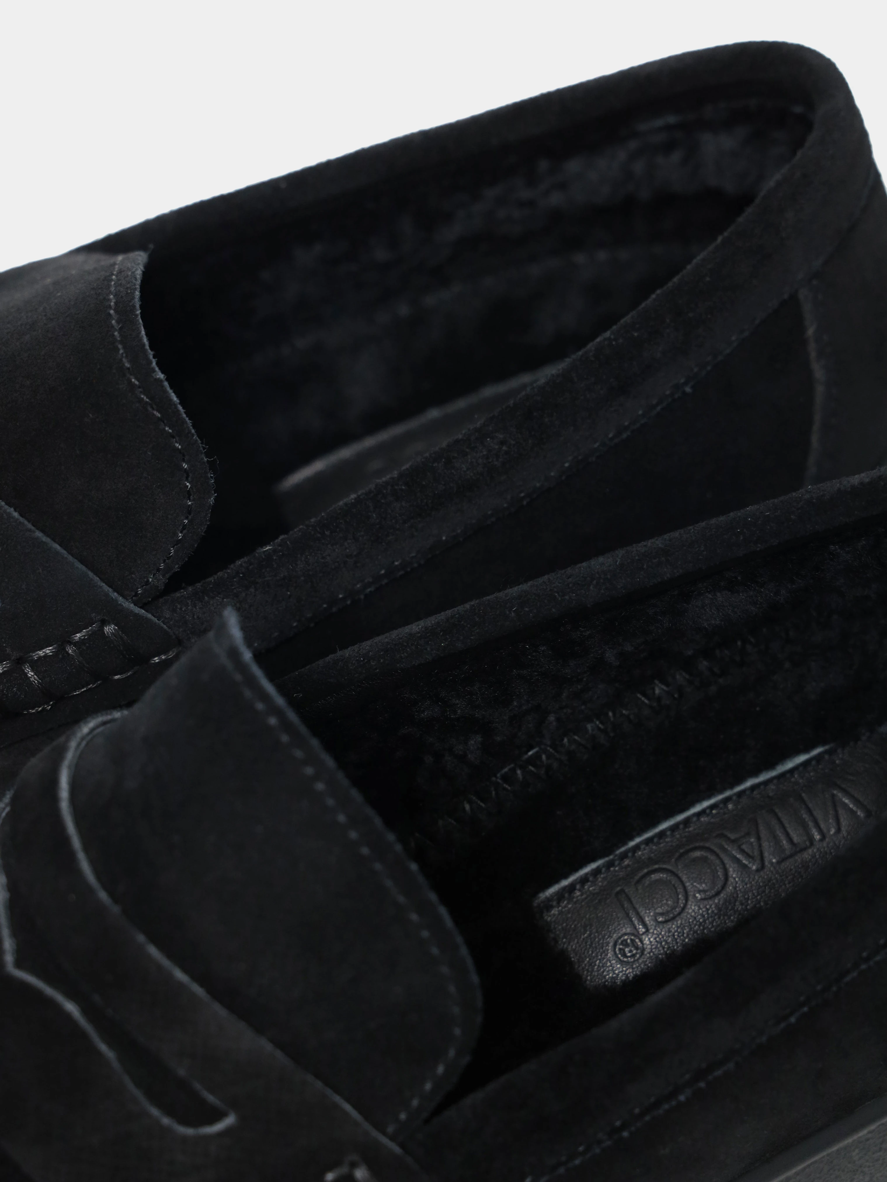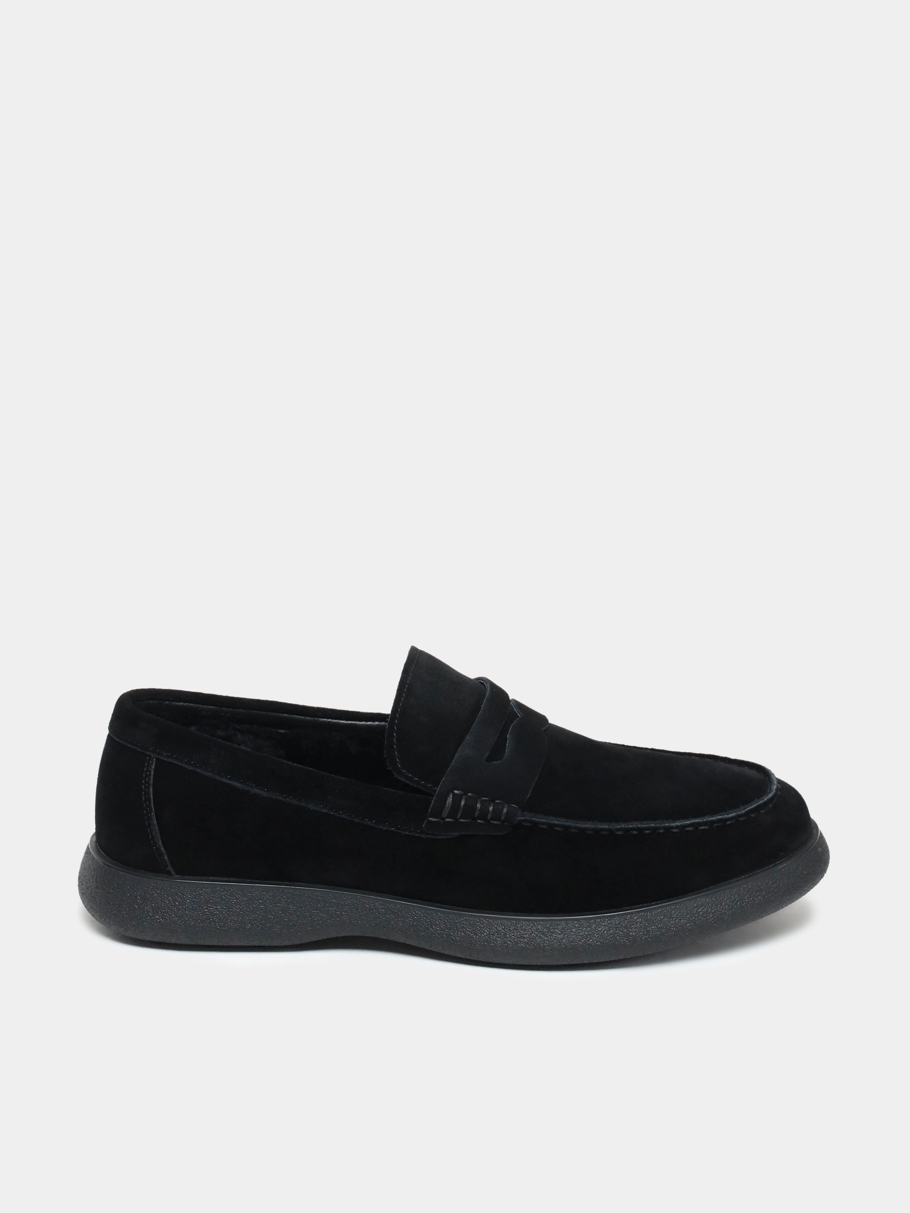Лоферы мужские зимние, цвет черный, натуральный спилок