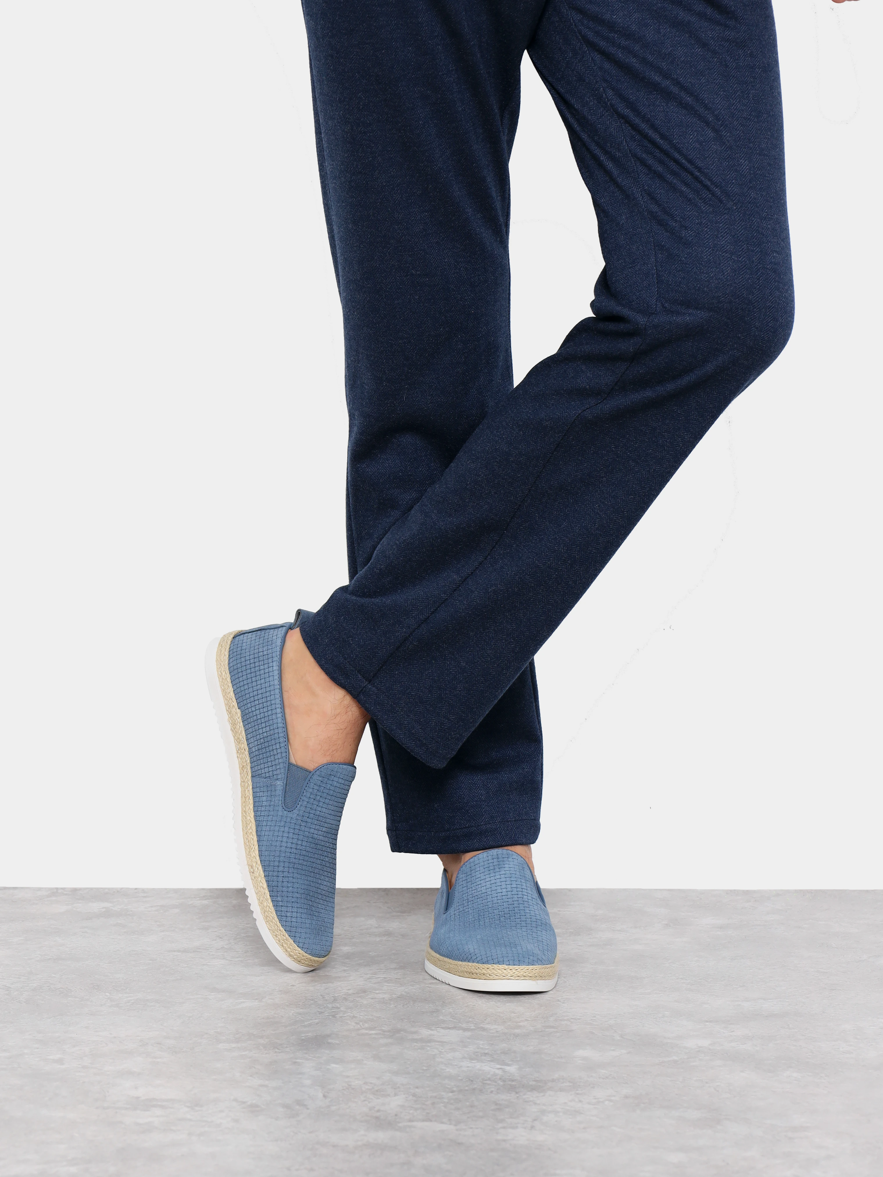 Слипоны мужские демисезон; лето;, цвет голубой, натуральный спилок