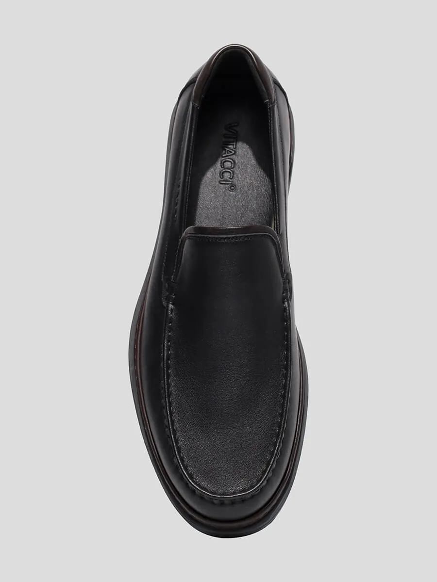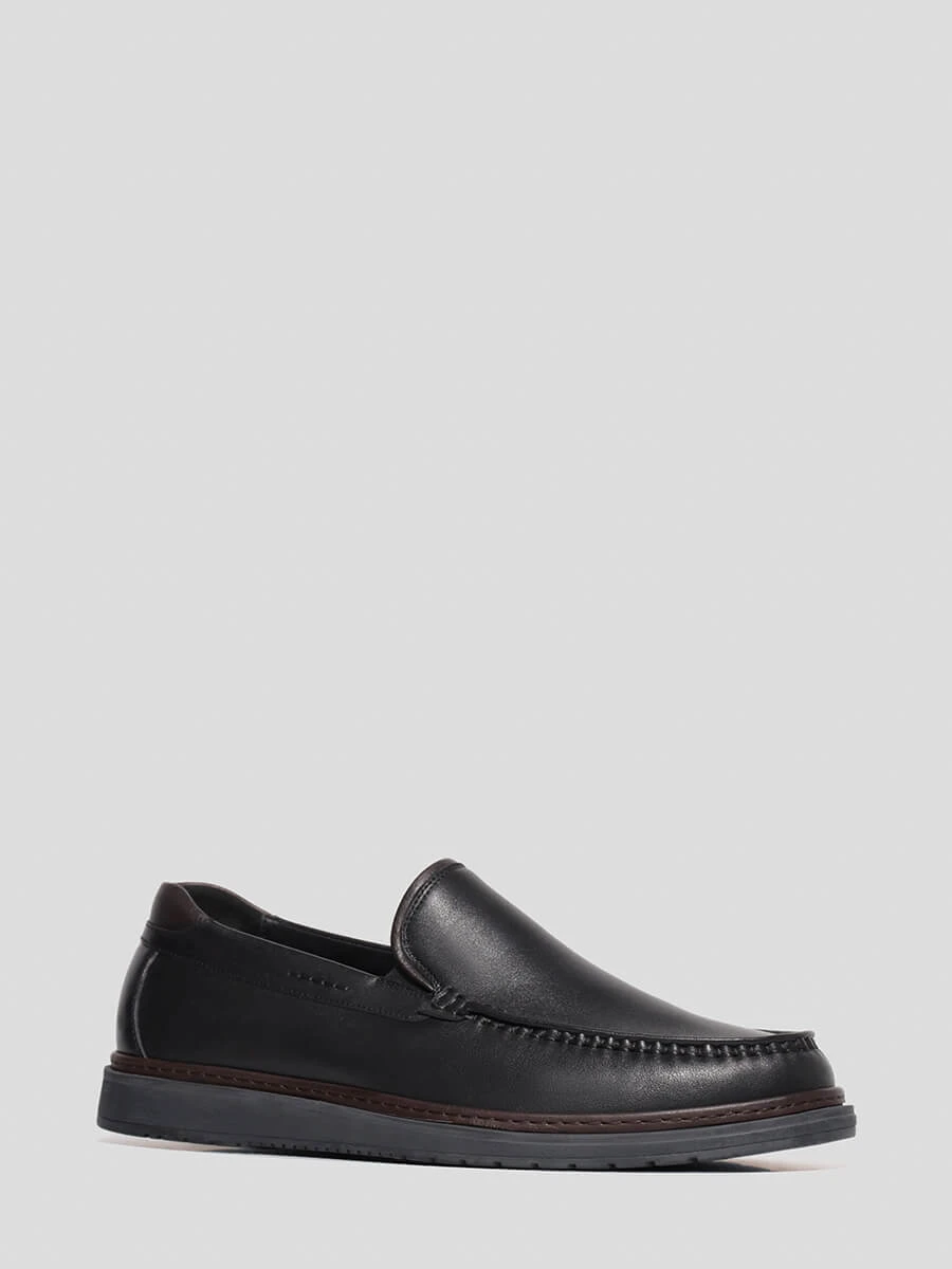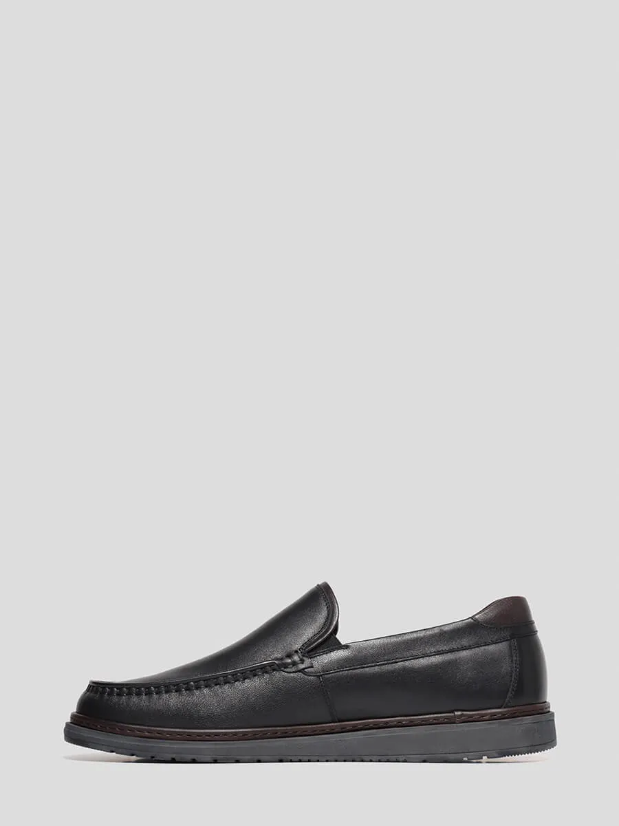 Слипоны мужские всесезонные, цвет черный, натуральная кожа