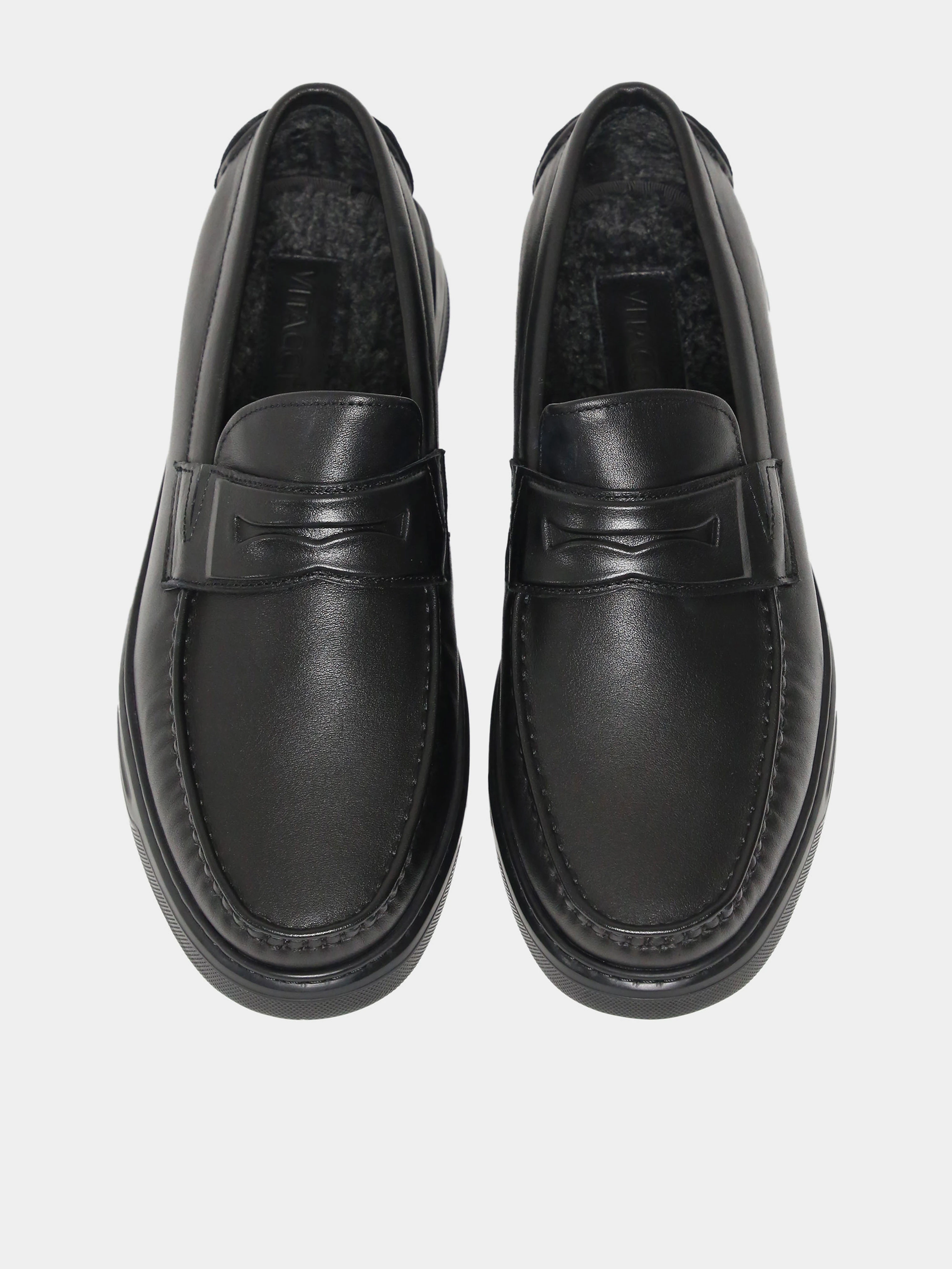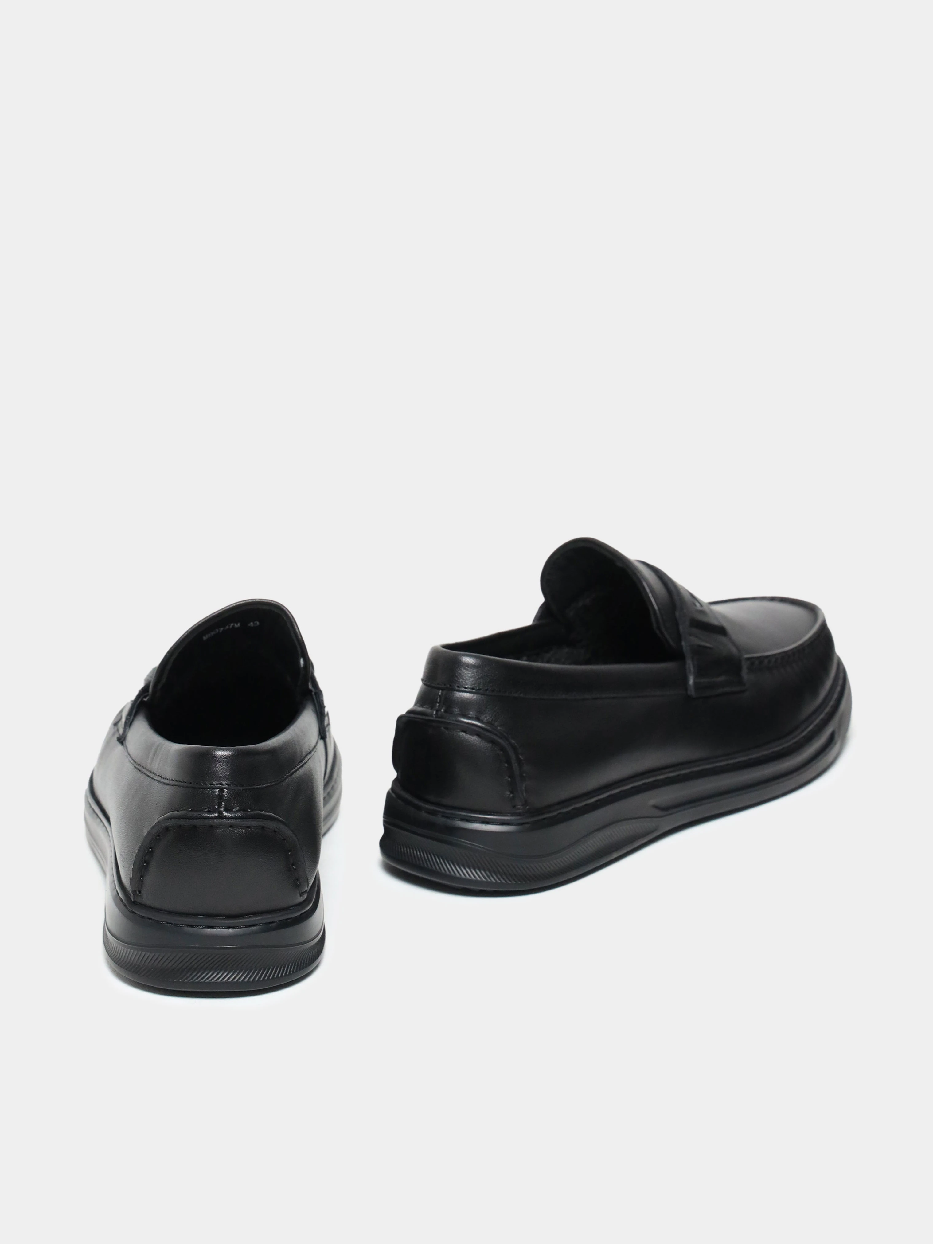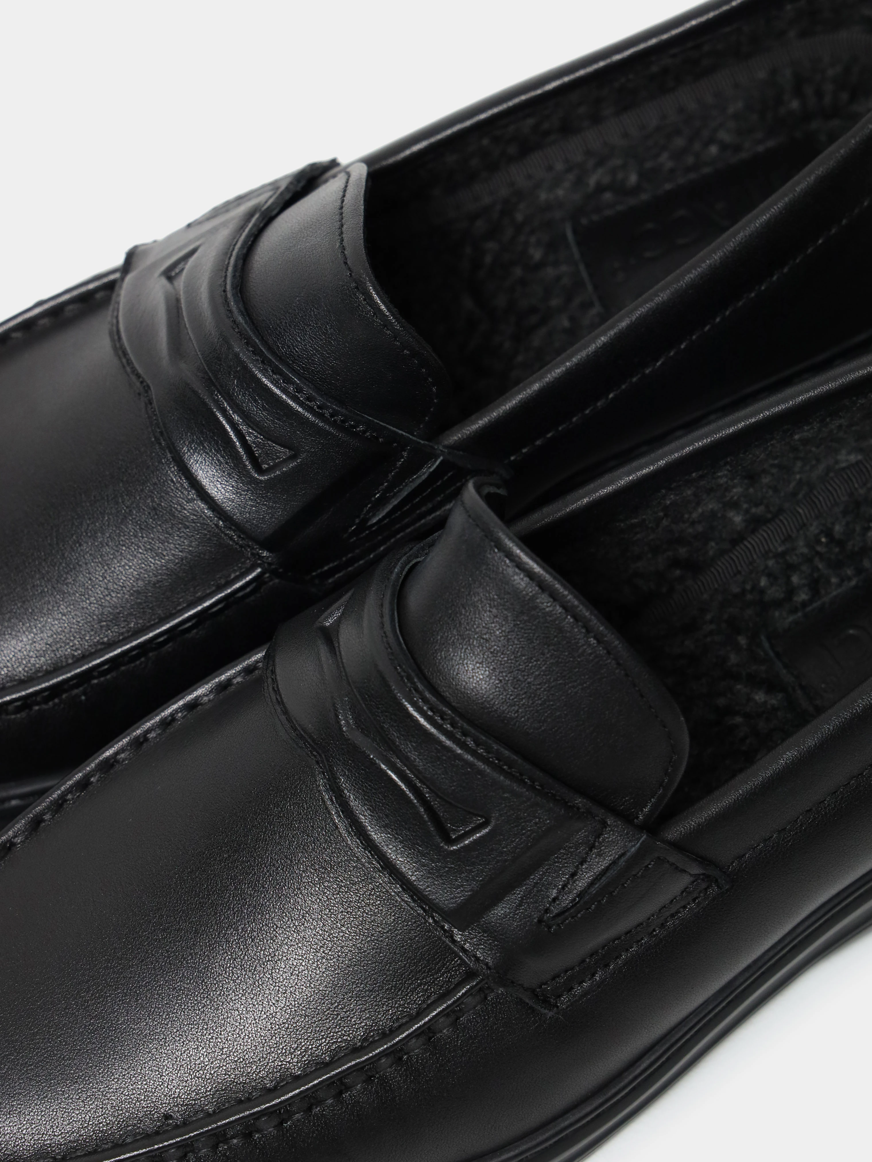 Лоферы мужские зимние, цвет черный, натуральная кожа
