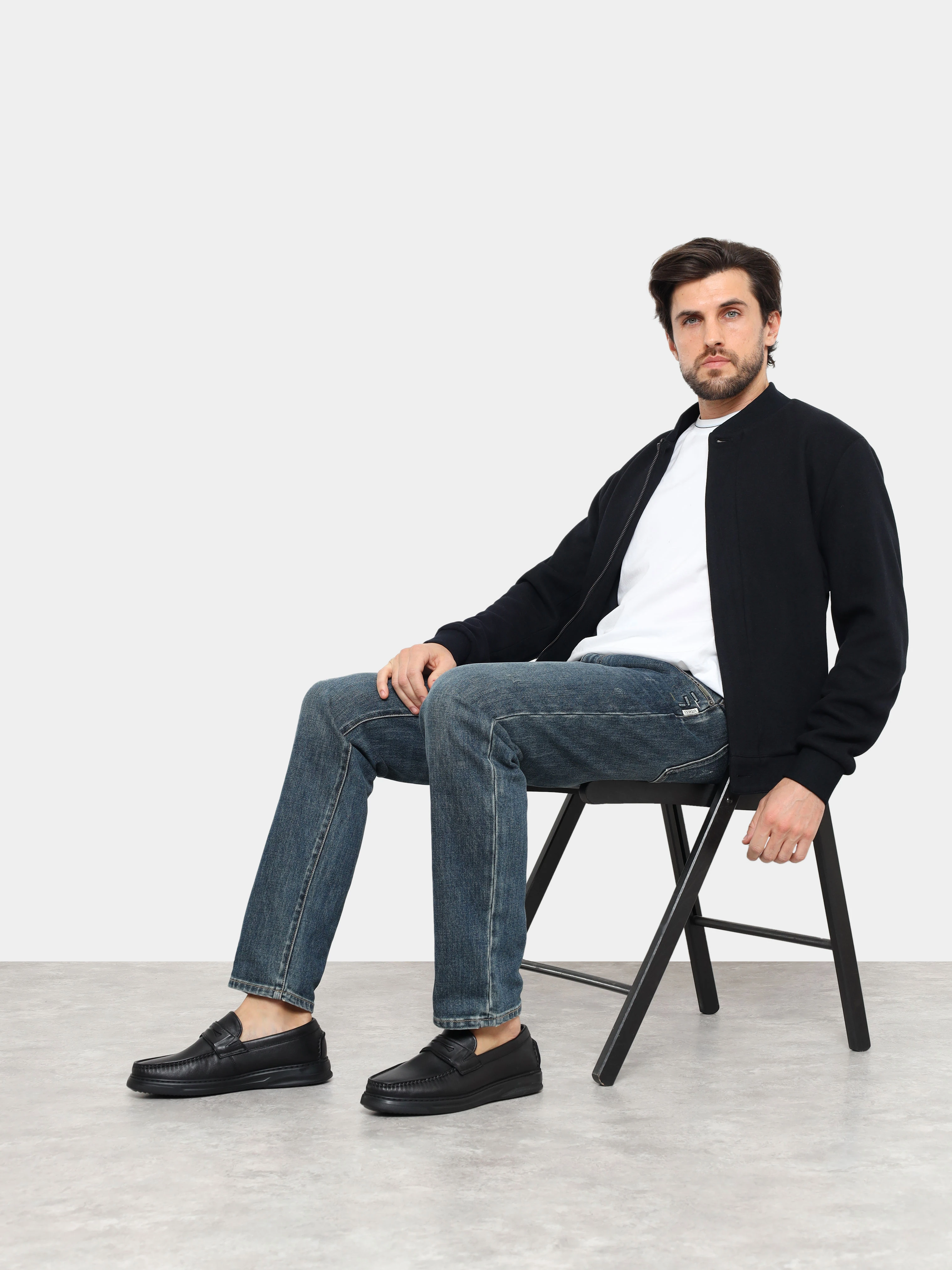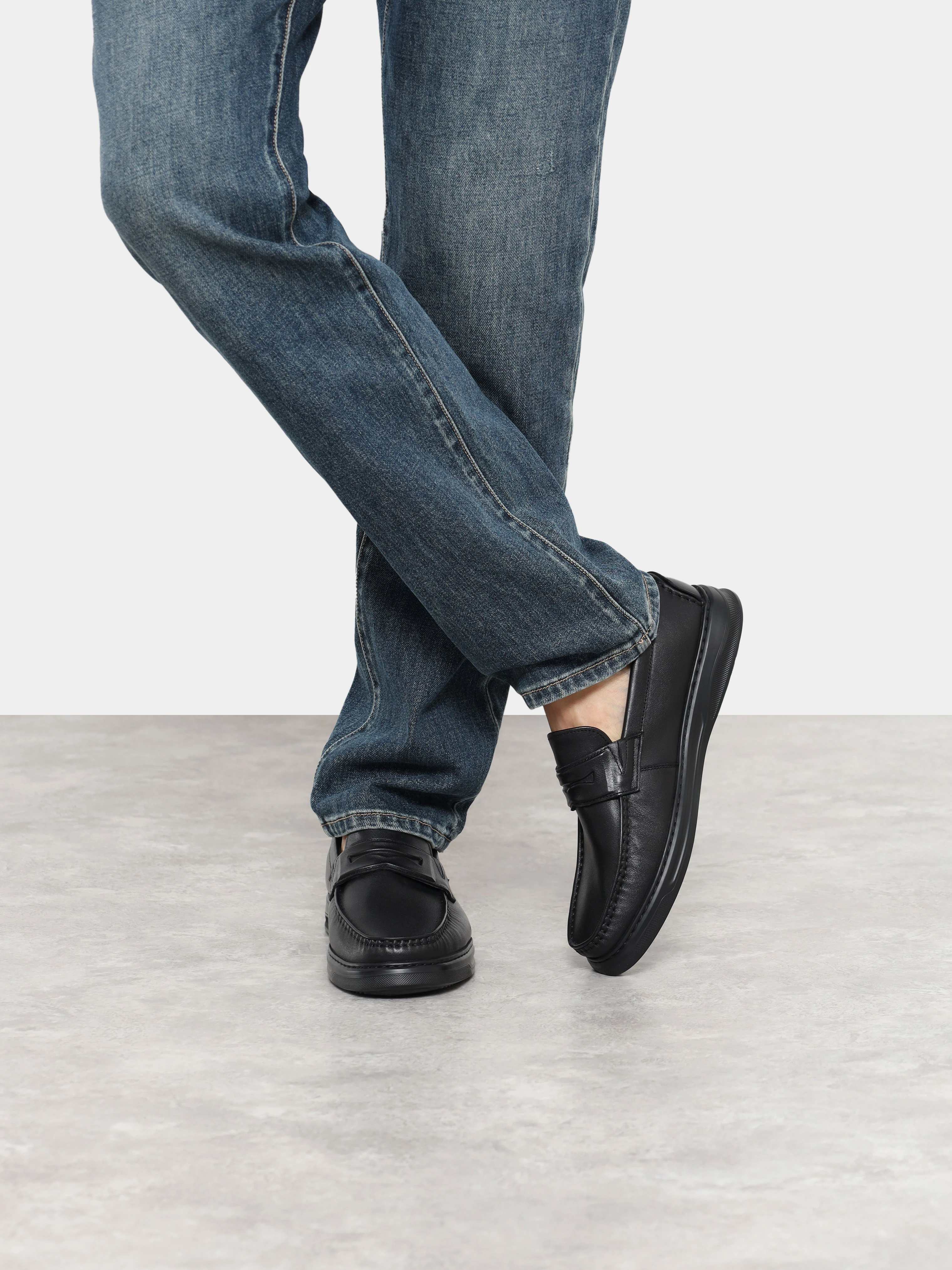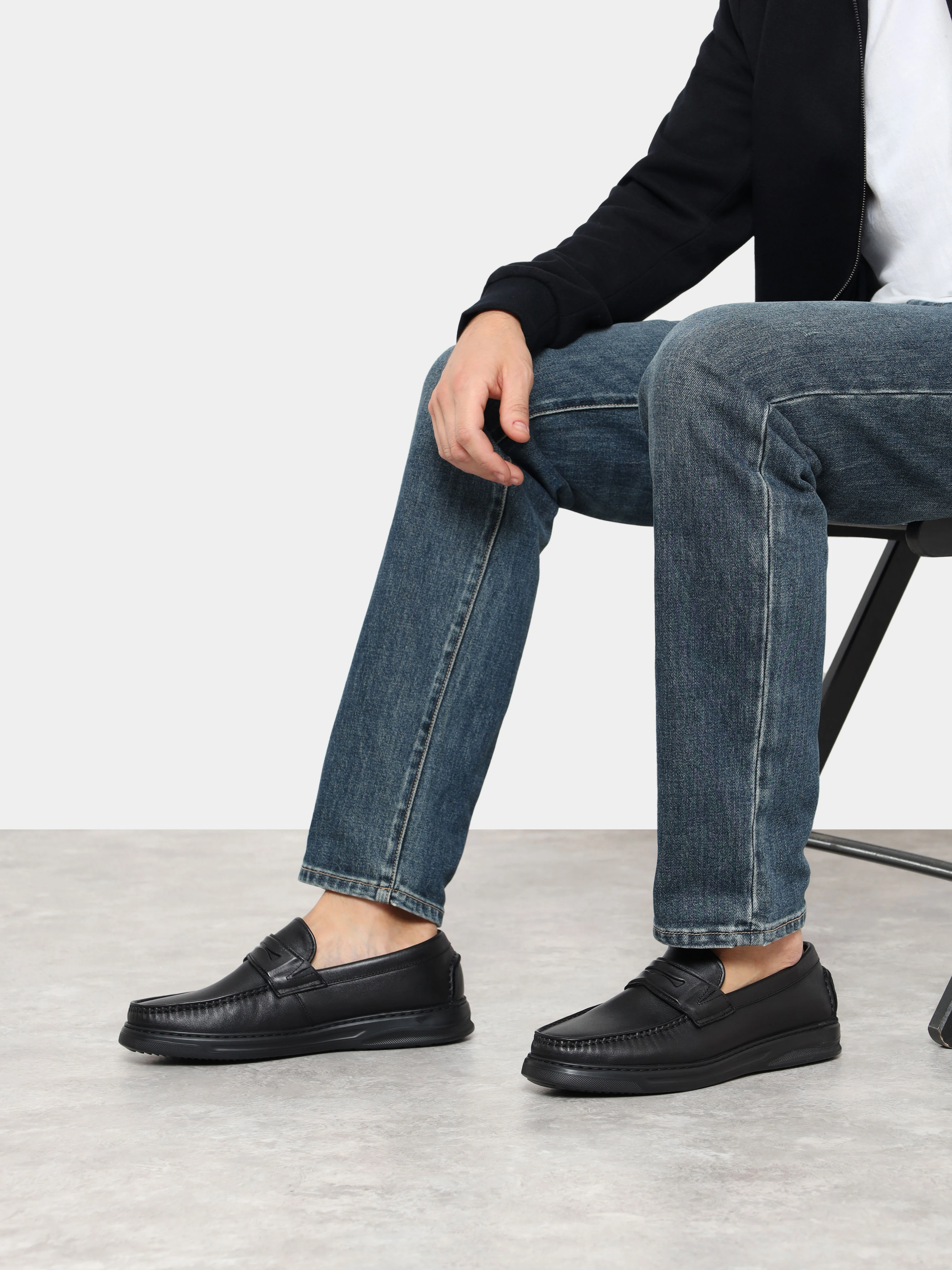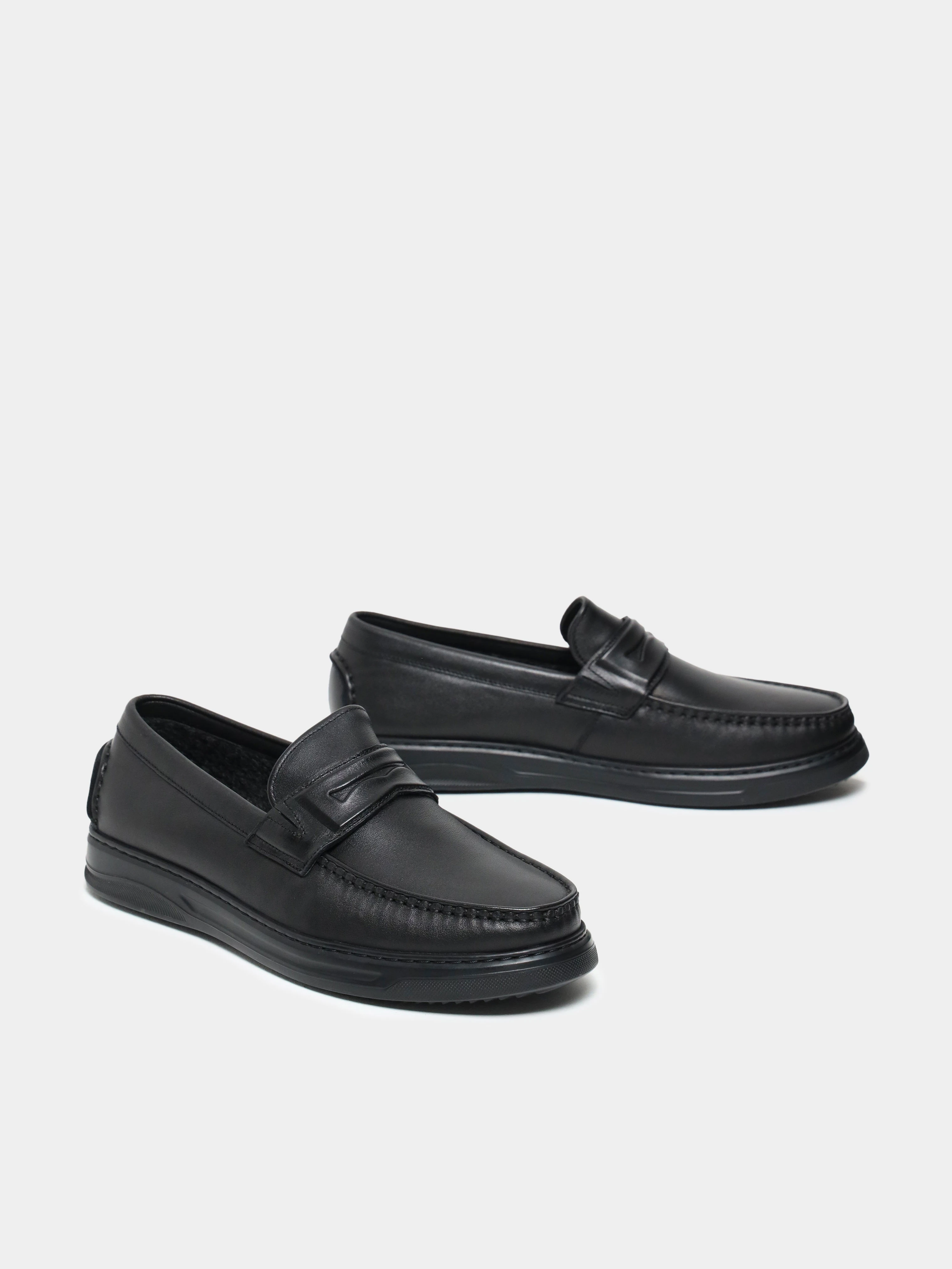 Лоферы мужские зимние, цвет черный, натуральная кожа