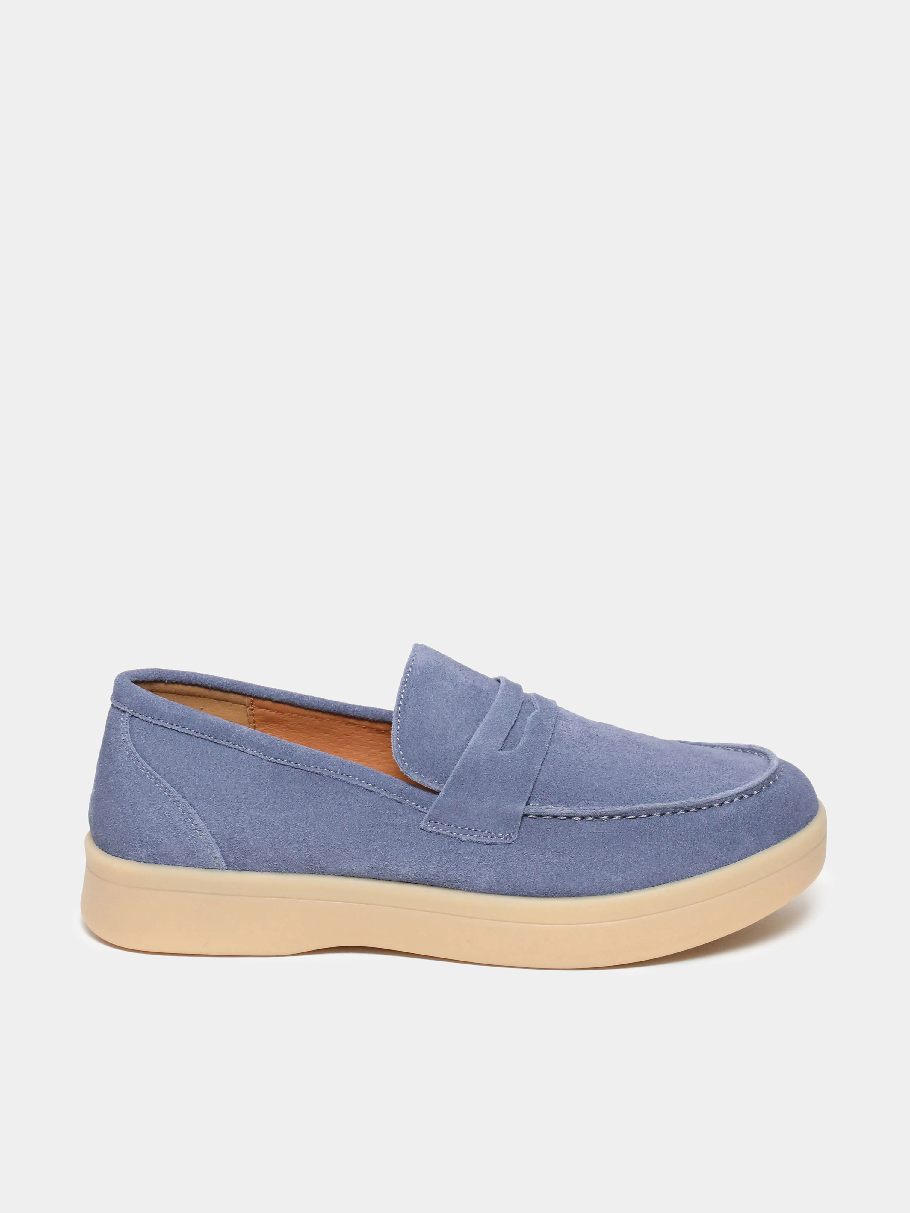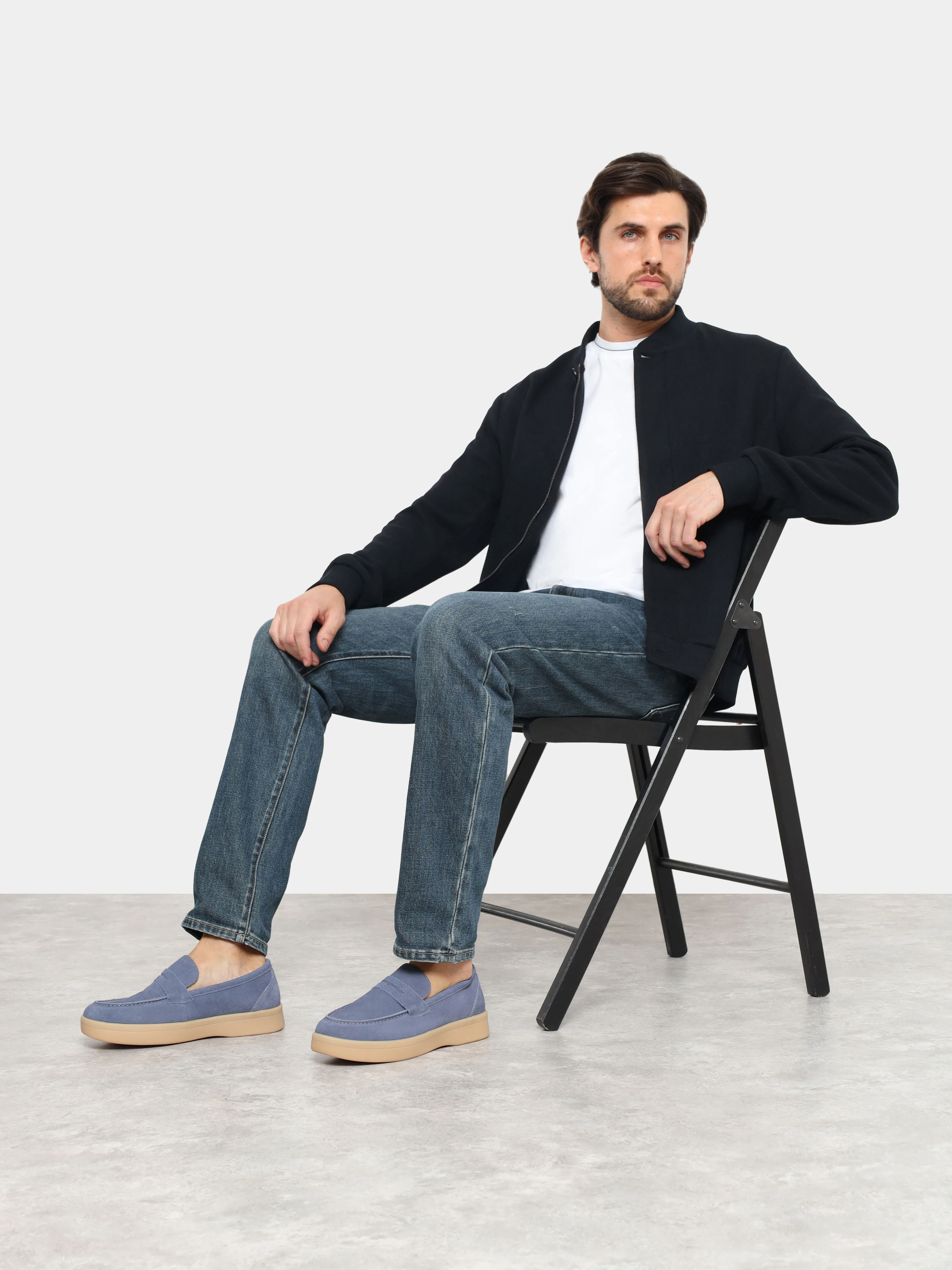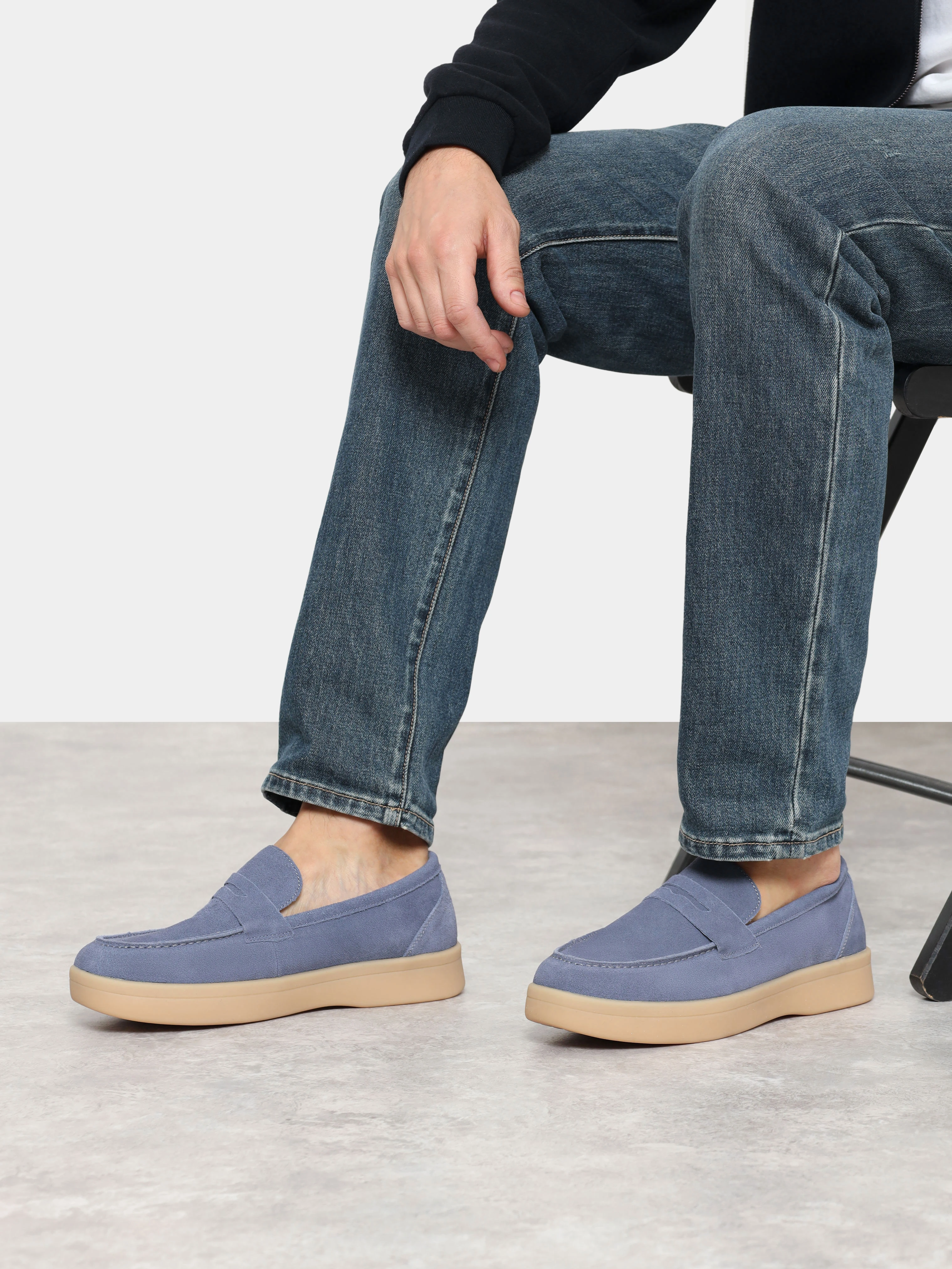 Лоферы мужские демисезонные, цвет синий, натуральный спилок