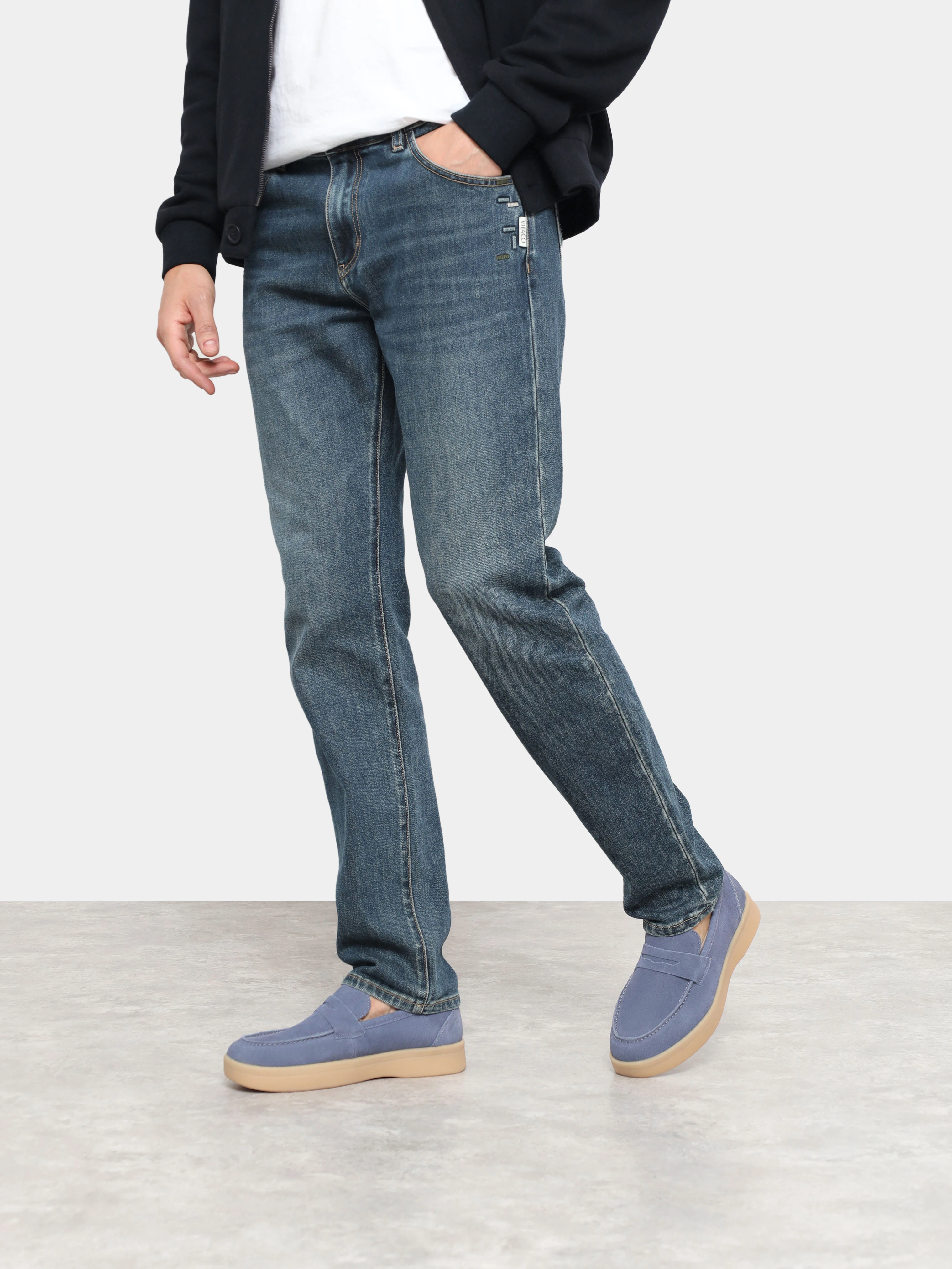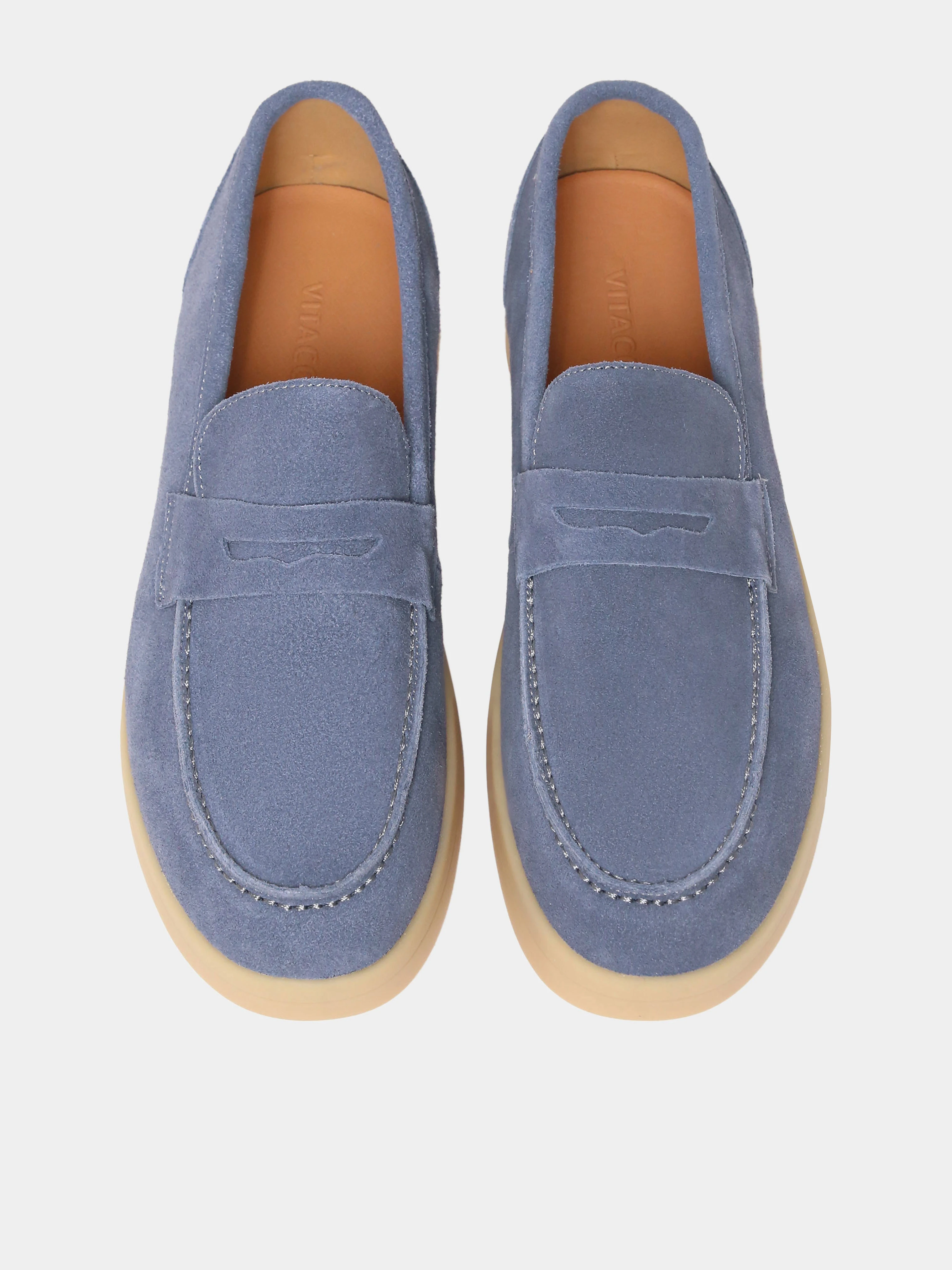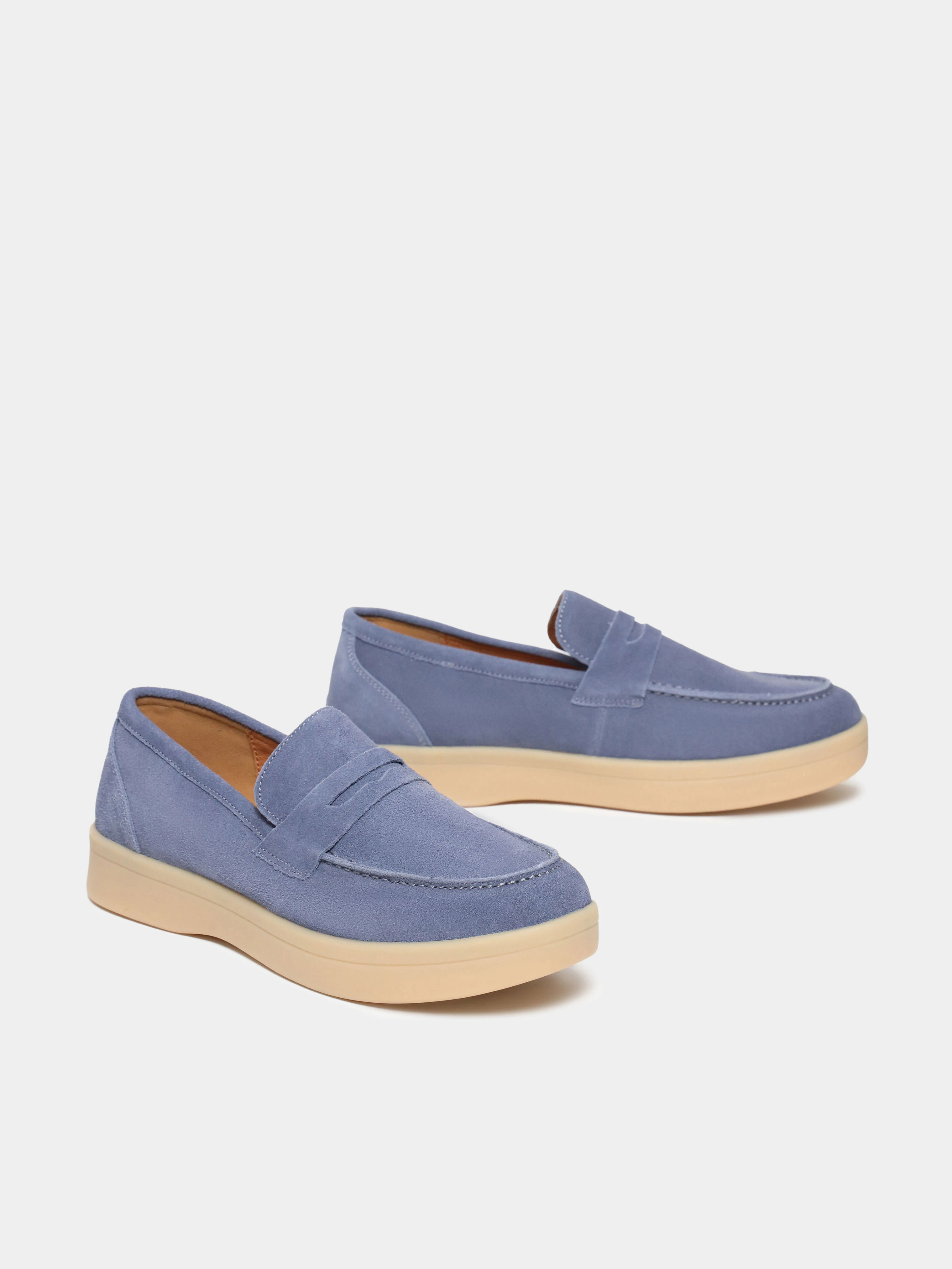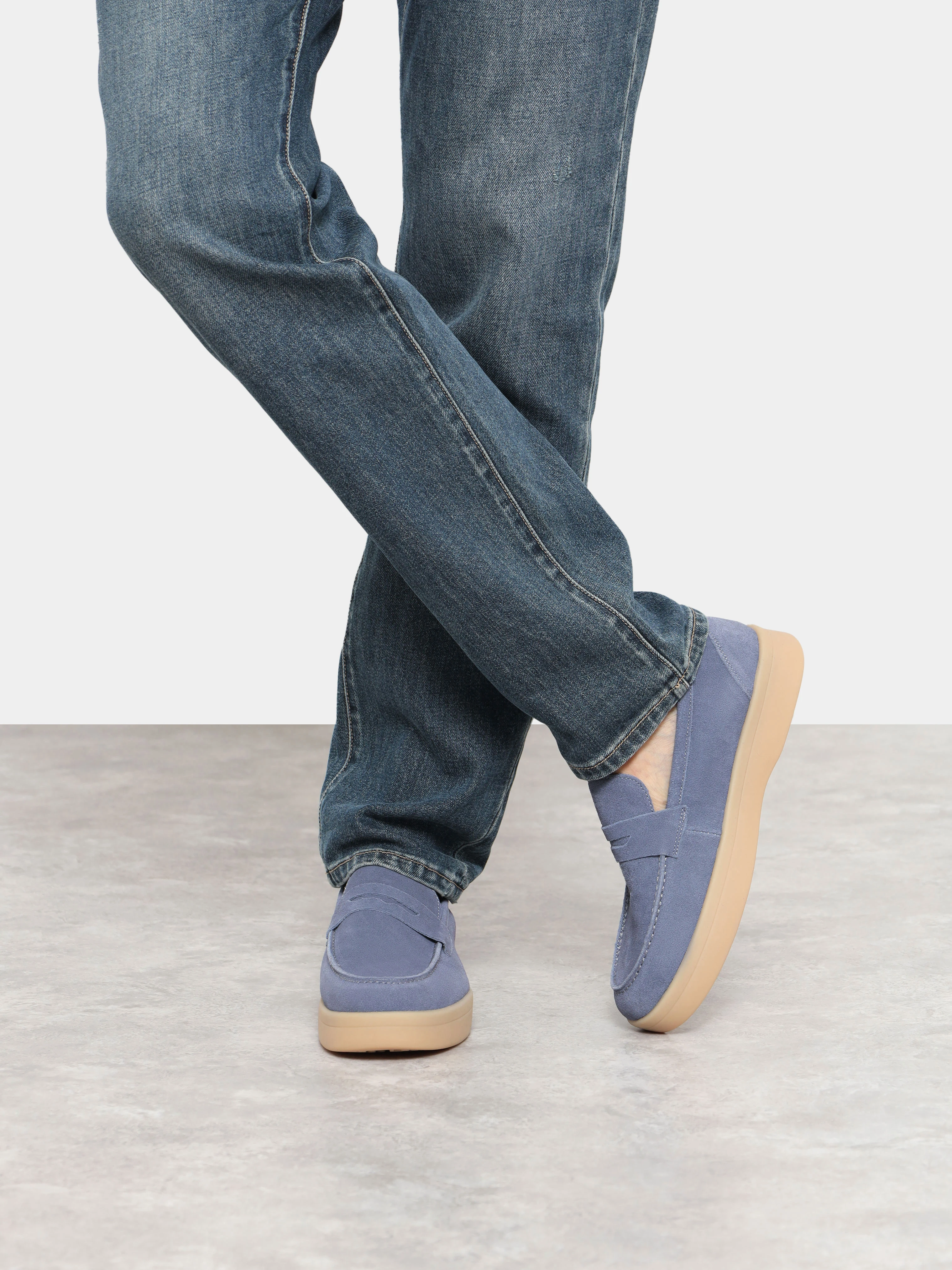Лоферы мужские демисезонные, цвет синий, натуральный спилок