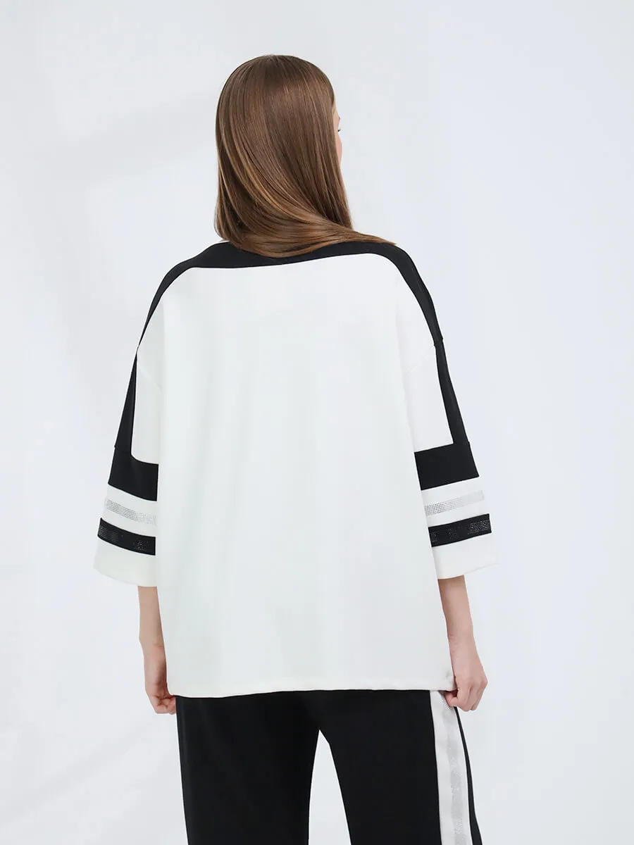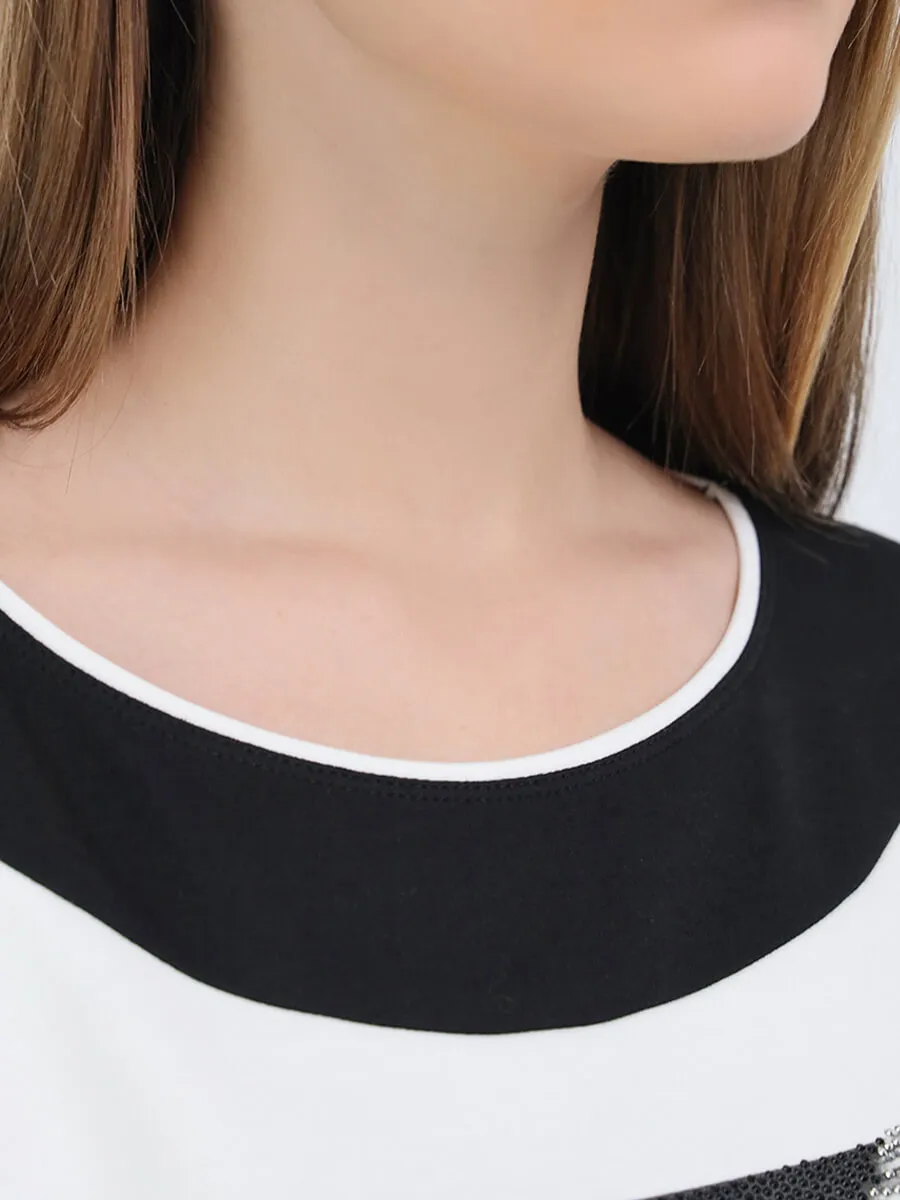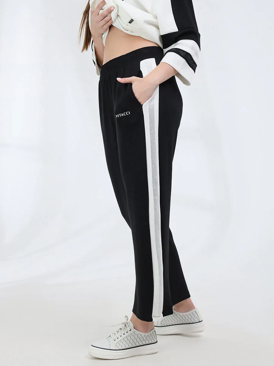 Комплект из джемпера и брюк от VITACCI выполнен из полиэстера и вискозы с включением лайкры. Джемпер с укороченными рукавами "клёш". Брюки оснещены карманами и резинкой. Комплект декорирован стразами и принтом. Обхват талии: 42 (50) - 80 см, 44 (52) - 82 см, 46 (54) - 86 см. Обхват груди: 42 (50) - 120 см, 44 (52) - 122 см, 46 (54) - 128 см. Обхват бедер: 42 (50) - 112 см, 44 (52) - 116 см, 46 (54) - 120 см.