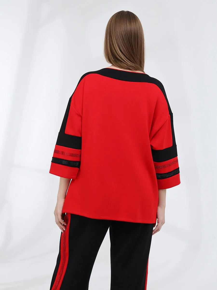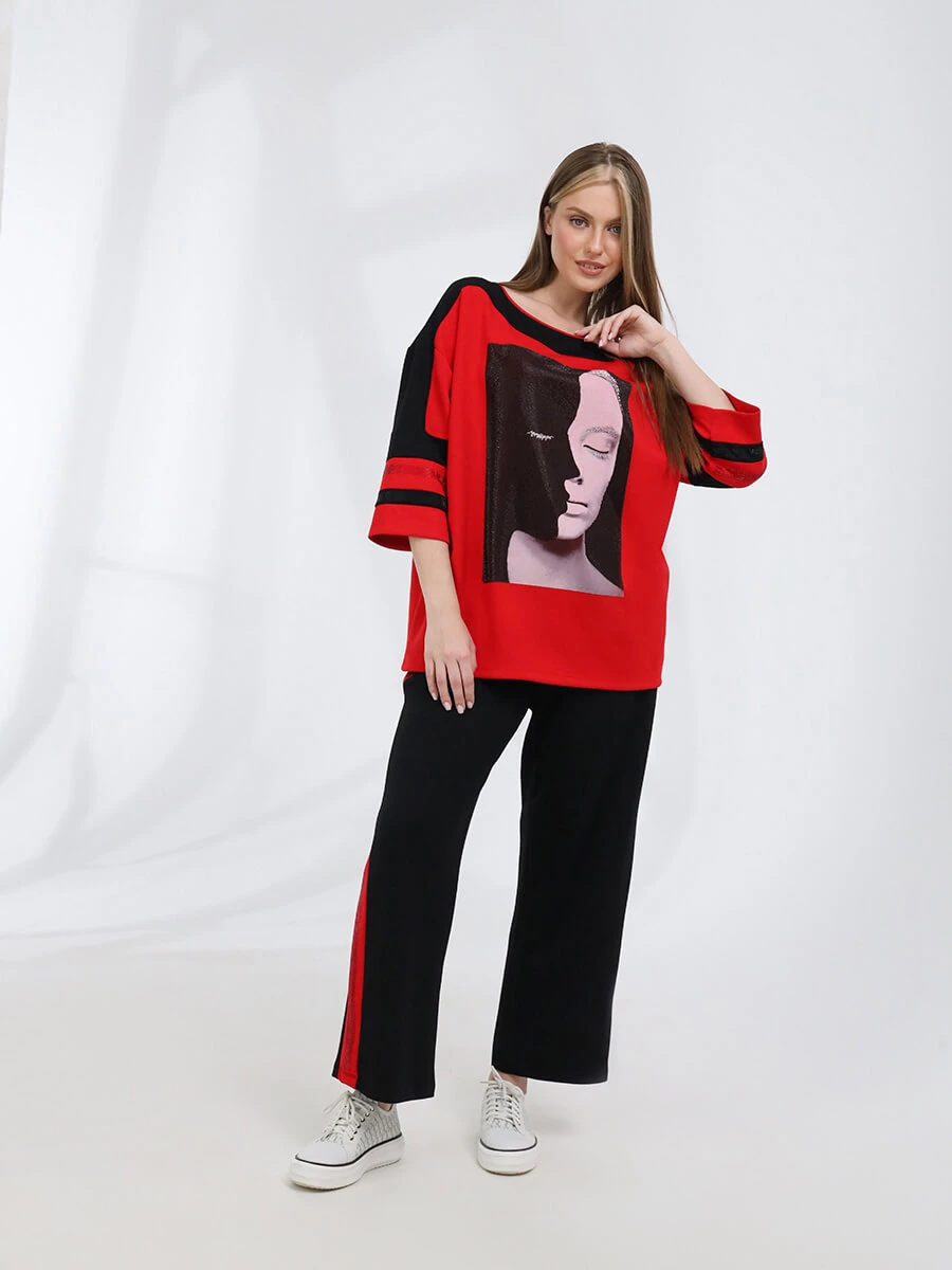 Комплект из джемпера и брюк от VITACCI выполнен из полиэстера и вискозы с включением лайкры. Джемпер с укороченными рукавами "клёш". Брюки оснещены карманами и резинкой. Комплект декорирован стразами и принтом. Обхват талии: 42 (50) - 80 см, 44 (52) - 82 см, 46 (54) - 86 см. Обхват груди: 42 (50) - 120 см, 44 (52) - 122 см, 46 (54) - 128 см. Обхват бедер: 42 (50) - 112 см, 44 (52) - 116 см, 46 (54) - 120 см.