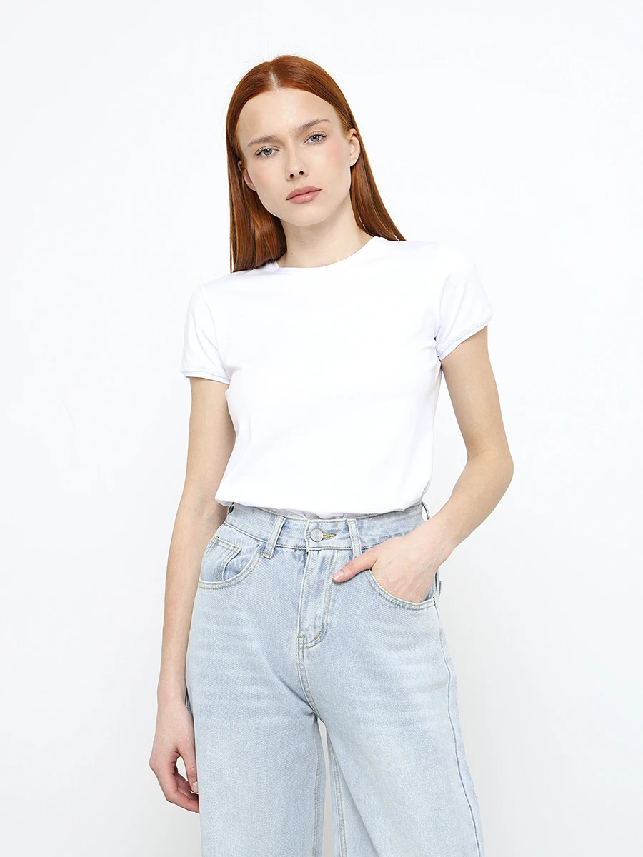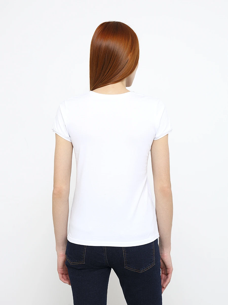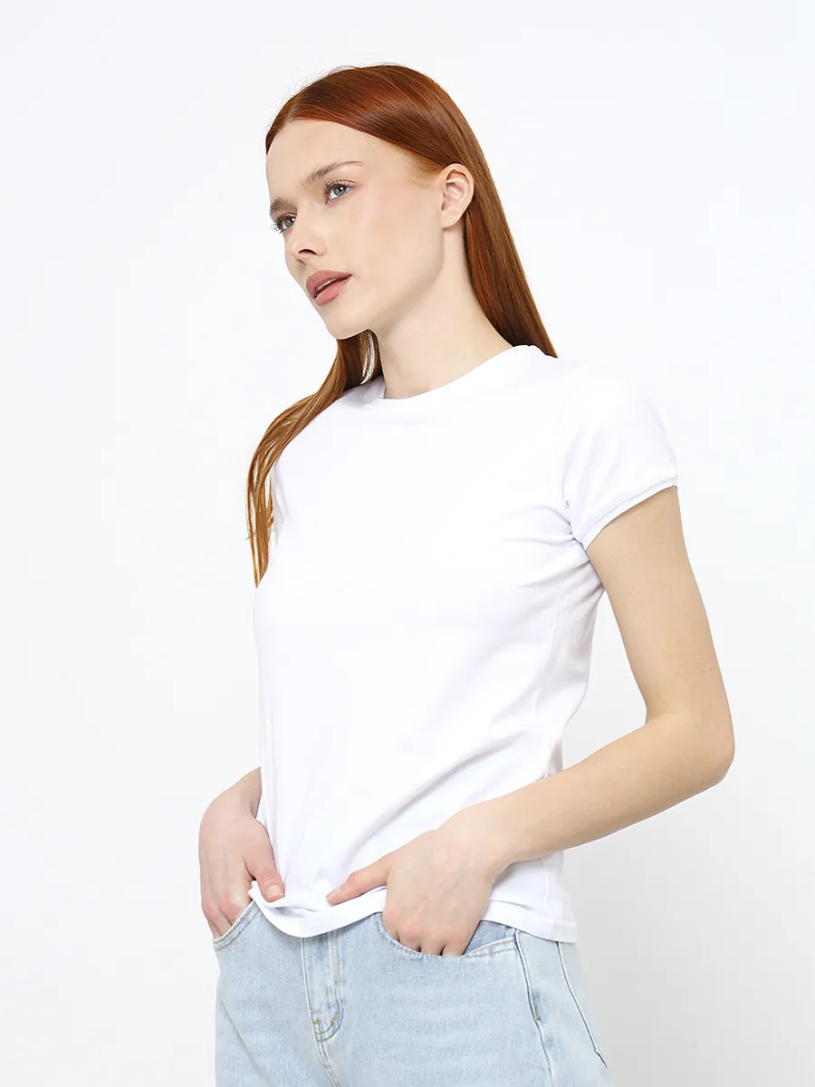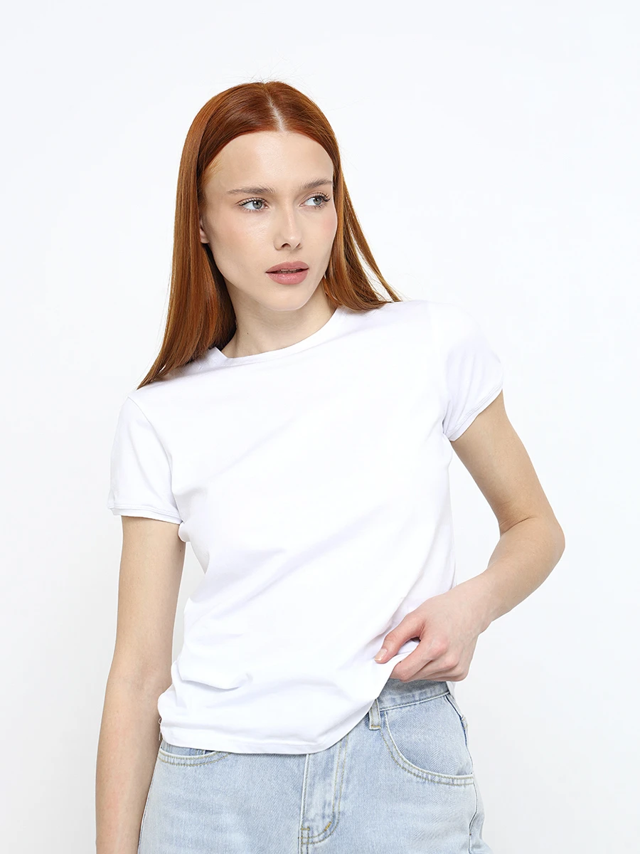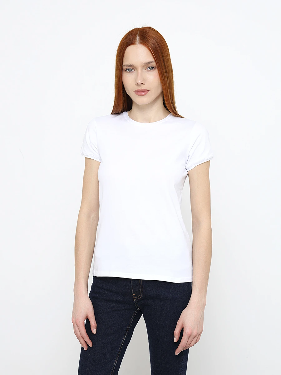 Женская трикотажная футболка выполнена из хлопка с добавлением эластана. Базовая футболка – это универсальная модель без лишних деталей и может быть как нижним бельем, так и летней одеждой.