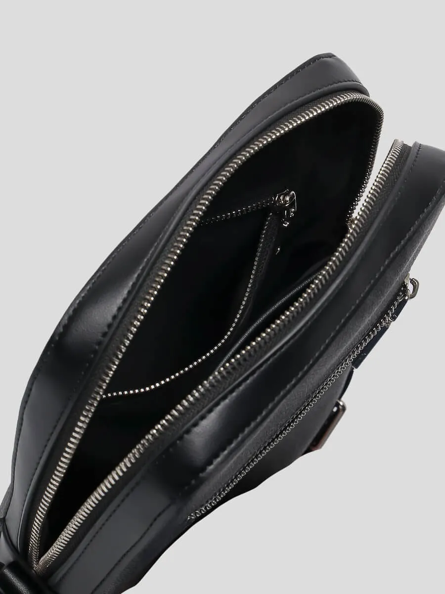 Сумка выполнена из искусственной кожи. Имеет внешний карман на молнии. Внутри один отдел с двумя карманами.