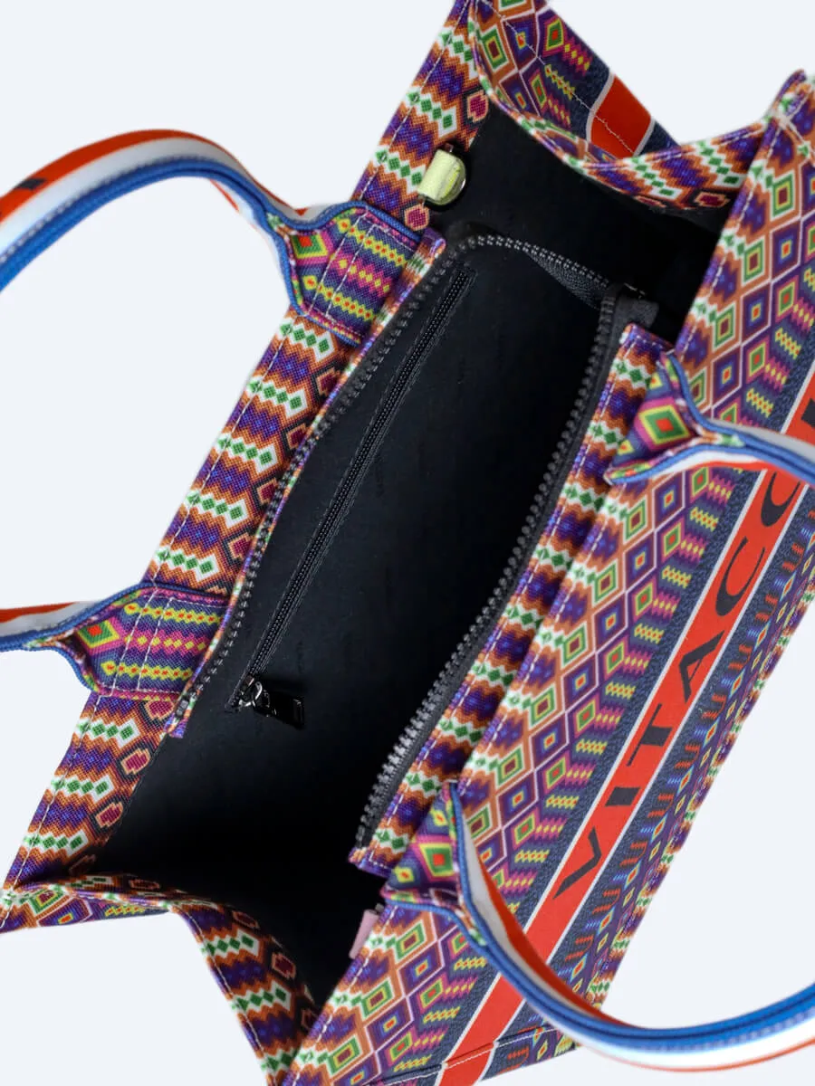 Сумка женская закрывается на магнитную кнопку. Внутри один большой отдел и три кармана, один из которых закрывается на молнию.