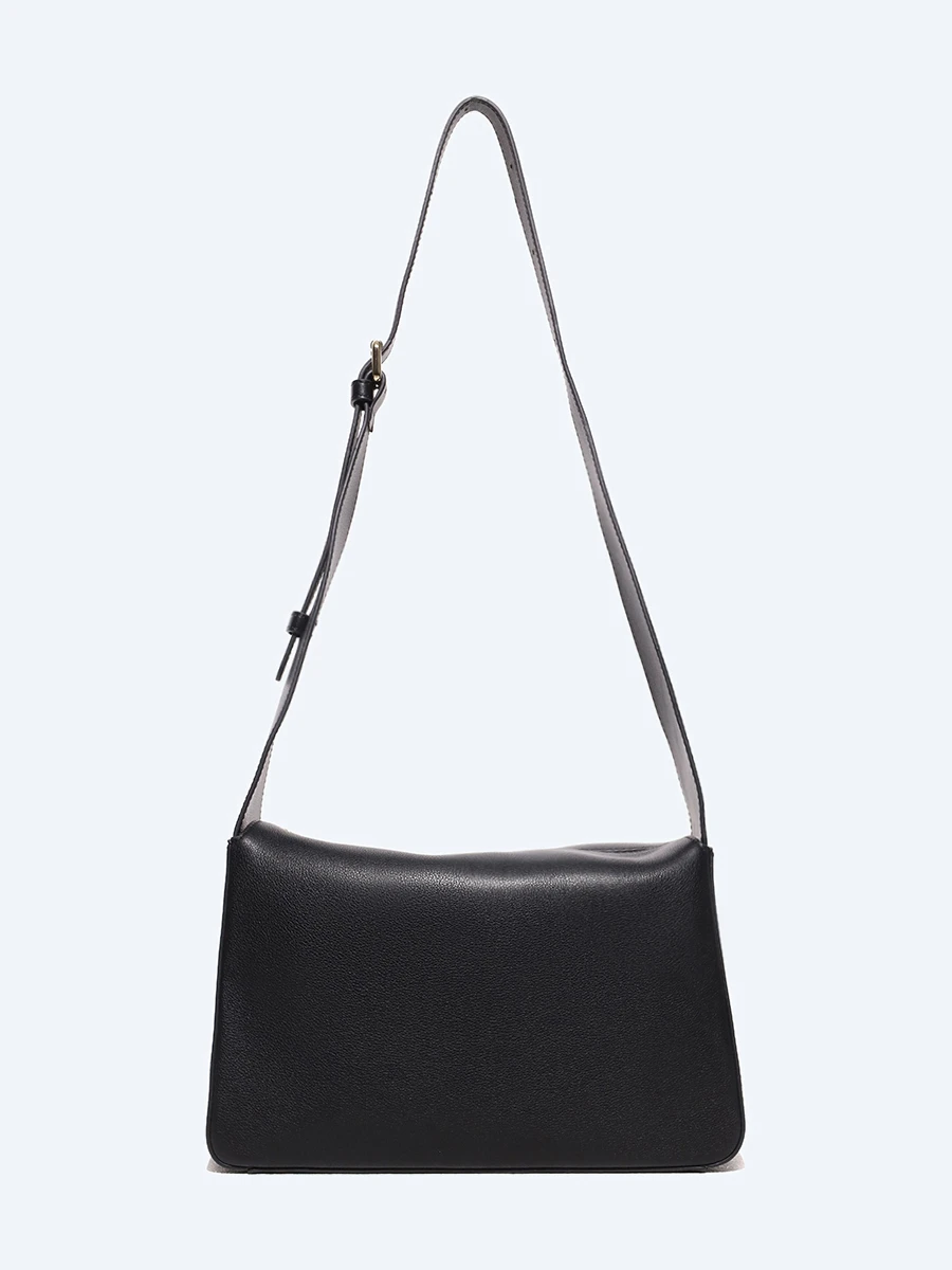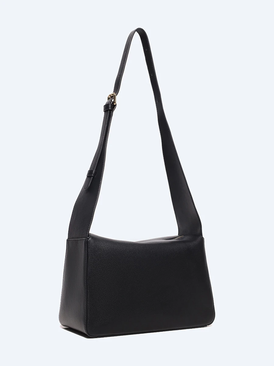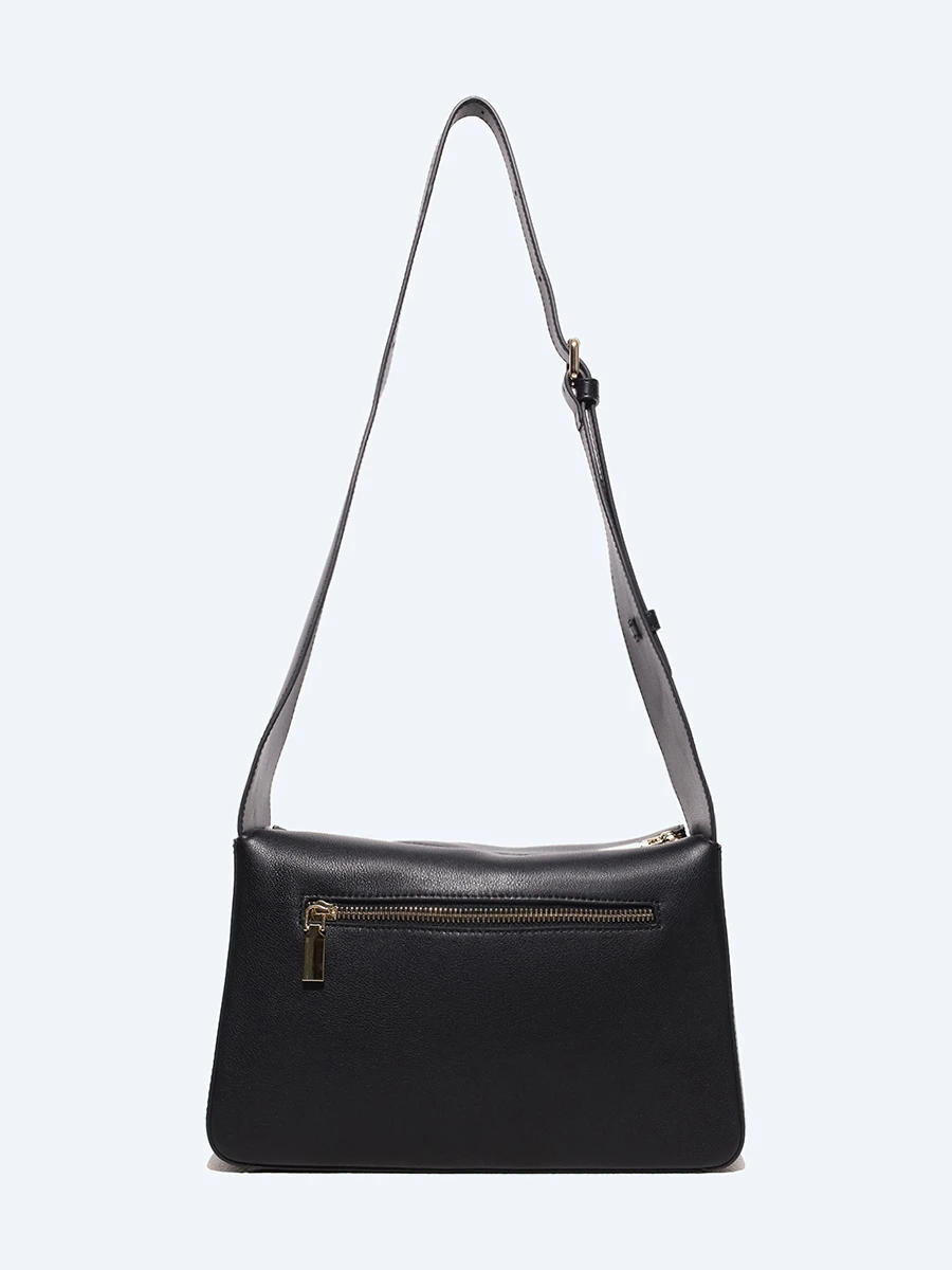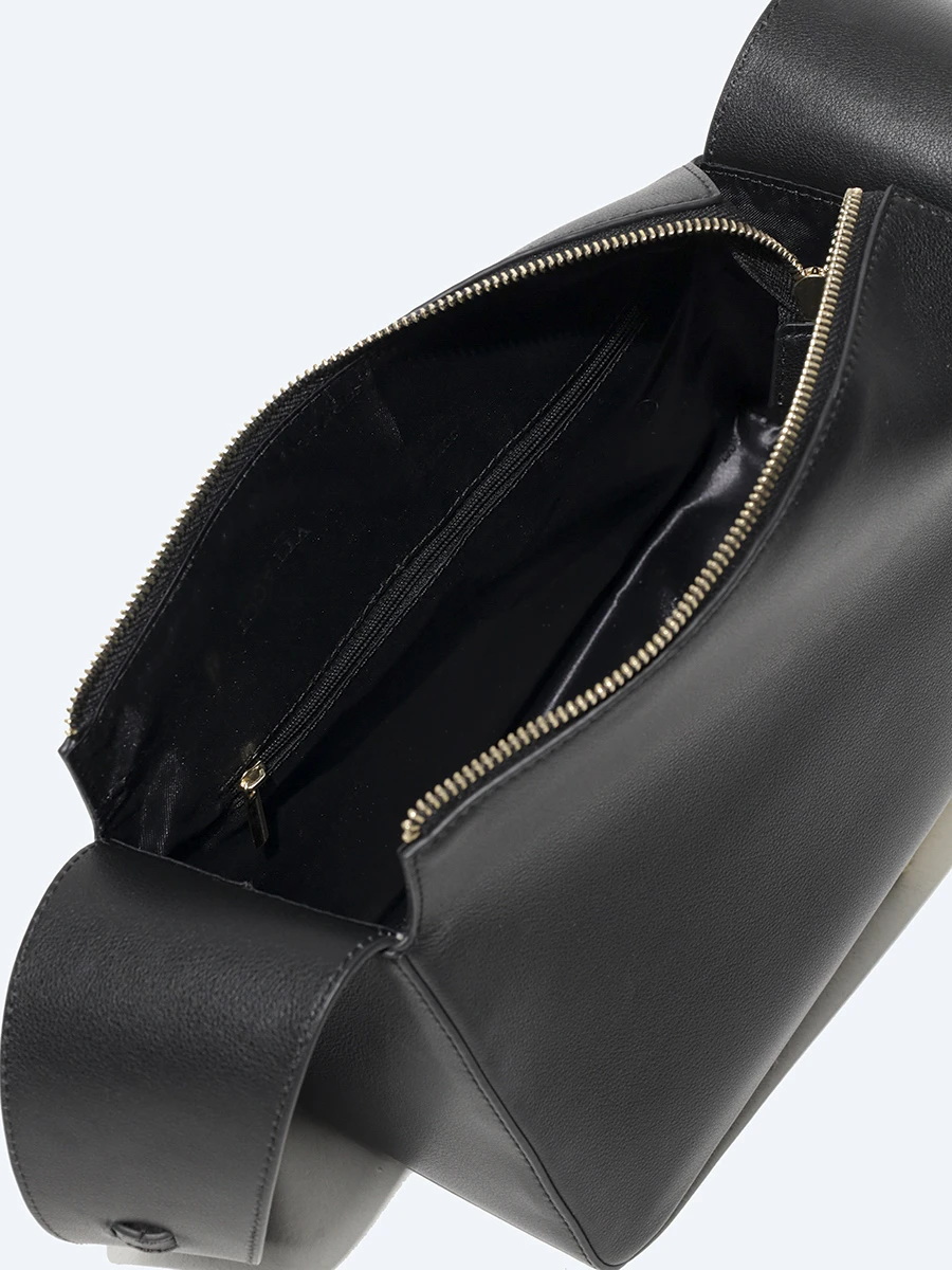 Сумка закрывается на молнию, имеет одно отделение, один внешний карман на молнии сзади, один внутренний карман на молнии, один открытый внутренний карман.
