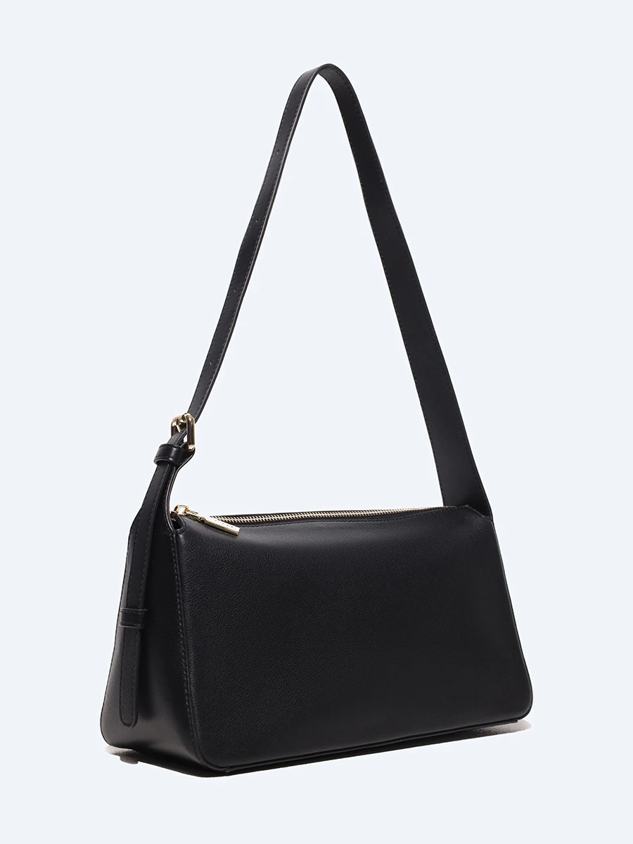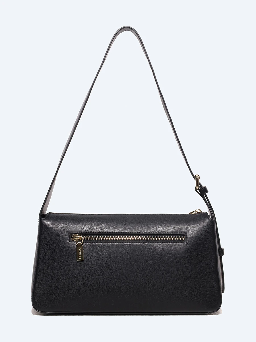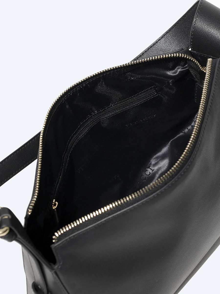 Сумка закрывается на молнию, имеет одно отделение, один внешний карман на молнии сзади, один внутренний карман на молнии, один открытый внутренний карман..