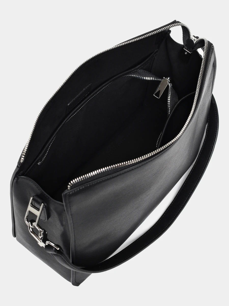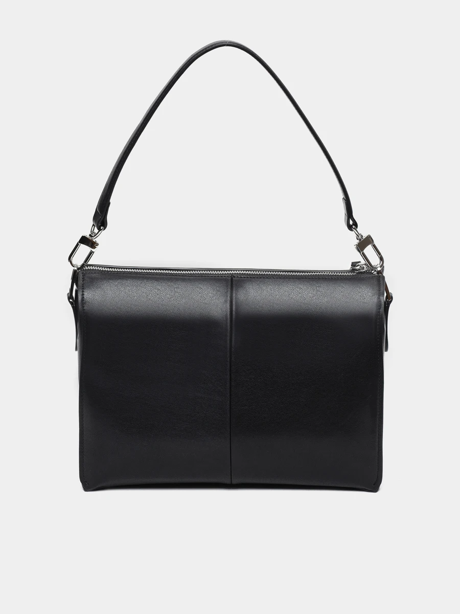 Сумка-багет выполнена из мягкой натуральной кожи. Основные характеристики: застежка-молния, несколько вместительных отделений, два съемных плечевых ремешка (короткий и длинный).