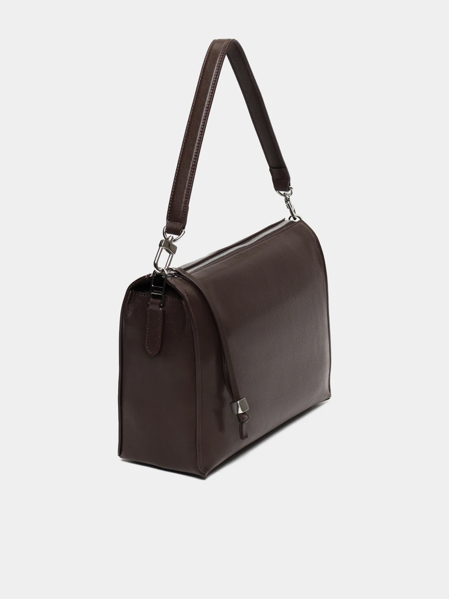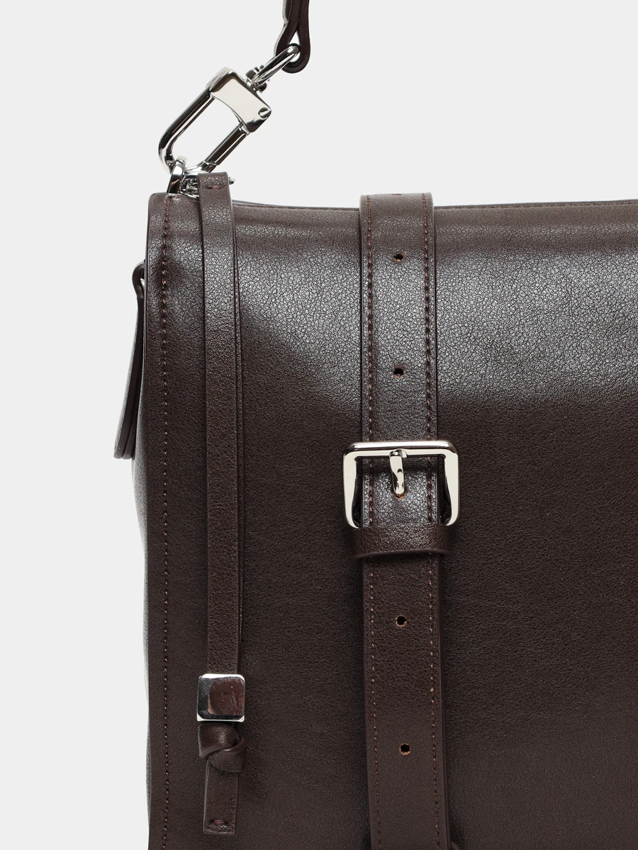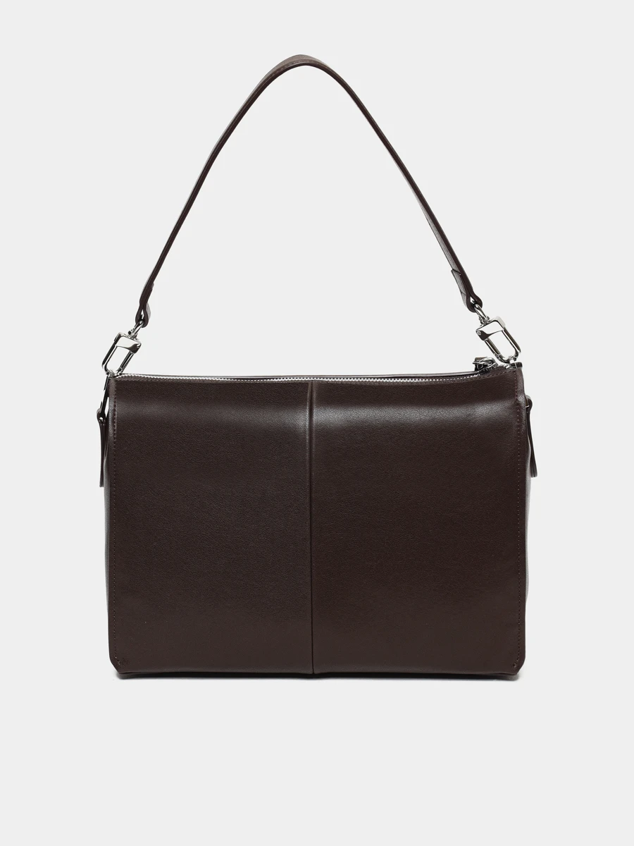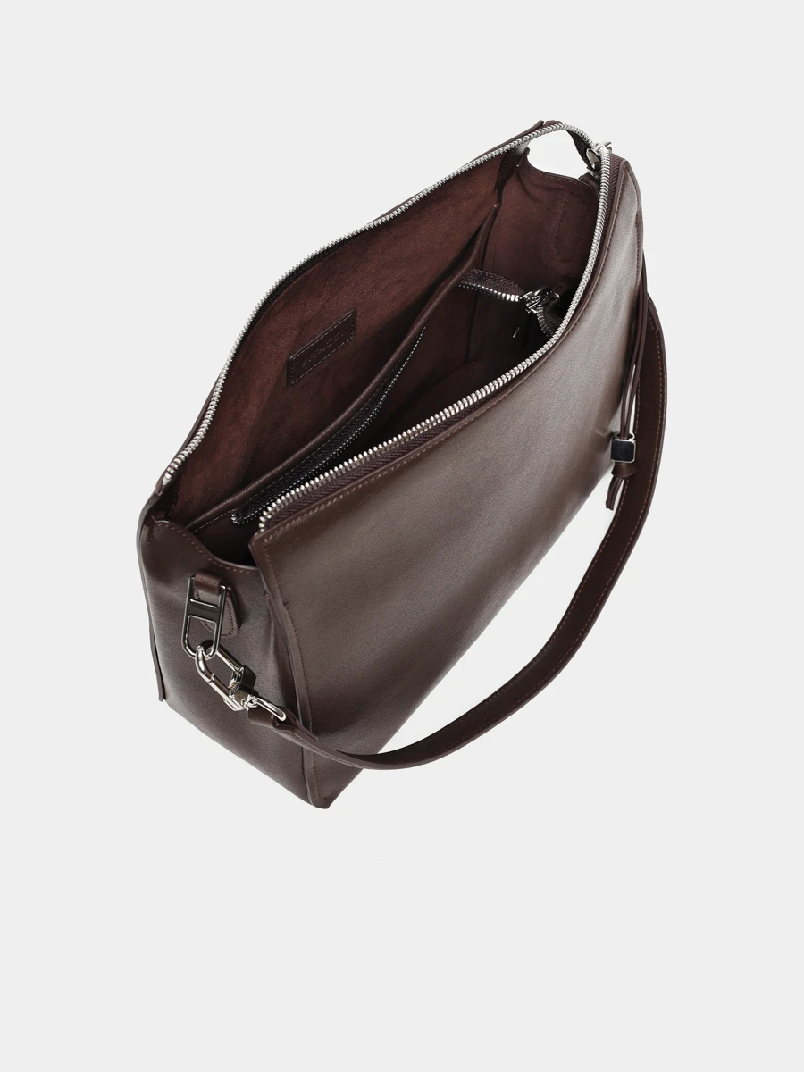 Сумка-багет выполнена из мягкой натуральной кожи. Основные характеристики: застежка-молния, несколько вместительных отделений, два съемных плечевых ремешка (короткий и длинный).