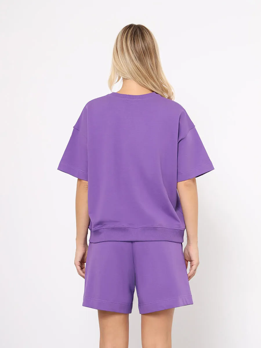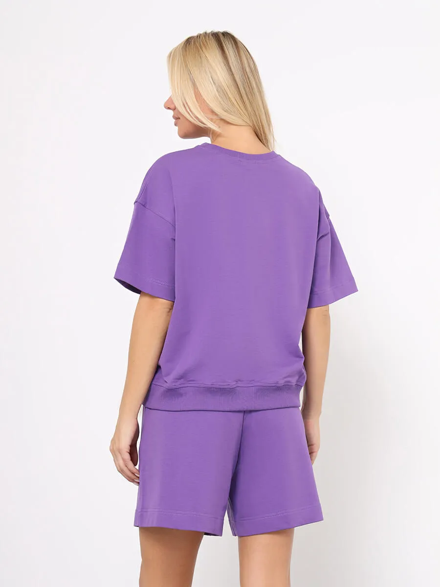Спортивный костюм от бренда VITACCI состоит из футболки и шорт, выполненных из хлопка с небольшим включением эластана. Материал - футер 2-х нитка. Футболка и шорты свободного кроя.