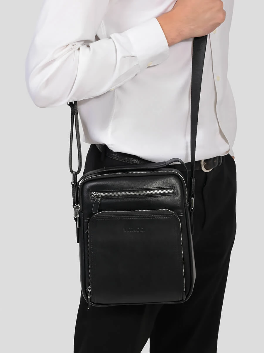 Сумка SU0115-01P мужская цвет черный, натуральная кожа