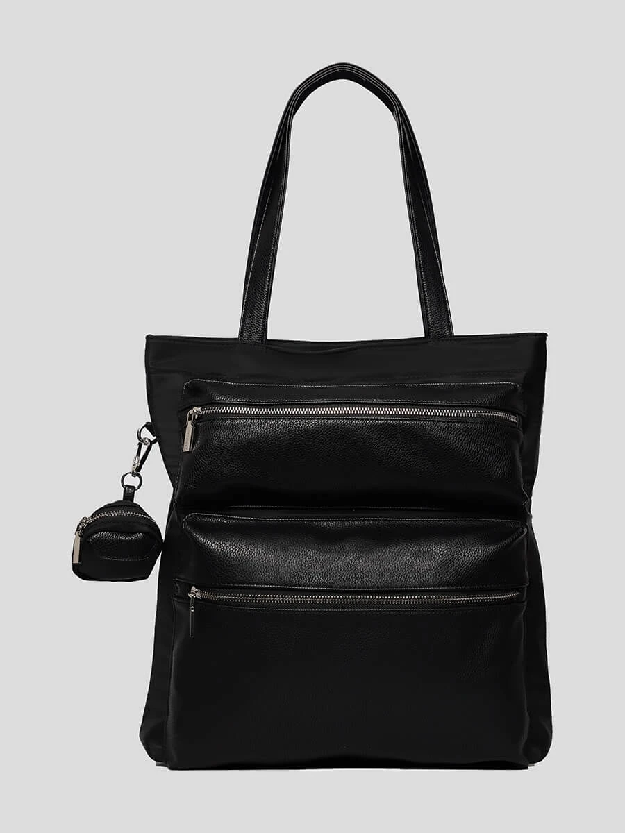 Сумка женская закрывается на молнию. На лицевой стороне и задней стенке имеются карманы, закрывающиеся на молнию. Внутри одно просторное отделение с карманом на молнии и двумя отсеками для мелочей. Прилагается маленький кошелек на карабине.