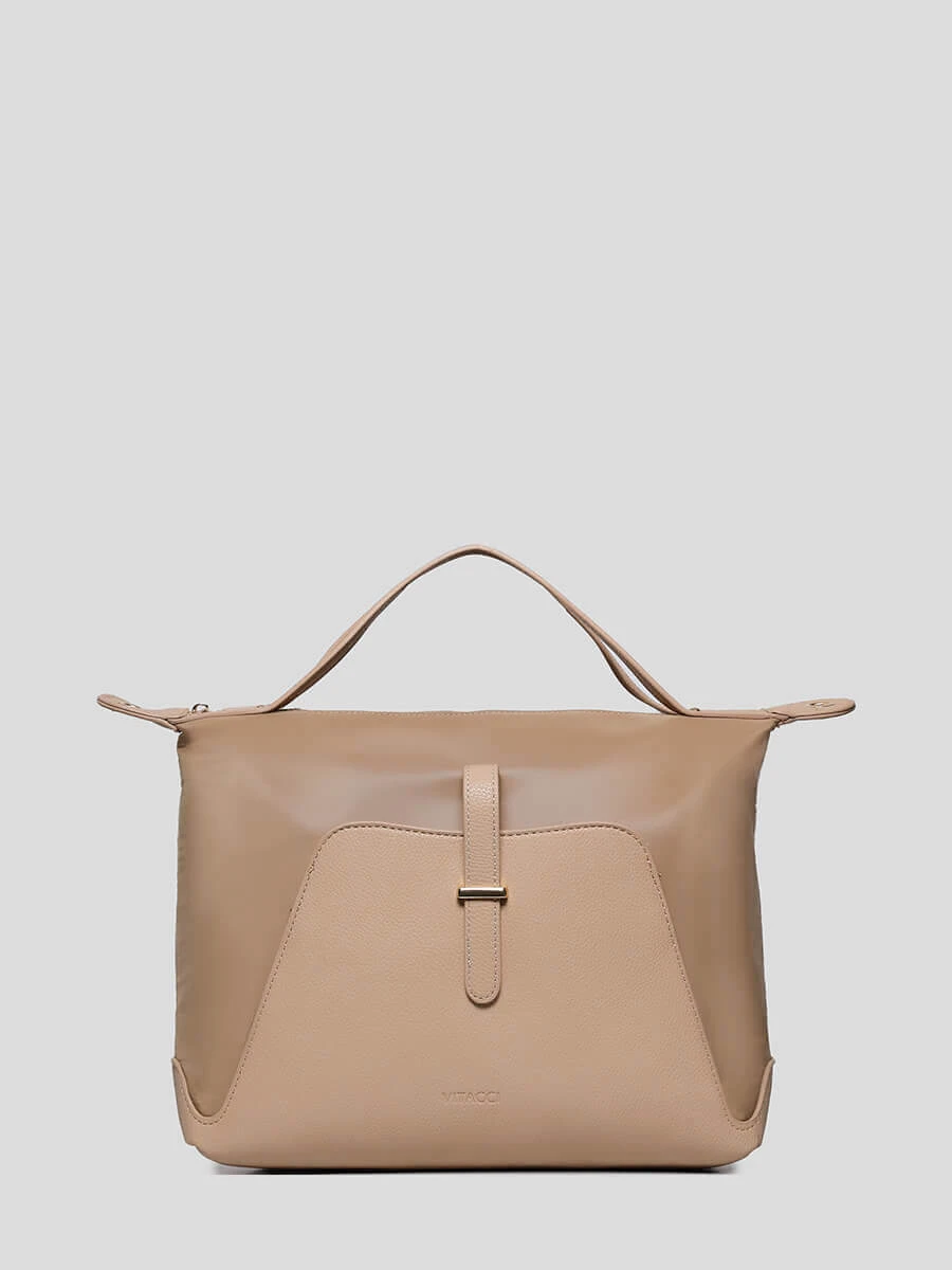 Сумка женская закрывается на молнию. На лицевой и задней стенке имеются карманы, закрывающиеся на магнитную кнопку. Внутри одно просторное отделение с карманом на молнии. Прилагается плечевой ремешок с максимальной длиной 140 см.