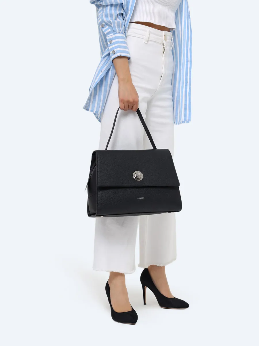 Женская сумка из натуральной кожи. Имеет плечевой ремешок, который крепится карабинами.