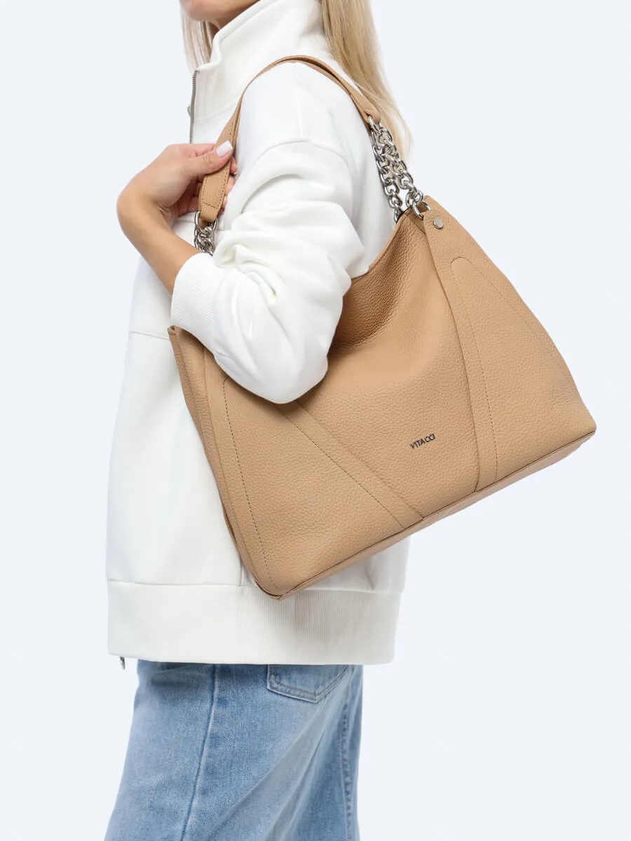 Женская сумка из натуральной кожи. Имеет два отделения, застегивающихся на молнию.