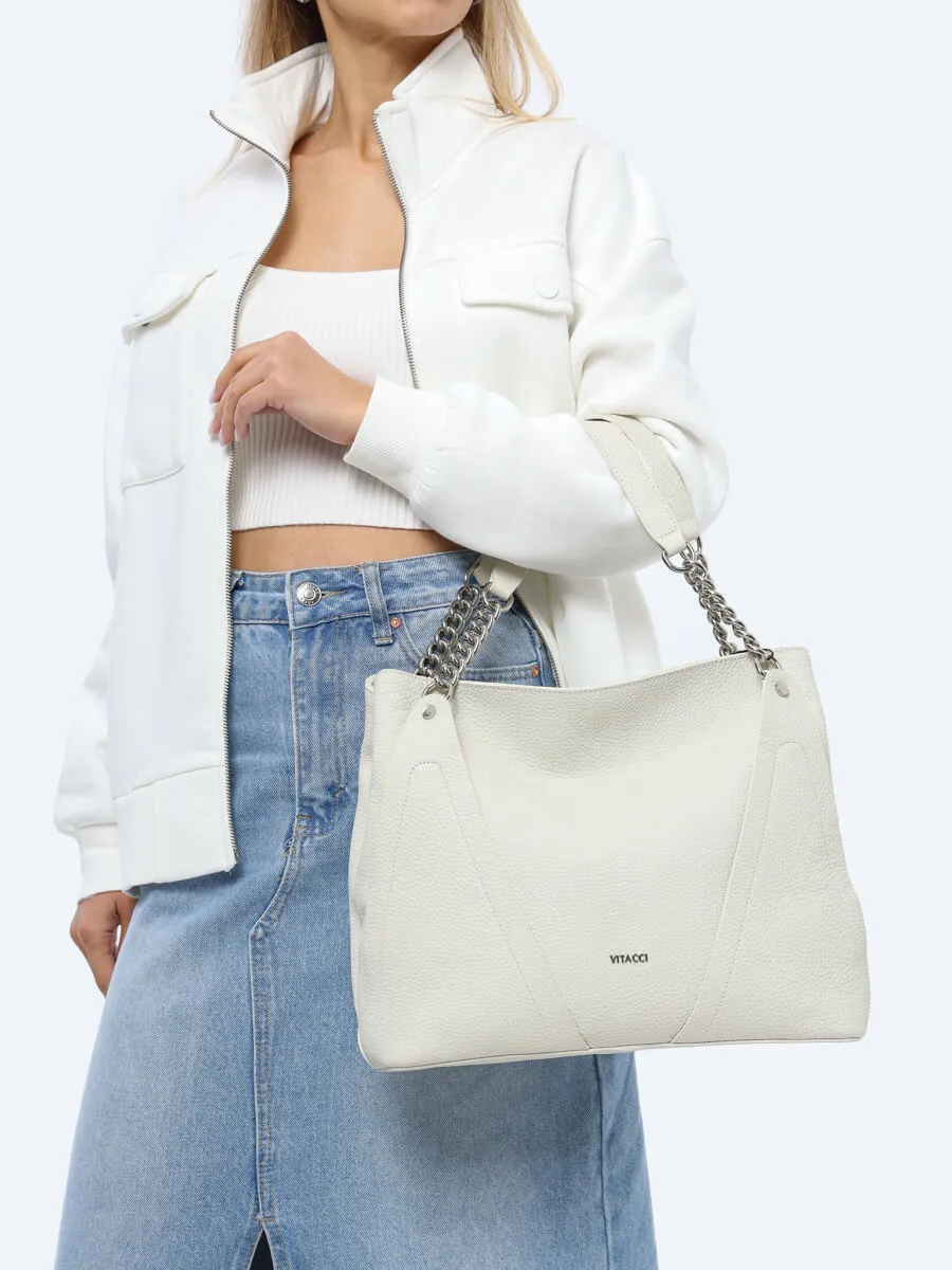 Женская сумка из натуральной кожи. Имеет два отделения, застегивающихся на молнию.