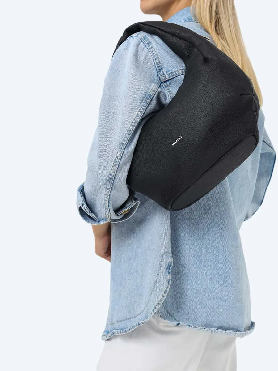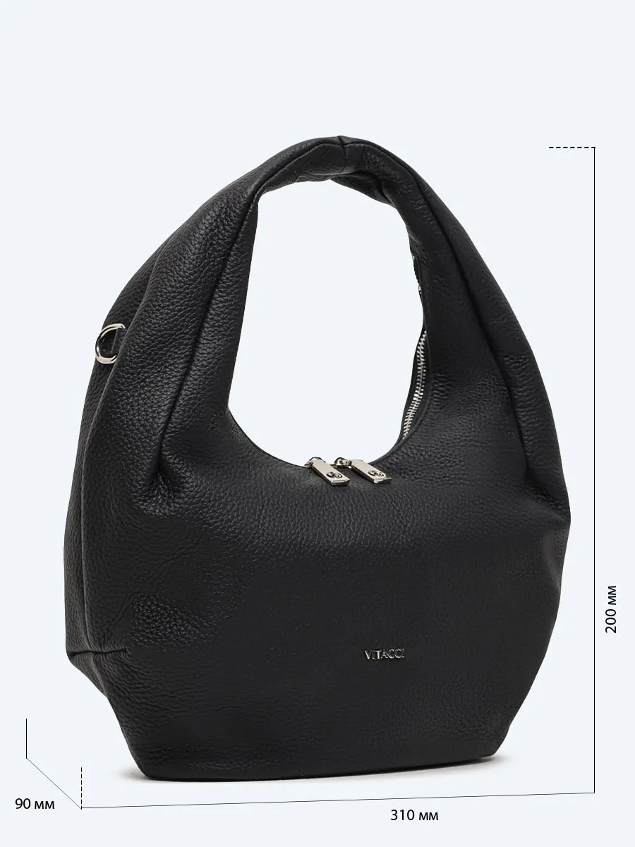 Женская сумка из натуральной кожи. Имеет одно отделение, оснащенное карманом на молнии и открытым кармашком для мелочей.
