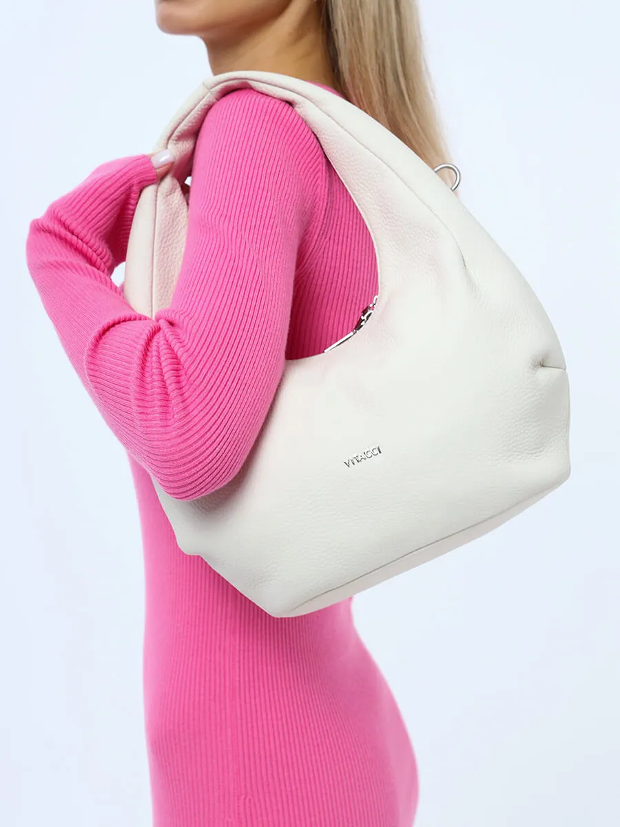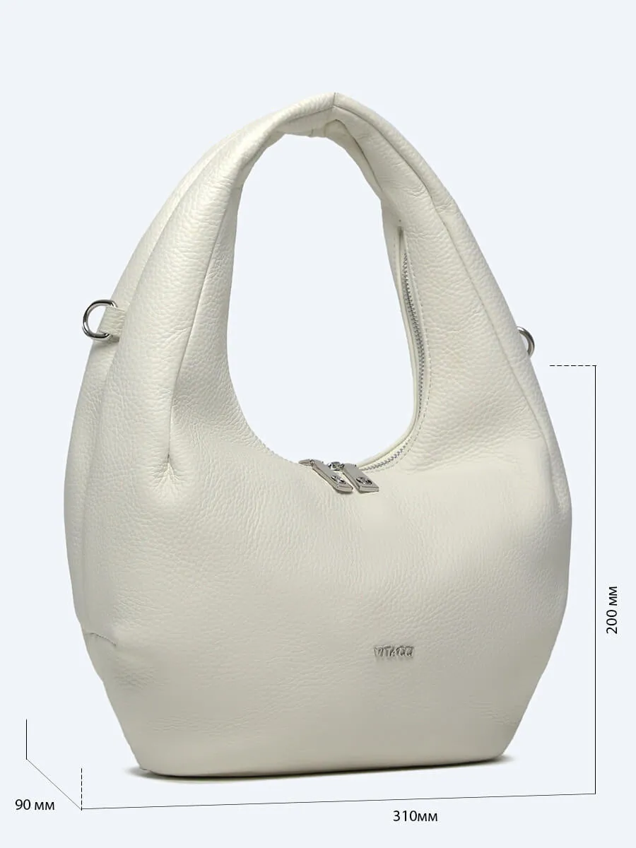 Женская сумка из натуральной кожи. Имеет одно отделение, оснащенное карманом на молнии и открытым кармашком для мелочей.