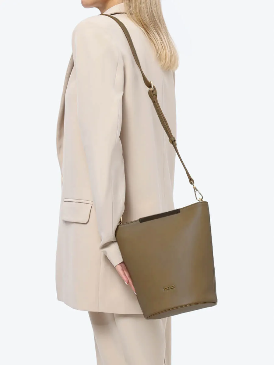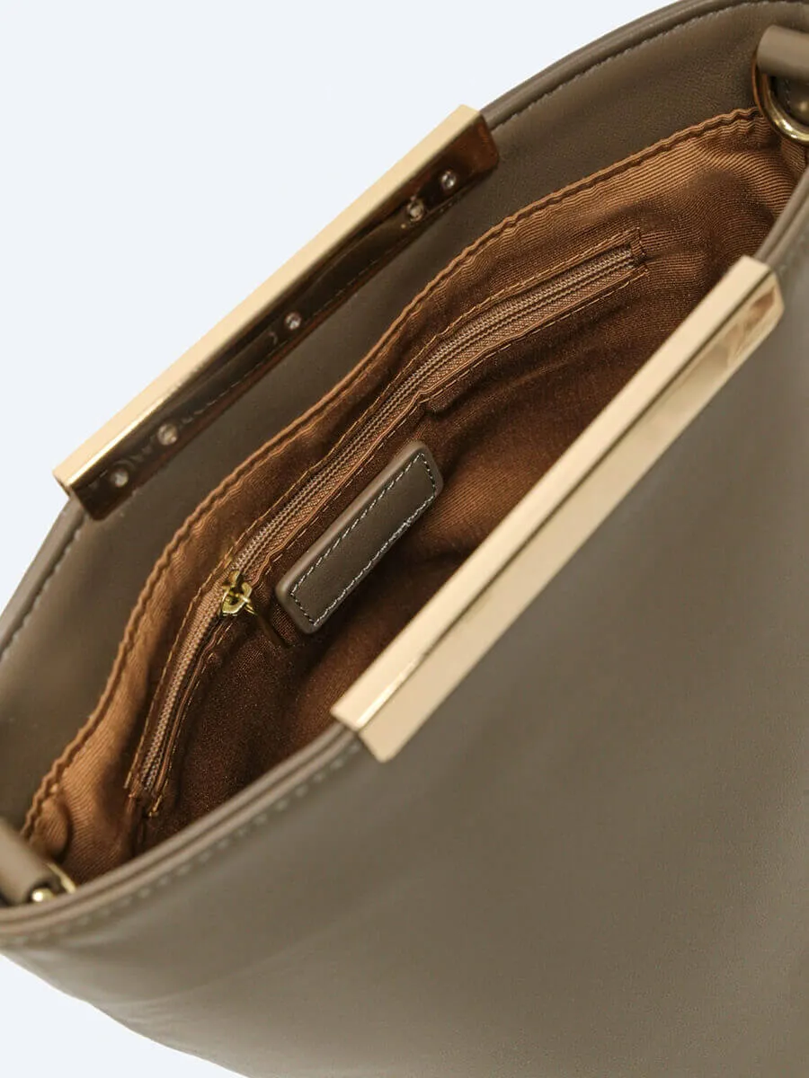 Женская сумка из натуральной кожи со съемным ремнем. Внутри одно вместительное отделение, с карманом на молнии и открытым кармашком для мелочей.
