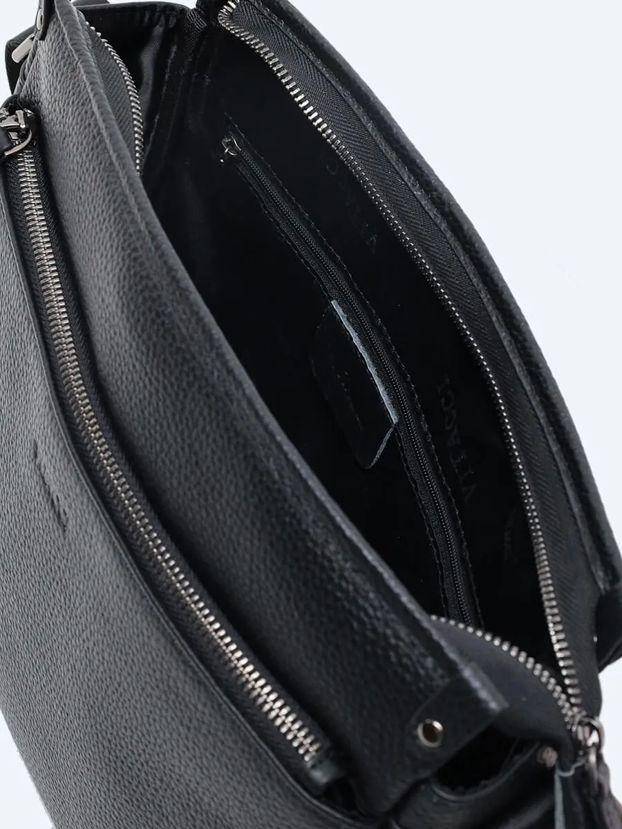 Мужская сумка выполнена из натуральной кожи. Прилагается плечевой ремень.