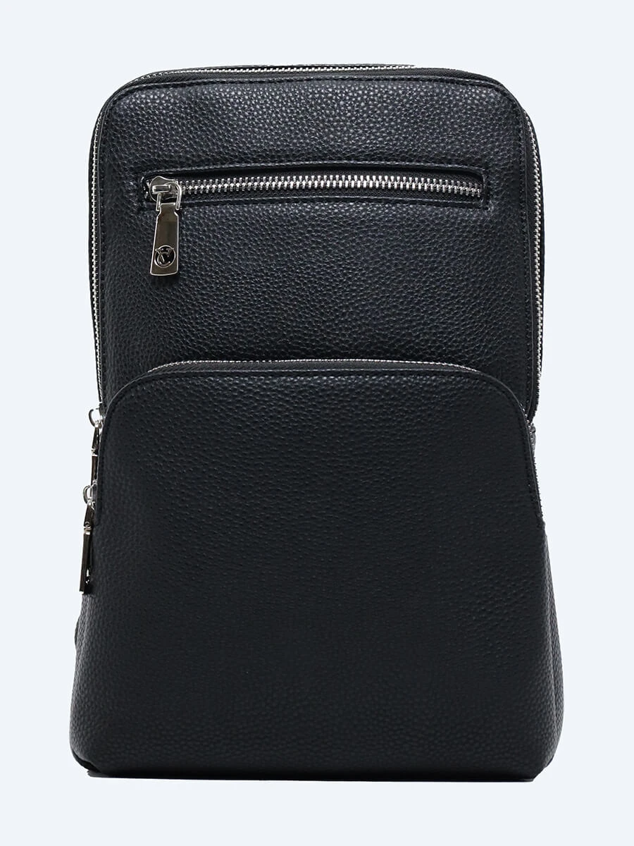 Мужской рюкзак выполнен из искусственной кожи с зернистой фактурой. Оснащен множеством вместительных отделений.
