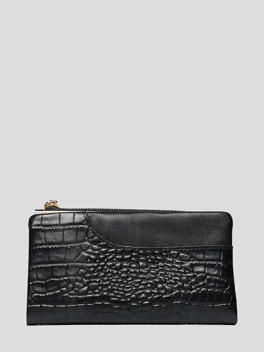 Кошелек женский с двумя отделами, один отдел для купюр, который закрывается на молнию, второй закрывается на кнопку, внутри которого 5 отделений под купюры и 10 отделений под кредитные карты. С внешней стороны кошелька имеется отделение для мелочи на молнии.
