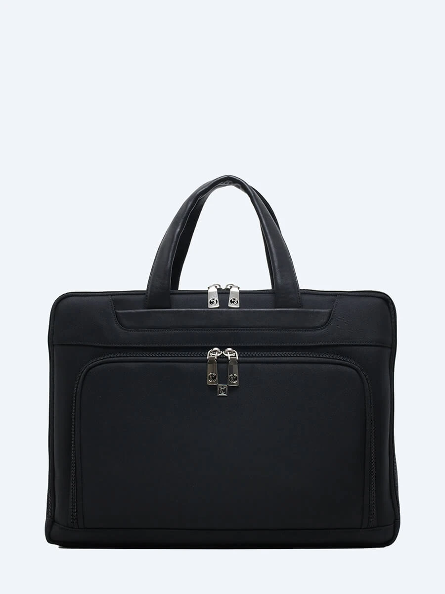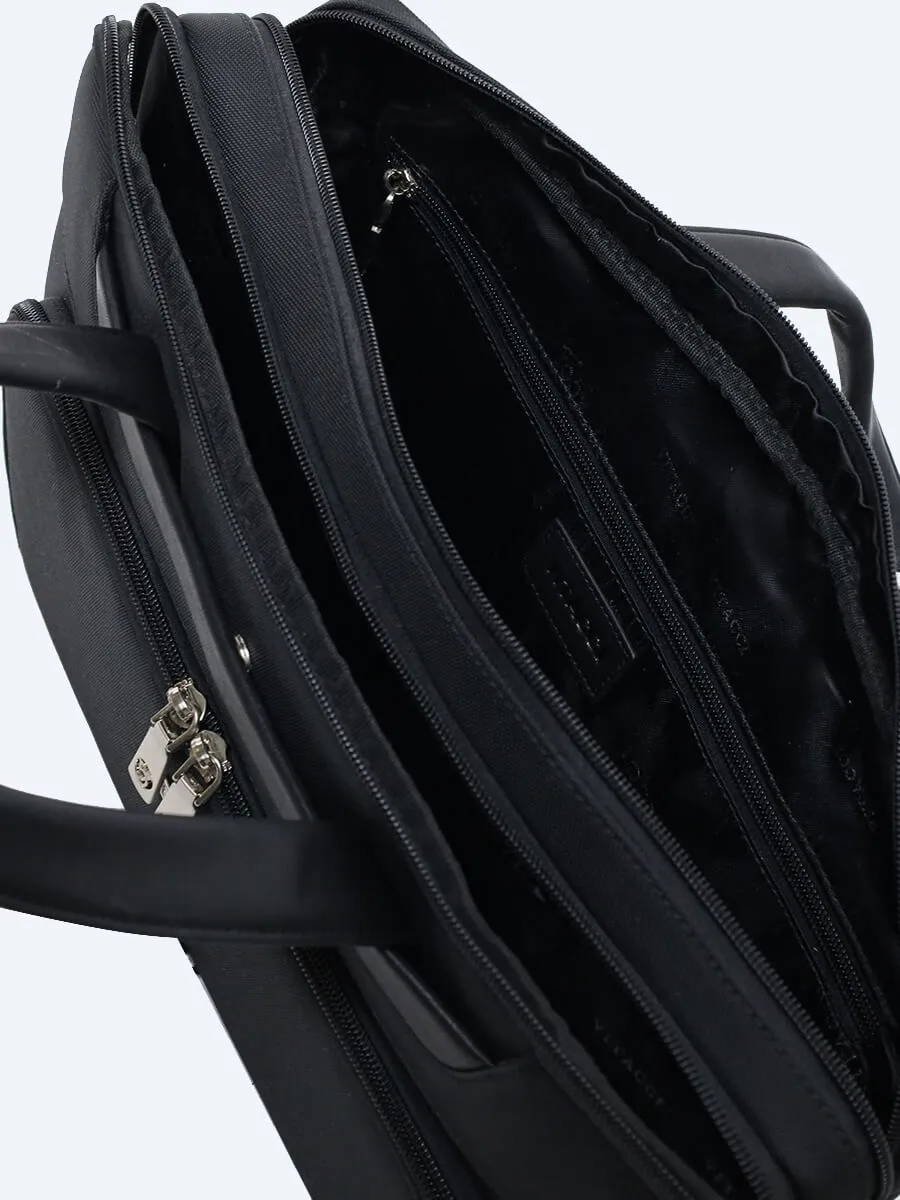 Портфель выполнен из текстиля в сочетании с натуральной кожей. Имеет множество функциональных карманов.
