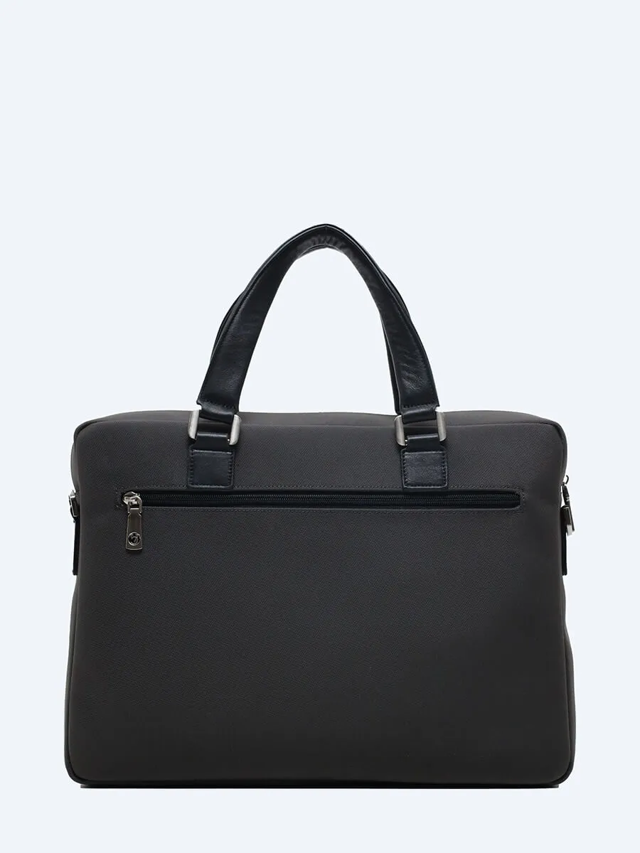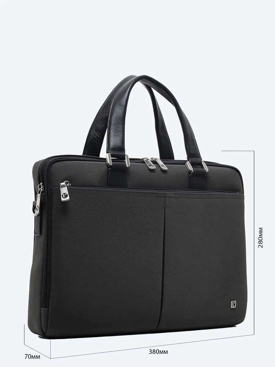 Портфель выполнен из текстиля в сочетании с натуральной кожей. Имеет множество функциональных карманов.