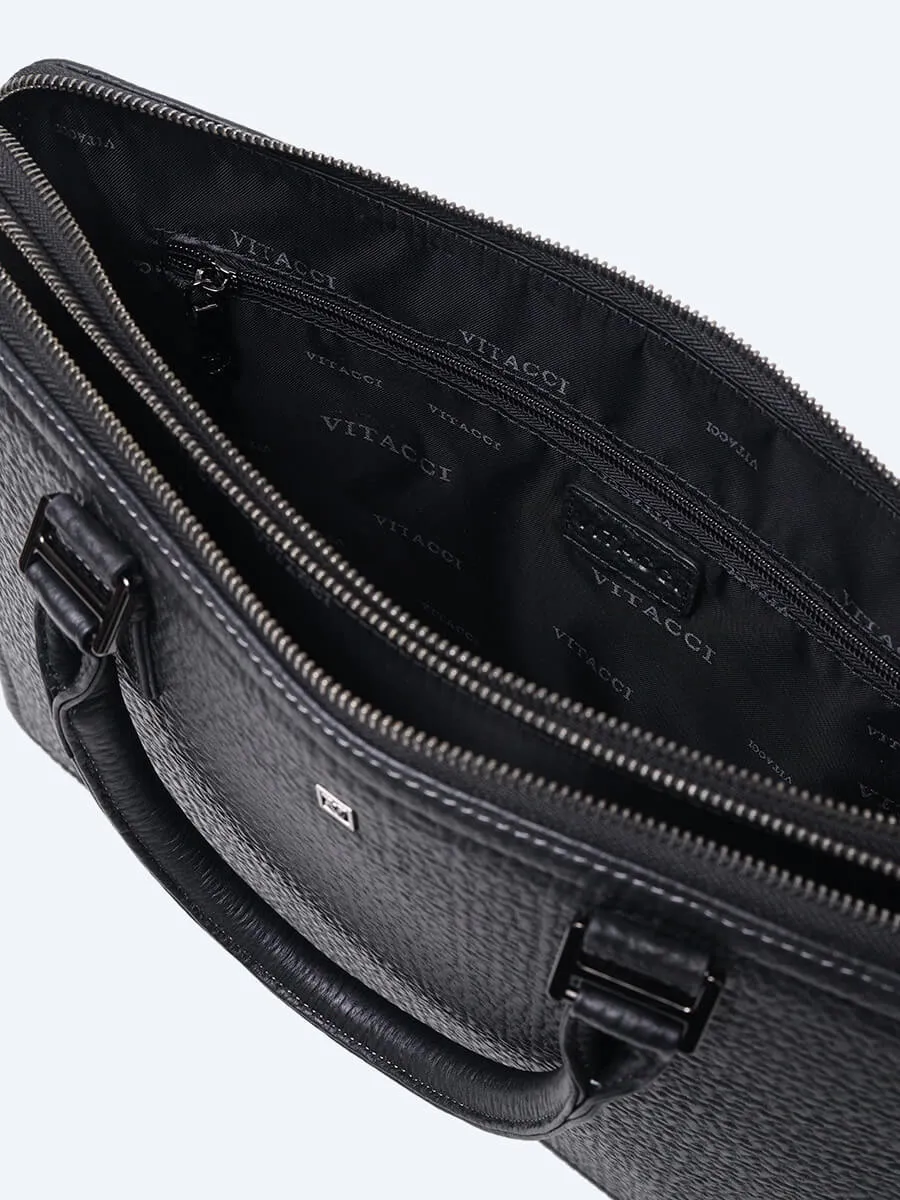 Сумка выполнена из натуральной кожи. Закрывается на молнию, имеет три отделения и регулируемый по длине плечевой ремешок.