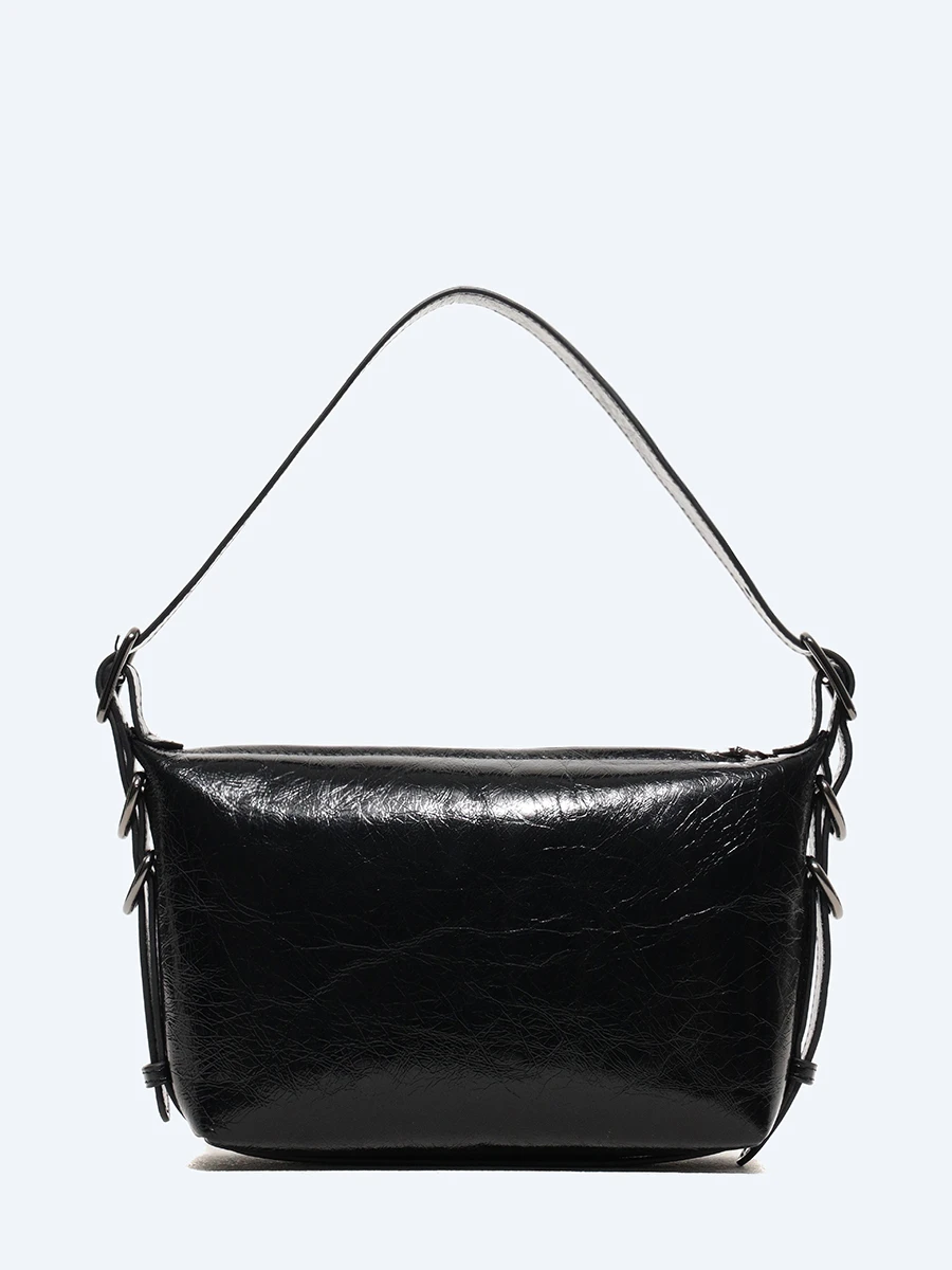 Сумка из натуральной кожи закрывается на молнию, имеет одно отделение, один внешний открытый карман сзади, один внутренний карман на молнии, один внутренний открытый карман. Длина ремня регулируется при помощи пряжки.
