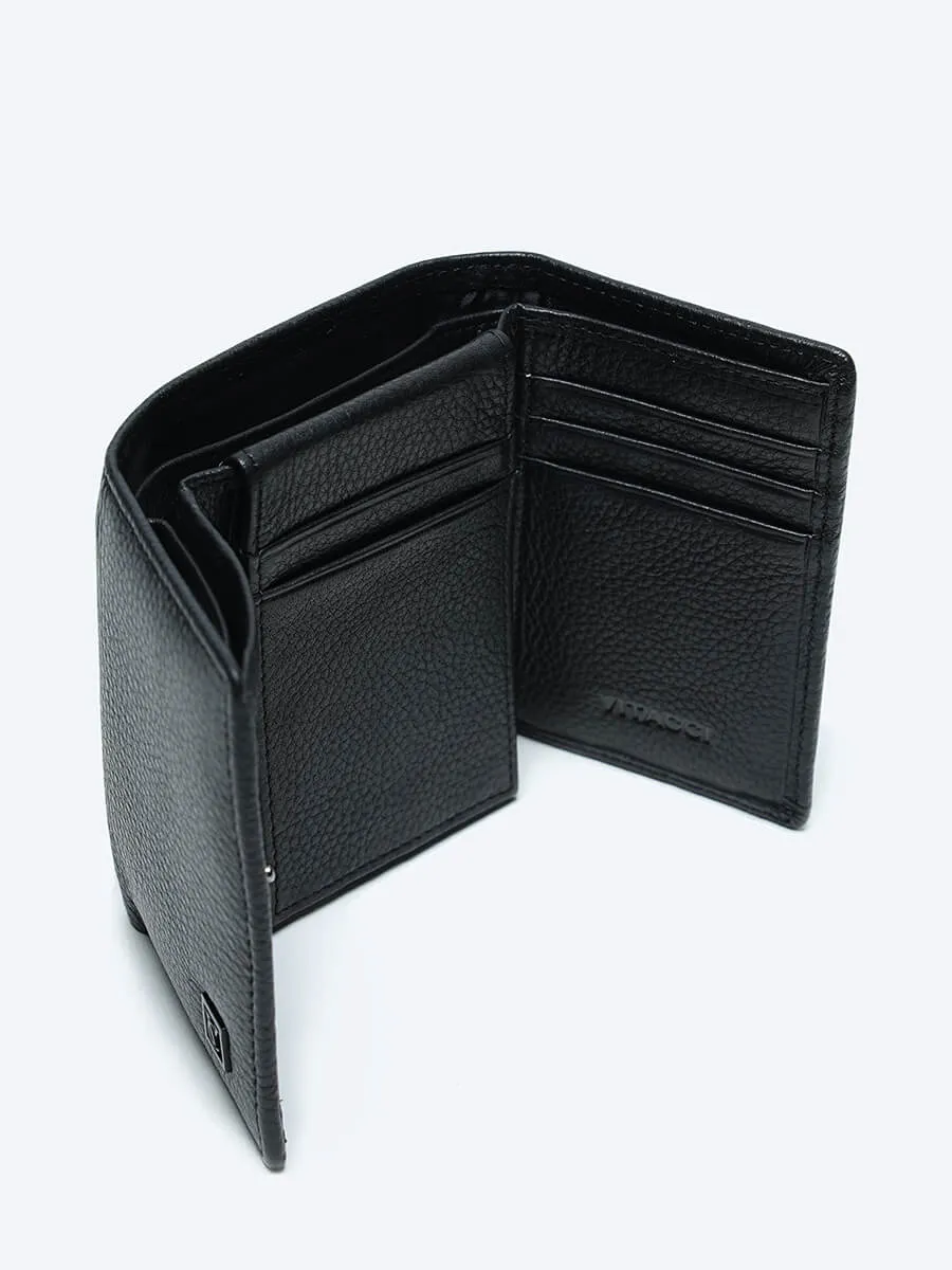 Мужской кошелек выполнен из натуральной кожи с зернистой фактурой. Оснащен множеством функциональных отделений.